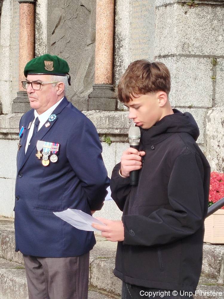 un message a été prononcé par un lycéen, un second par Monsieur Christophe EVENO, Président de l’UNC locale, le message officiel étant lu par Monsieur Christian DAUTEL, Maire de Pont-Aven.