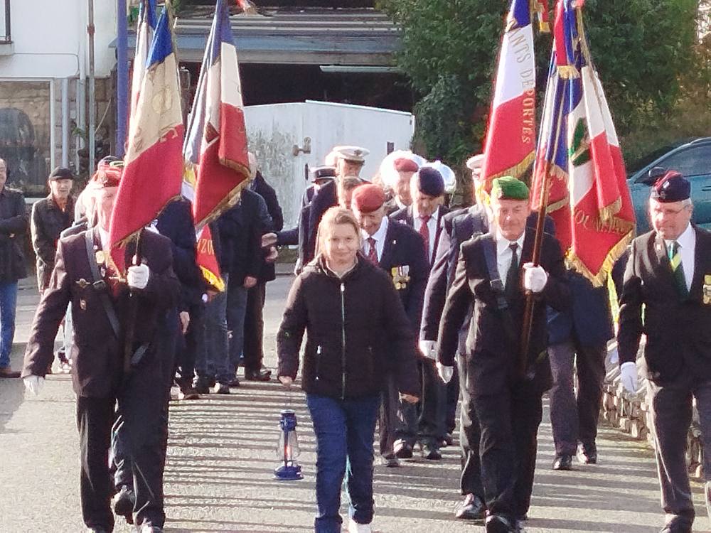 Entourée de deux Porte-Drapeaux une lycéenne portait la torche de la Flamme de la Mémoire qu’elle a ensuite déposée sur le Monument aux Morts de la commune.