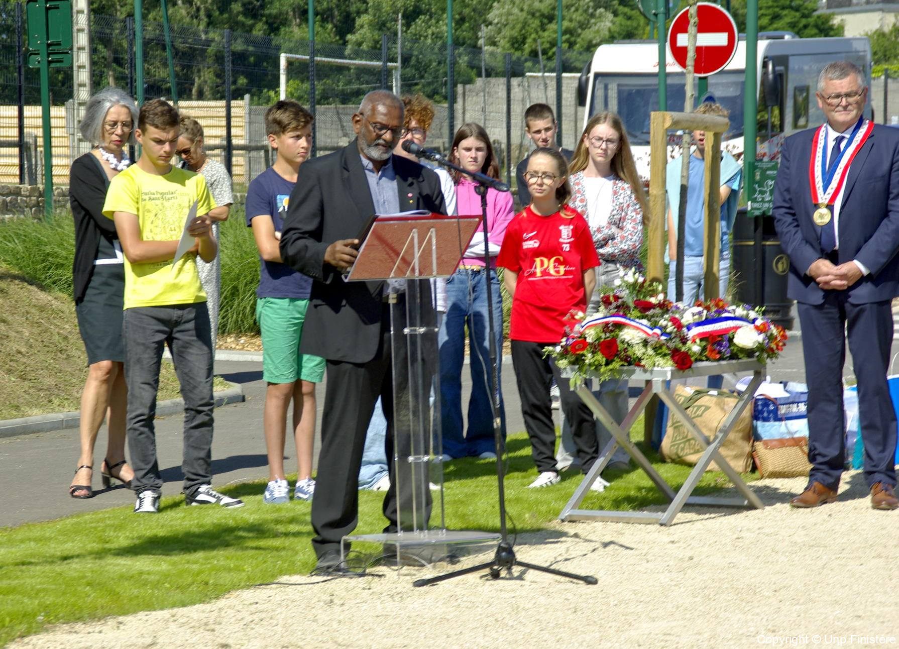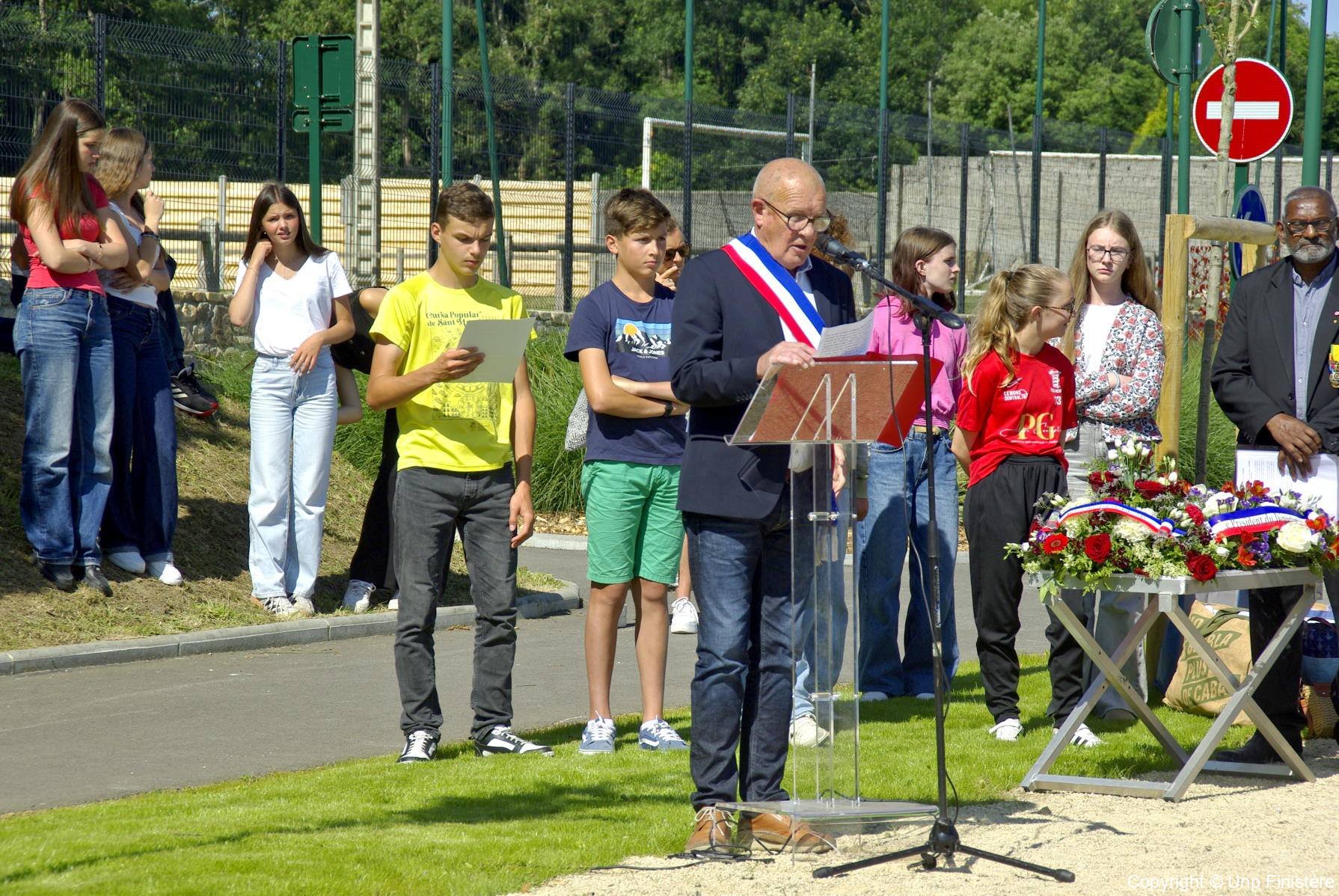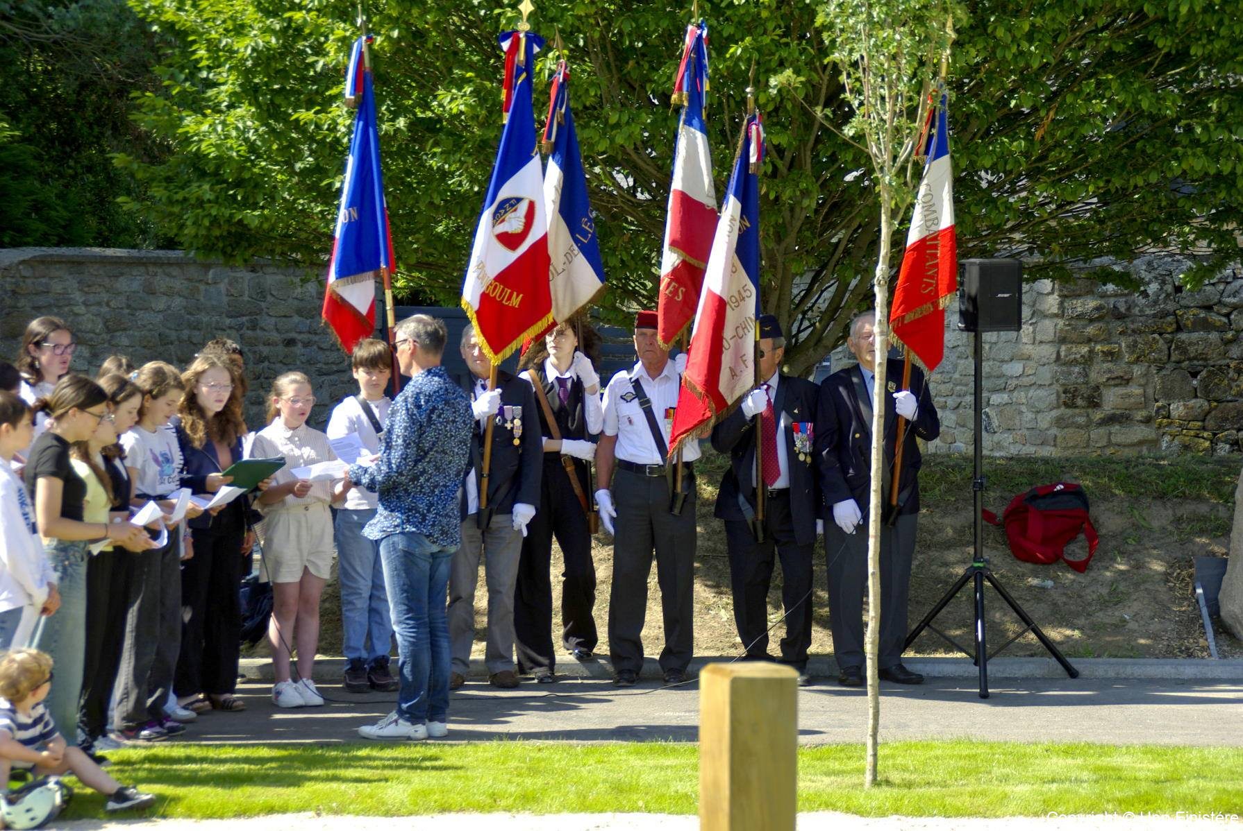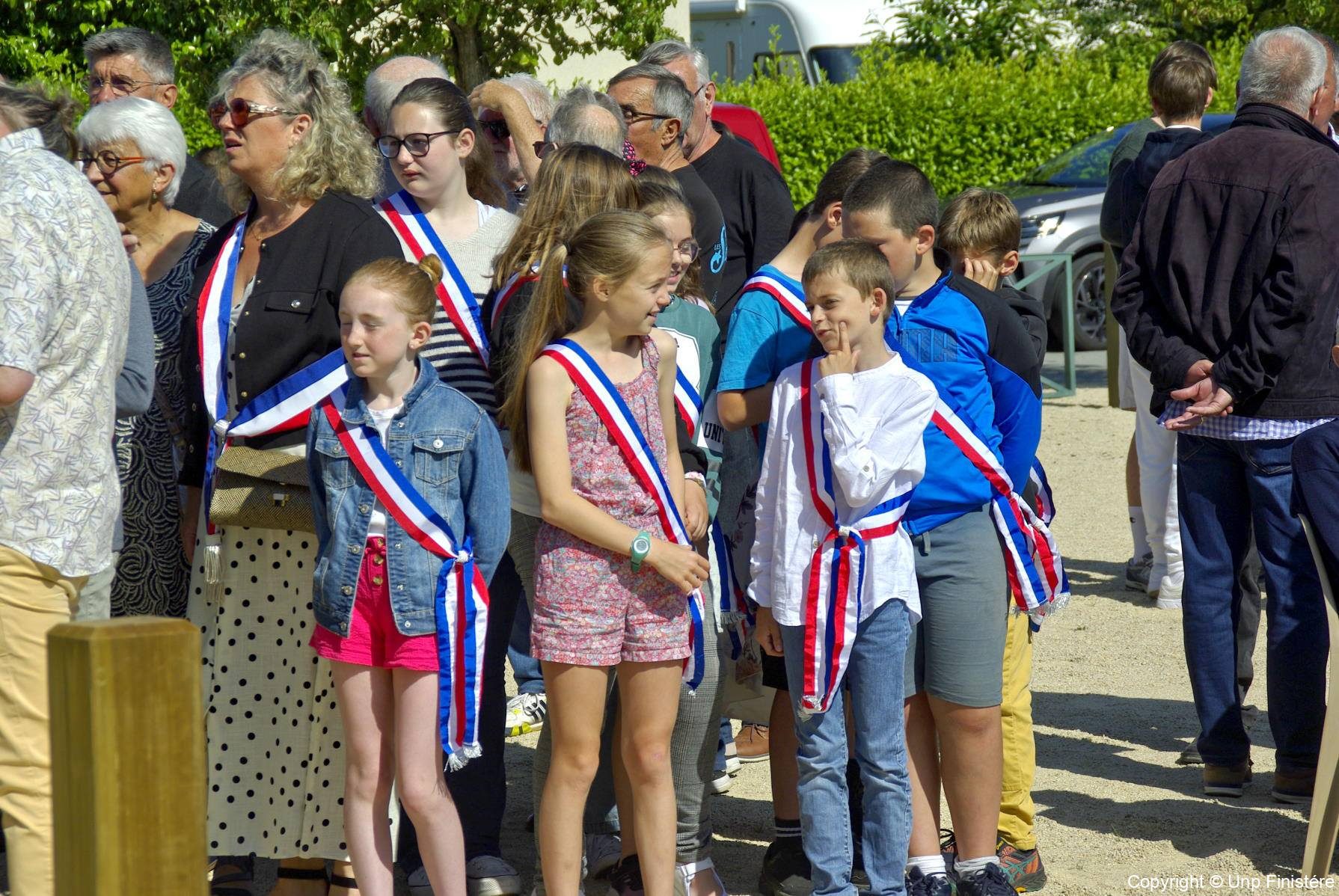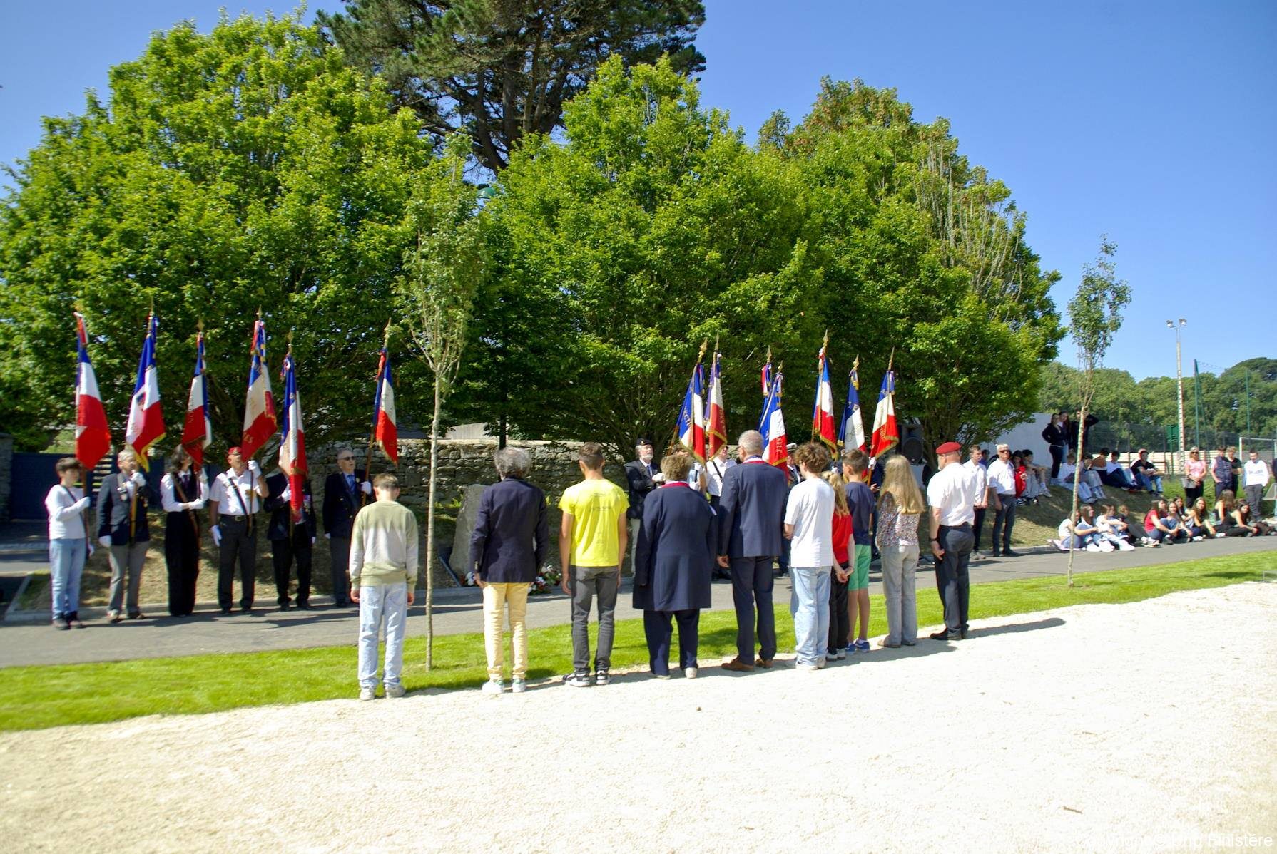 en présence de la famille d’Ambroise MORIZUR, des représentants civils et militaires, de collégiens, du Conseil municipal des jeunes et des associations patriotiques.