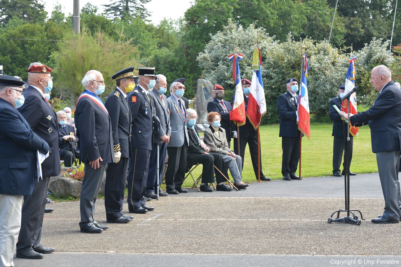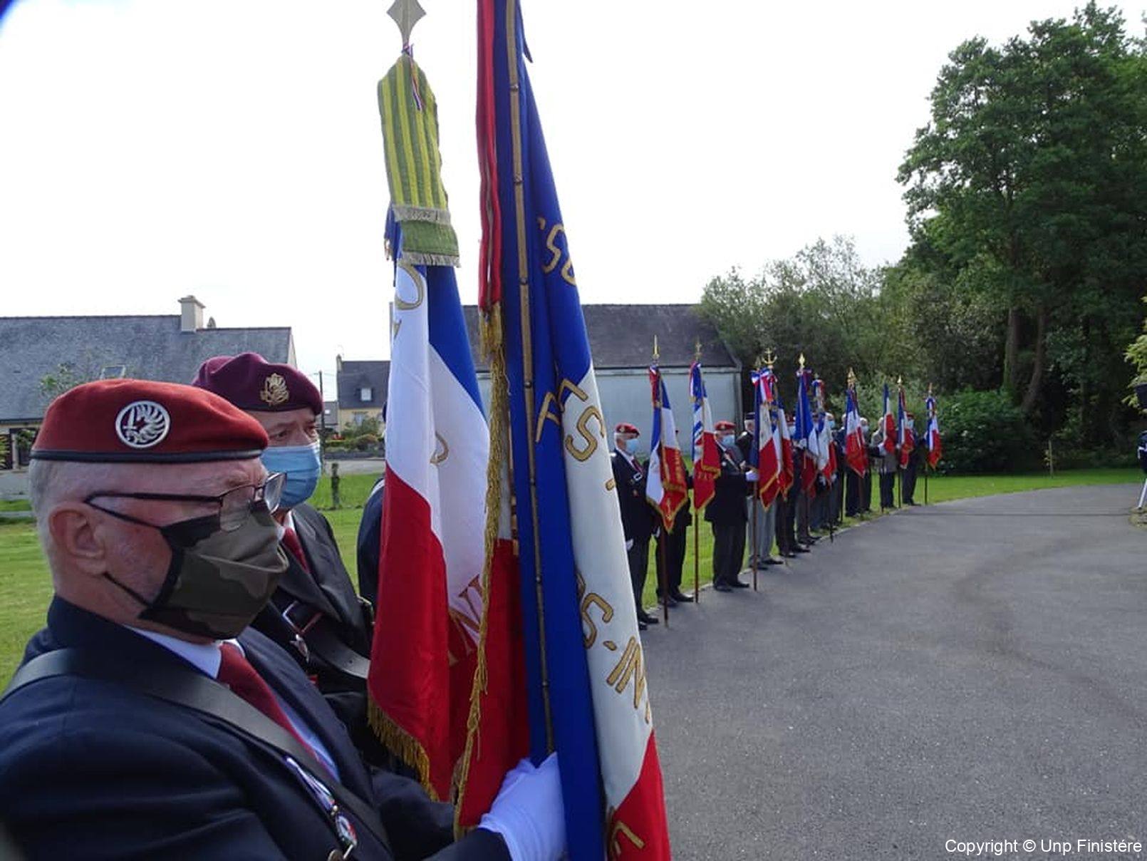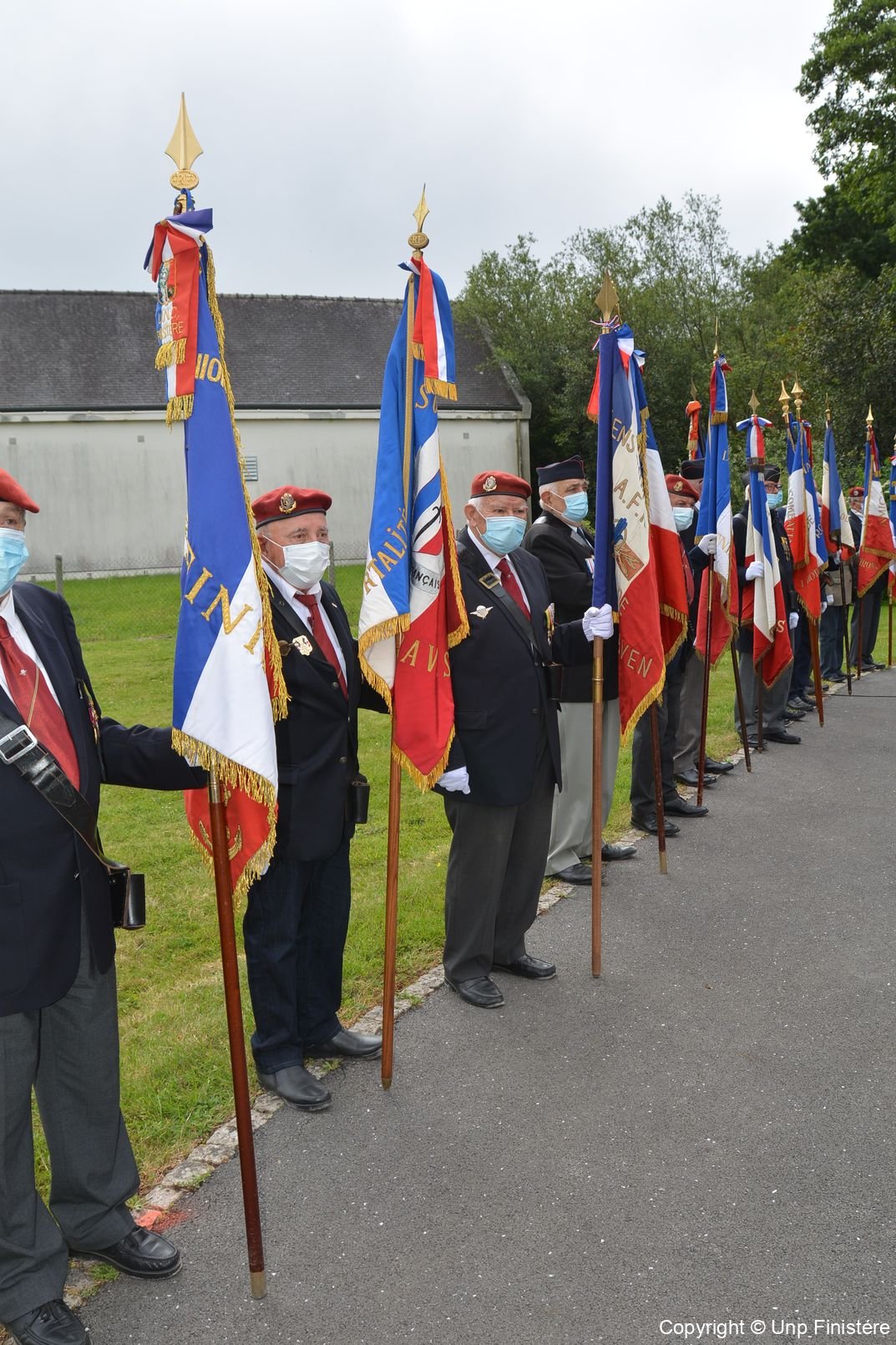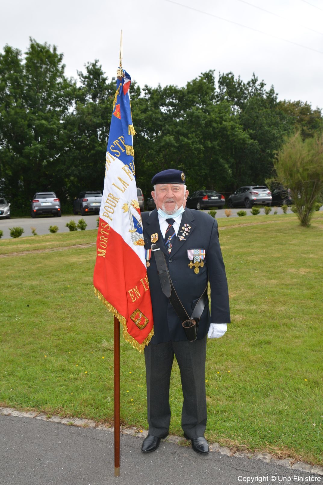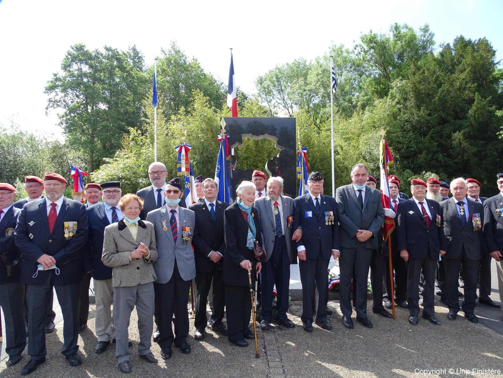 Crise sanitaire oblige, le site du mémorial n’avait pas connu une telle affluence depuis deux ans. La participation d’un piquet d’honneur avec fanion de la base navale de Brest et de près de vingt porte-drapeaux rehaussait avec force le cérémonial militaire. Après la lecture du message officiel lu par monsieur le sous-préfet, six gerbes furent déposées devant les stèles Indochine et Corée. Une belle Marseillaise chantée à capella était reprise par l’ensembles des participants. Cette cérémonie fut l’occasion pour une trentaine de membres de la section UNP du Finistère de se retrouver. Comme tous les ans, monsieur René Rouault nous présenta les unités ayant participées à cette guerre d’Indochine. Cette année les parachutistes étaient mis à l’honneur de fort belle manière. Parmi nous, monsieur Jean Kéromnés, ancien de l’aéronavale, dont l’avion fut abattu au dessus de Dien Bien Phu, lors du dernier jour de combat. Blessé il fut fait prisonnier et connut l’atrocité des camps. Ancien maire de la commune de L’Hôpital-Camfrout, c’est sous son impulsion que fut réalisé ce très beau mémorial en hommage aux finistériens ( 1254) tués en Indochine et (15) en Corée.