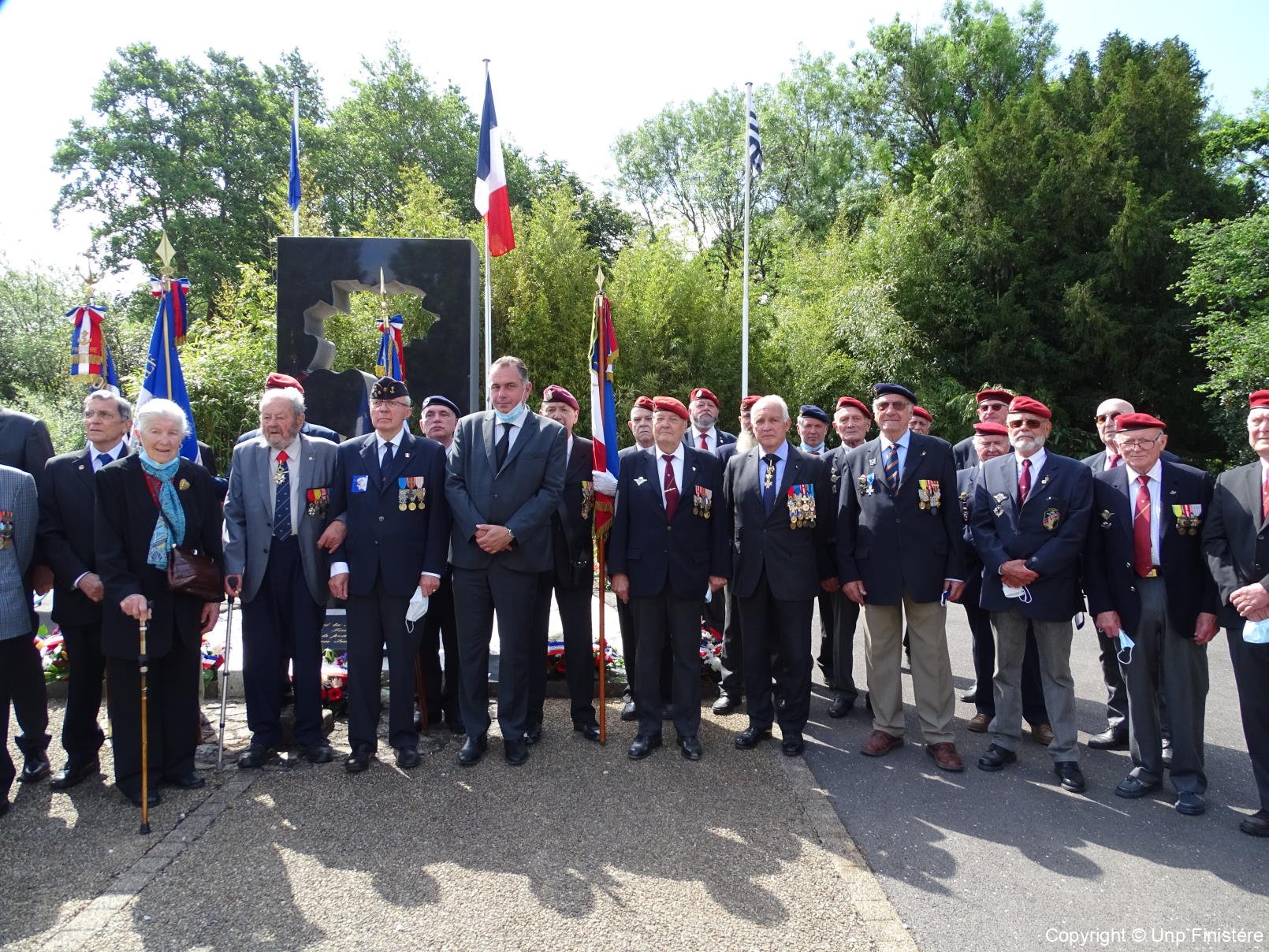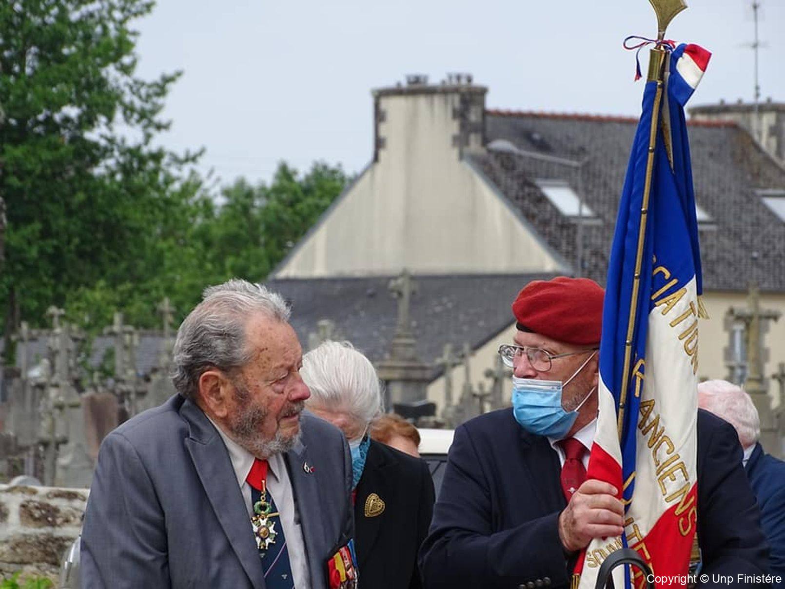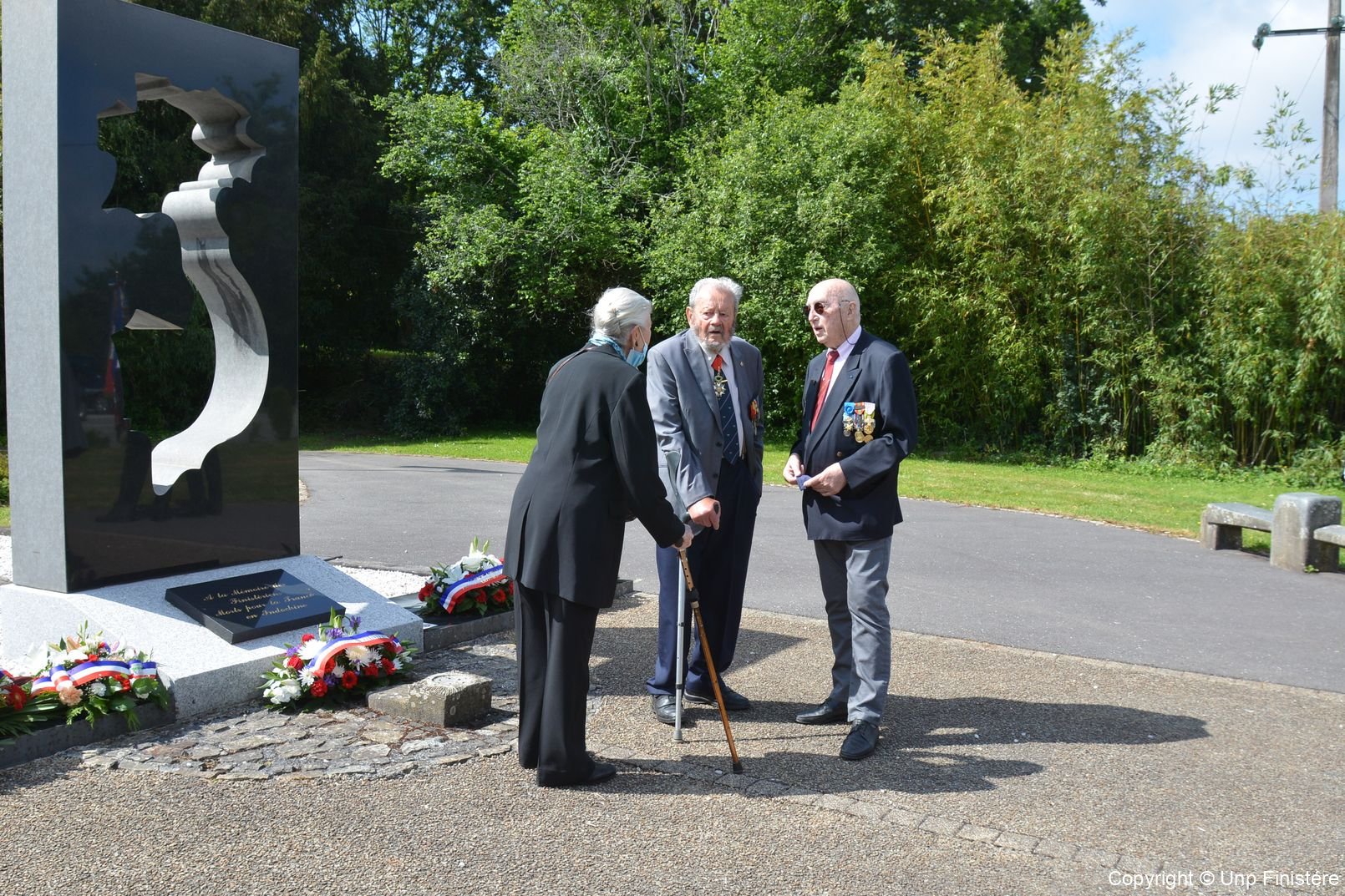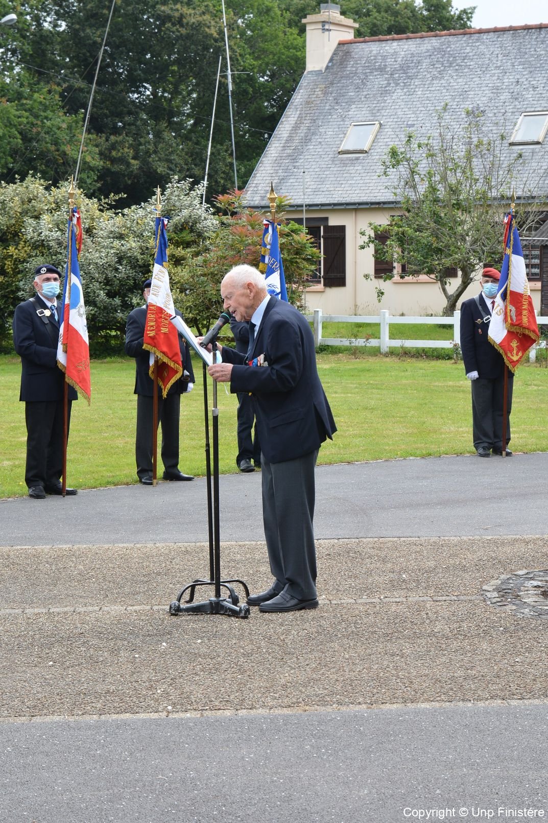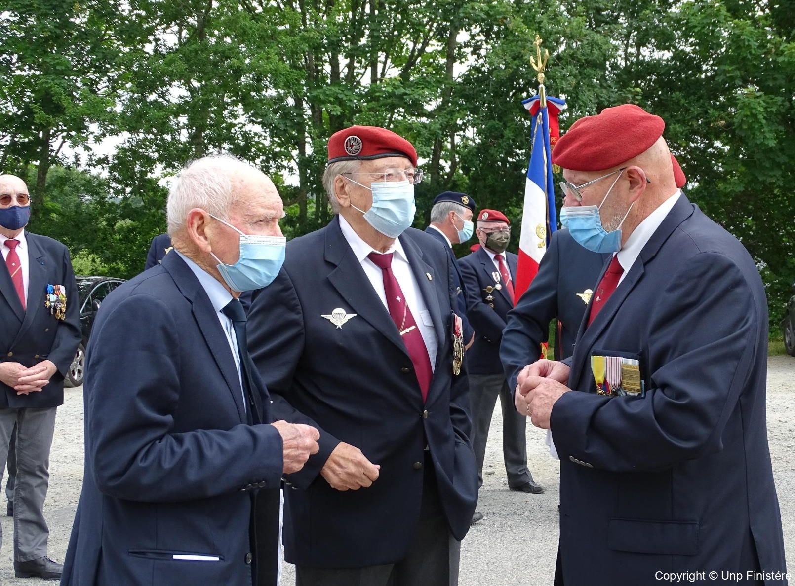 Crise sanitaire oblige, le site du mémorial n’avait pas connu une telle affluence depuis deux ans. La participation d’un piquet d’honneur avec fanion de la base navale de Brest et de près de vingt porte-drapeaux rehaussait avec force le cérémonial militaire. Après la lecture du message officiel lu par monsieur le sous-préfet, six gerbes furent déposées devant les stèles Indochine et Corée. Une belle Marseillaise chantée à capella était reprise par l’ensembles des participants. Cette cérémonie fut l’occasion pour une trentaine de membres de la section UNP du Finistère de se retrouver. Comme tous les ans, monsieur René Rouault nous présenta les unités ayant participées à cette guerre d’Indochine. Cette année les parachutistes étaient mis à l’honneur de fort belle manière. Parmi nous, monsieur Jean Kéromnés, ancien de l’aéronavale, dont l’avion fut abattu au dessus de Dien Bien Phu, lors du dernier jour de combat. Blessé il fut fait prisonnier et connut l’atrocité des camps. Ancien maire de la commune de L’Hôpital-Camfrout, c’est sous son impulsion que fut réalisé ce très beau mémorial en hommage aux finistériens ( 1254) tués en Indochine et (15) en Corée.