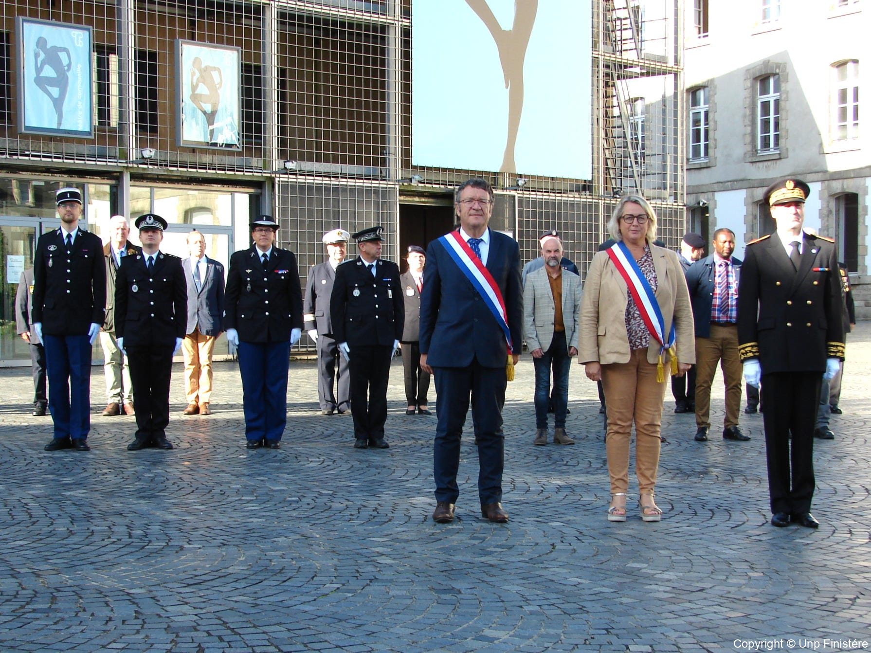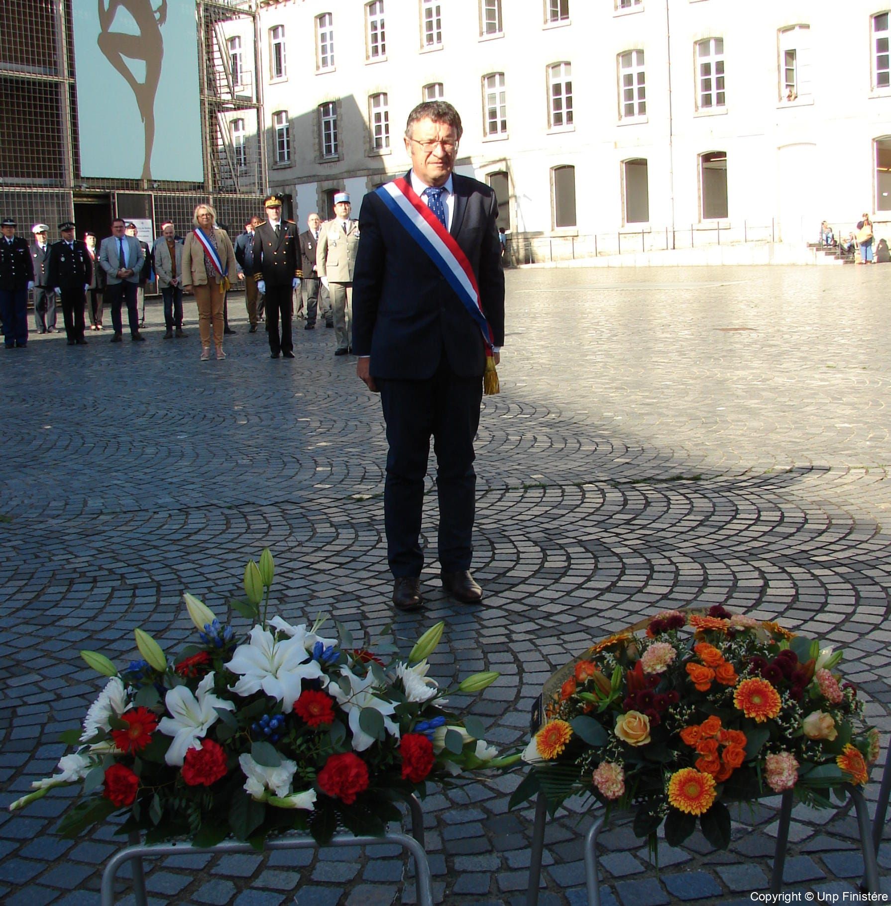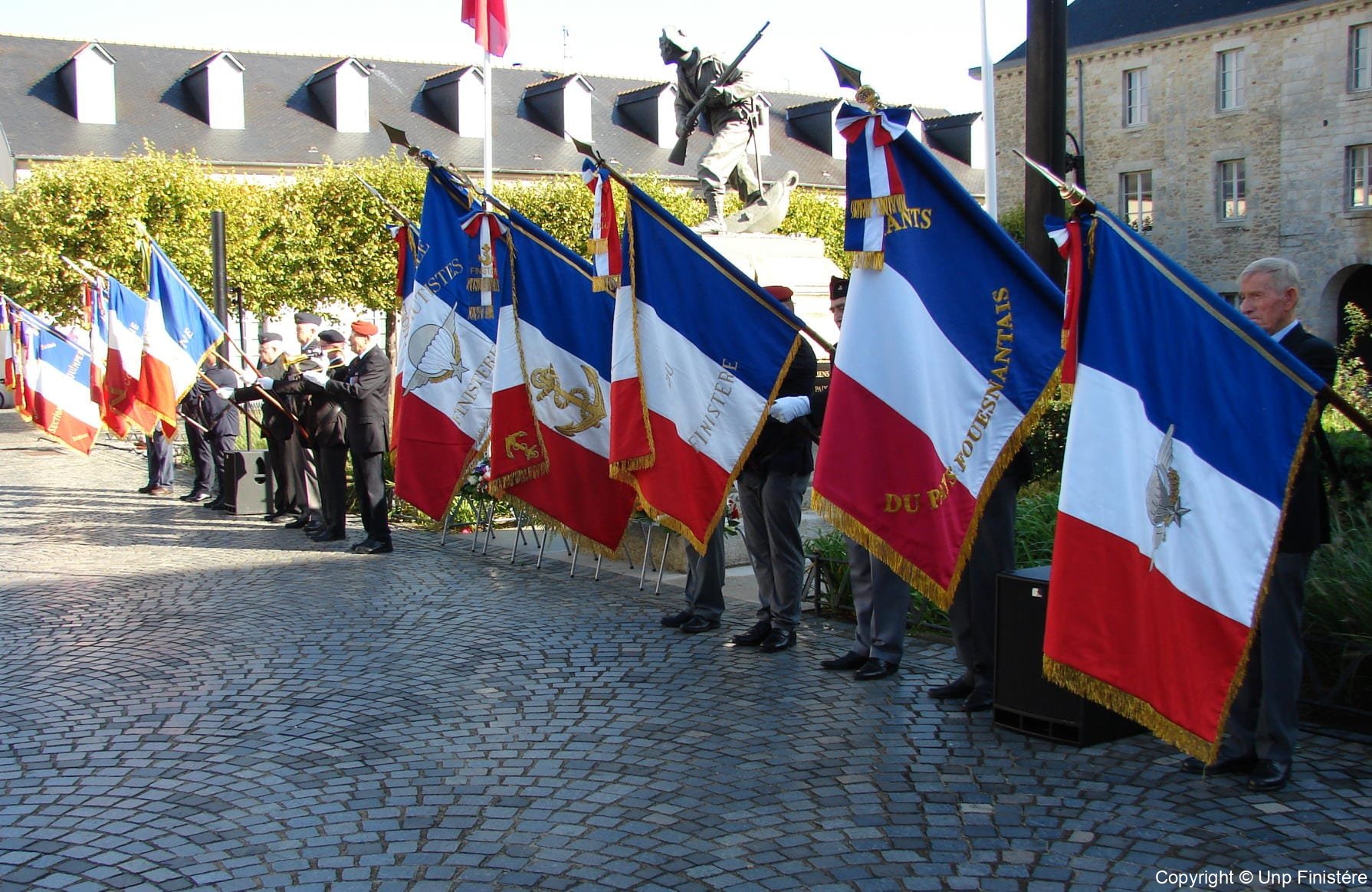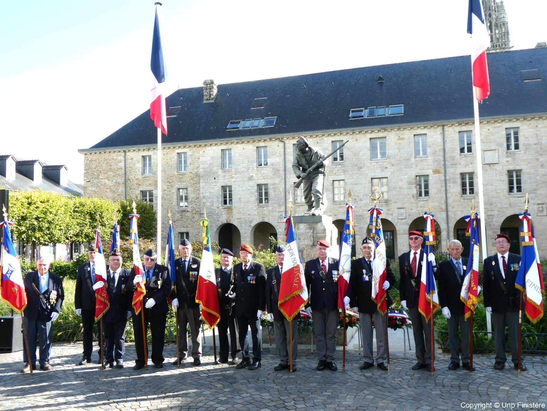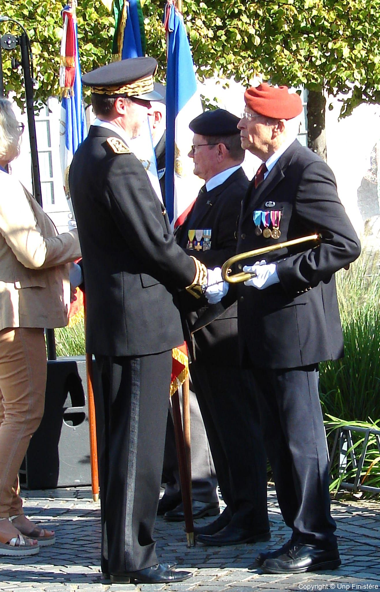 Des élus locaux, Madame la colonelle commandant la gendarmerie du Finistère, le Directeur de l’Office National des Anciens Combattants du Finistère, le Directeur départemental de la Sécurité Publique. Présence d’élus, des associations patriotiques, accompagnées de 14 porte-drapeaux.