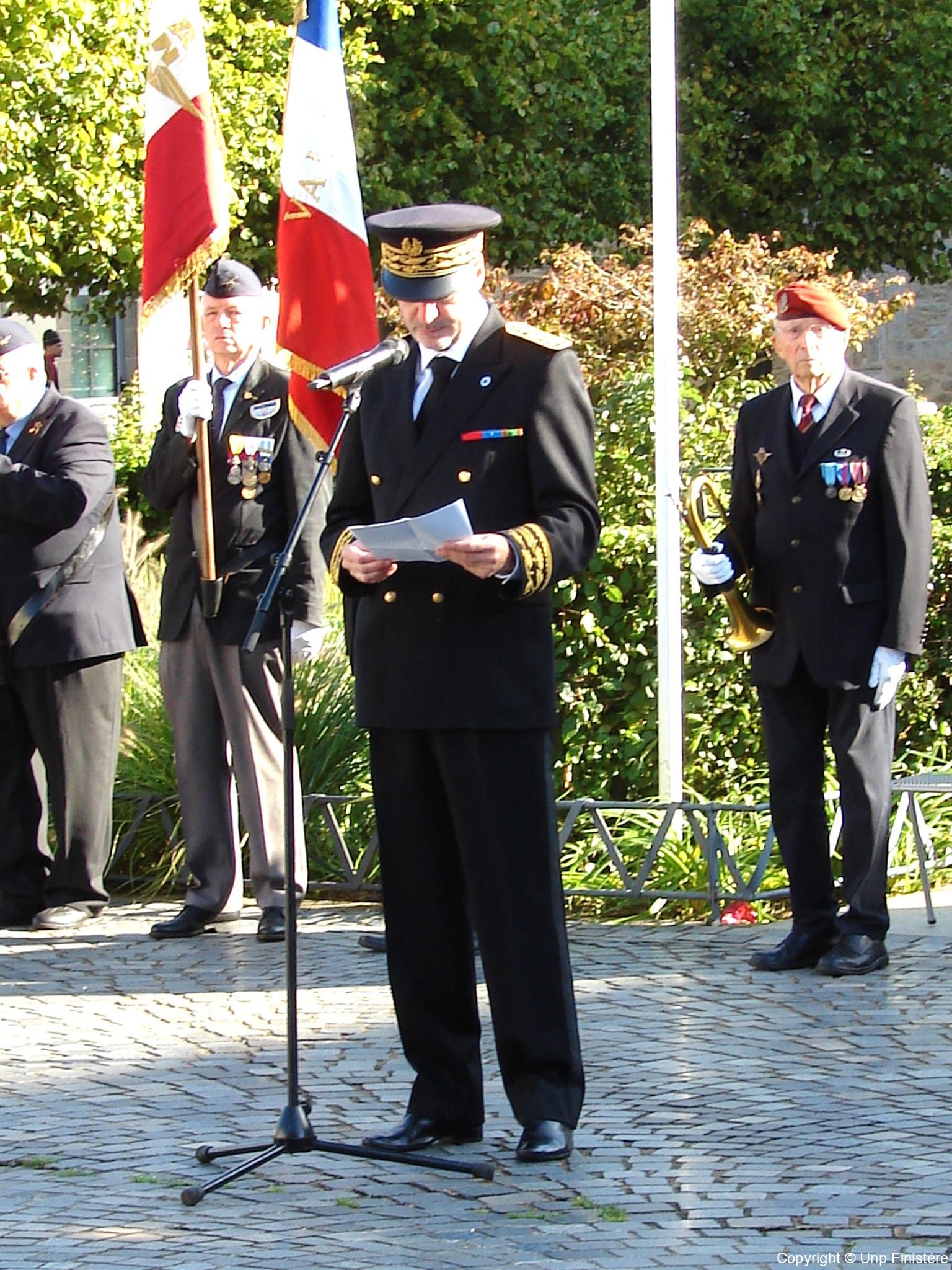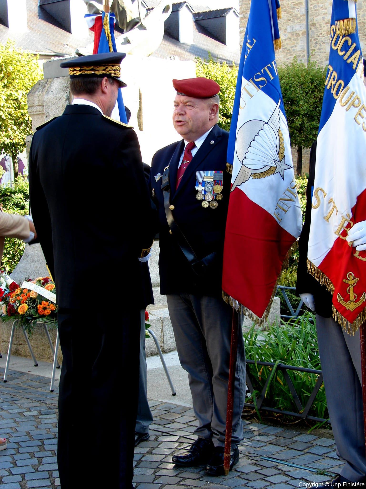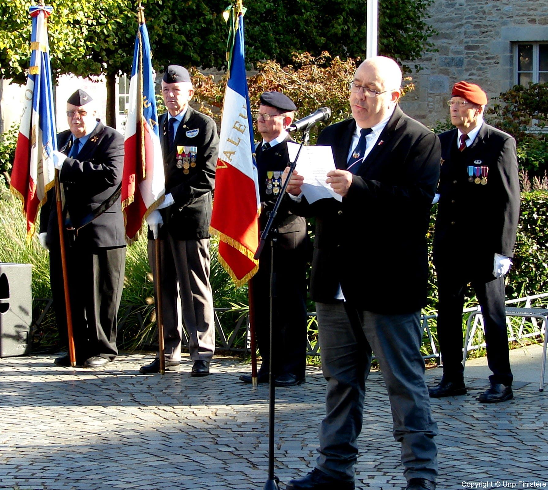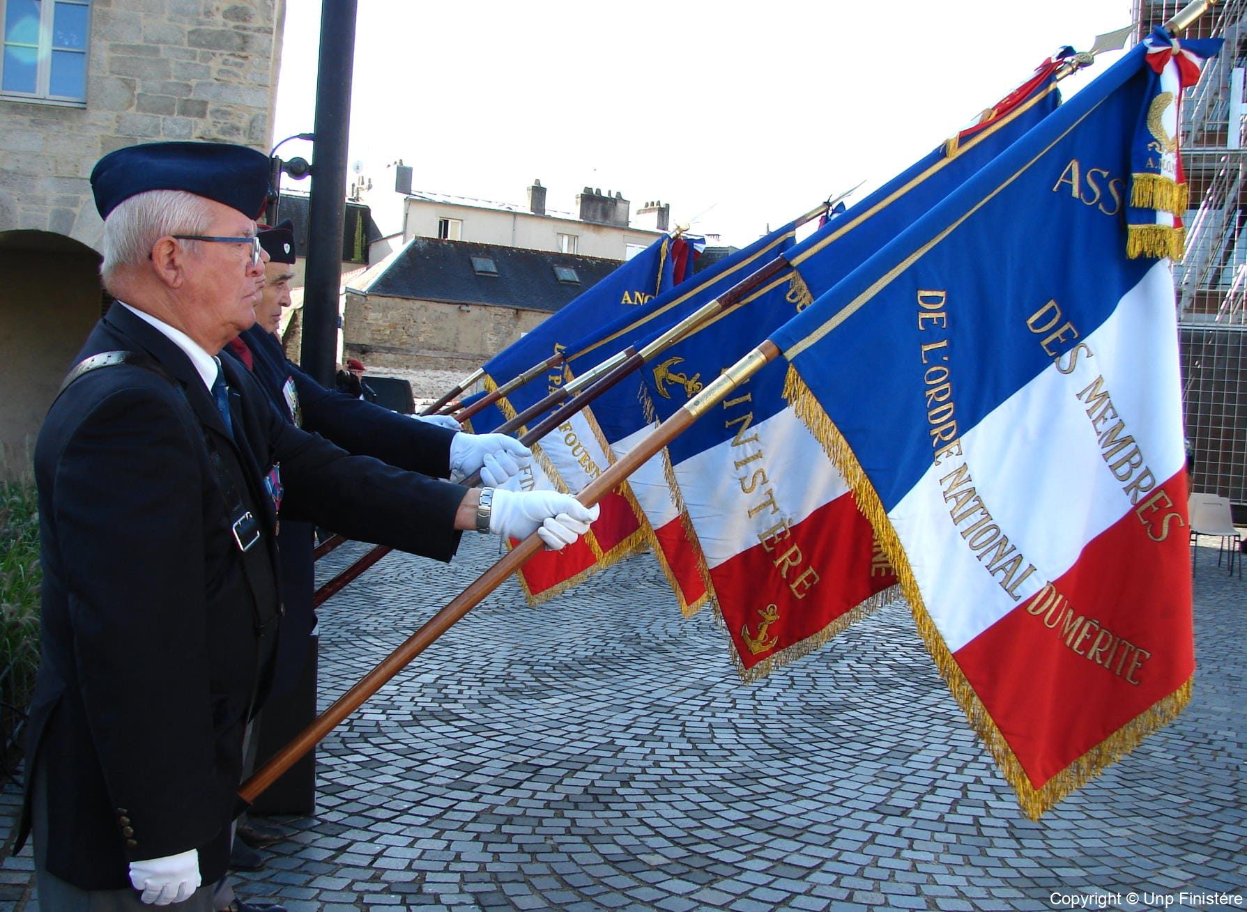 Des élus locaux, Madame la colonelle commandant la gendarmerie du Finistère, le Directeur de l’Office National des Anciens Combattants du Finistère, le Directeur départemental de la Sécurité Publique. Présence d’élus, des associations patriotiques, accompagnées de 14 porte-drapeaux.