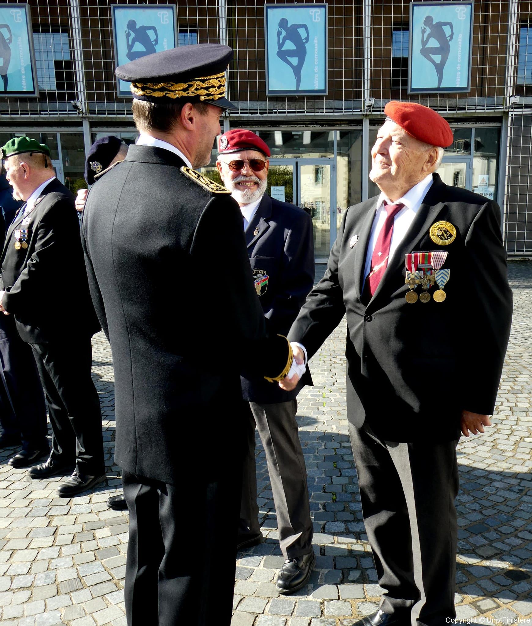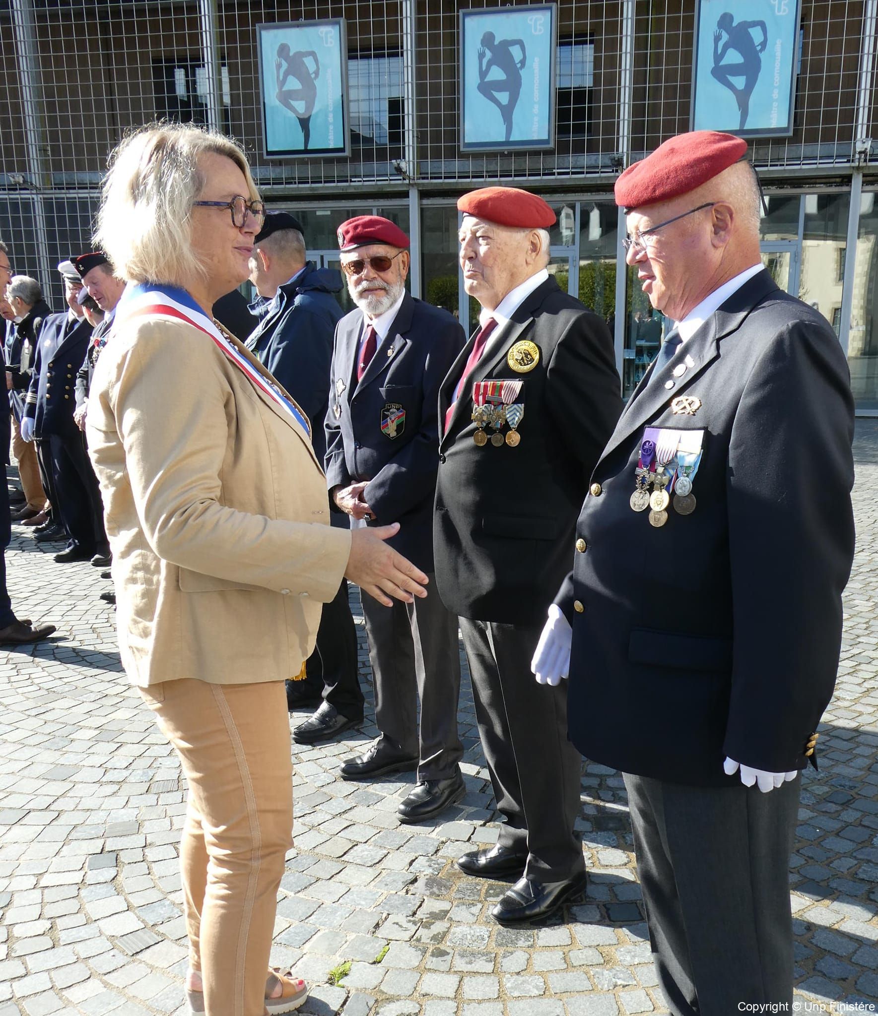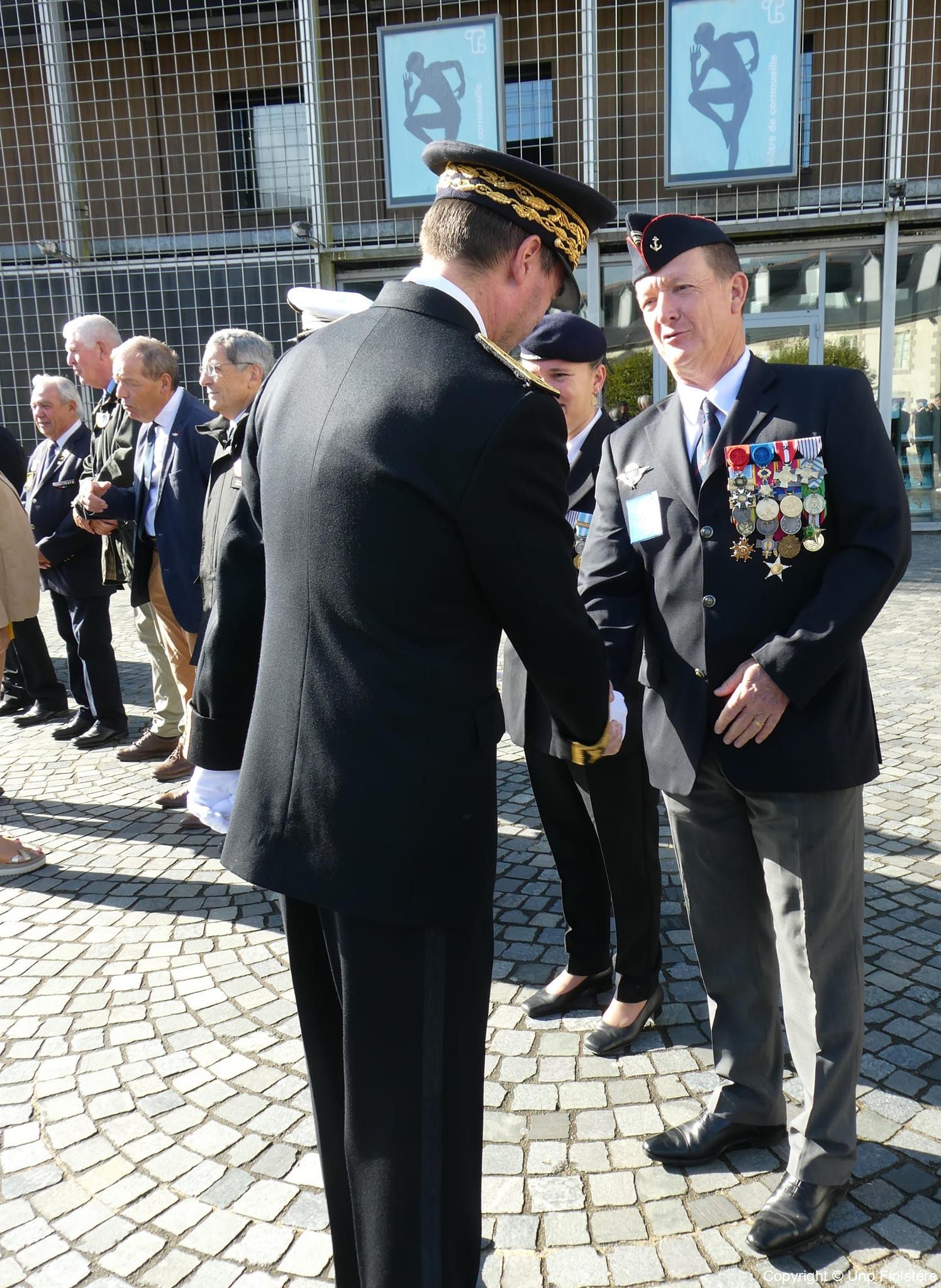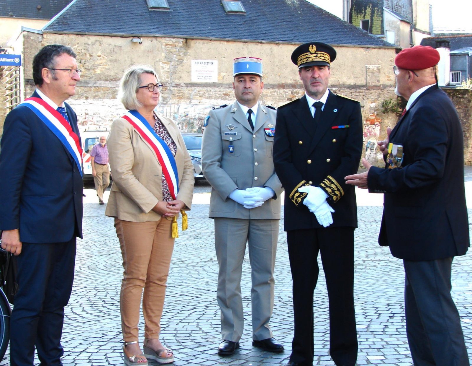 Des élus locaux, Madame la colonelle commandant la gendarmerie du Finistère, le Directeur de l’Office National des Anciens Combattants du Finistère, le Directeur départemental de la Sécurité Publique. Présence d’élus, des associations patriotiques, accompagnées de 14 porte-drapeaux.