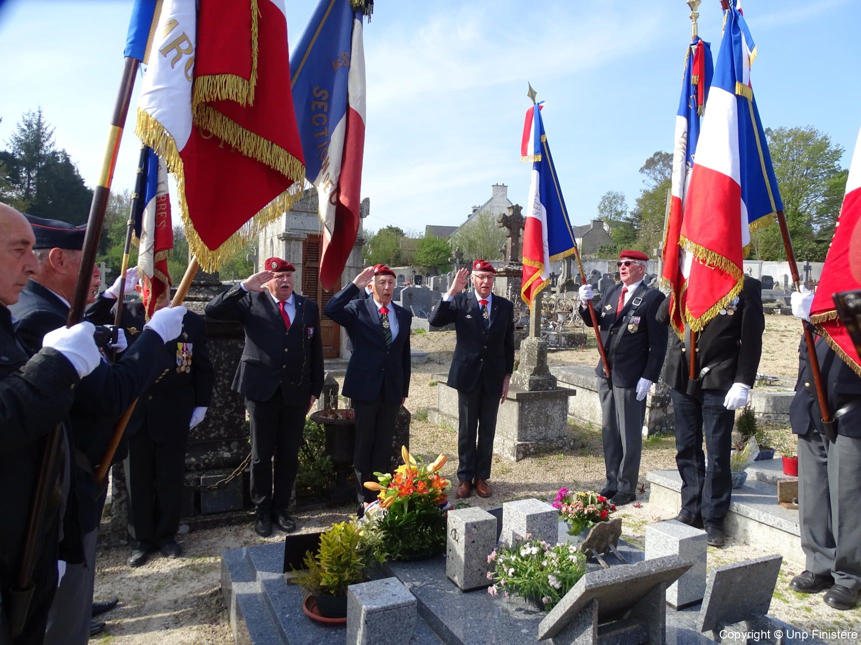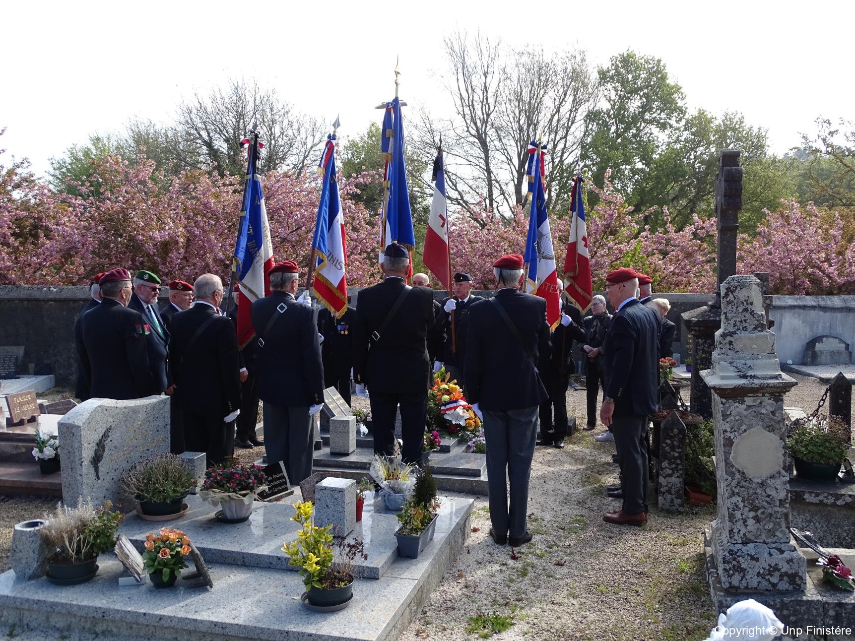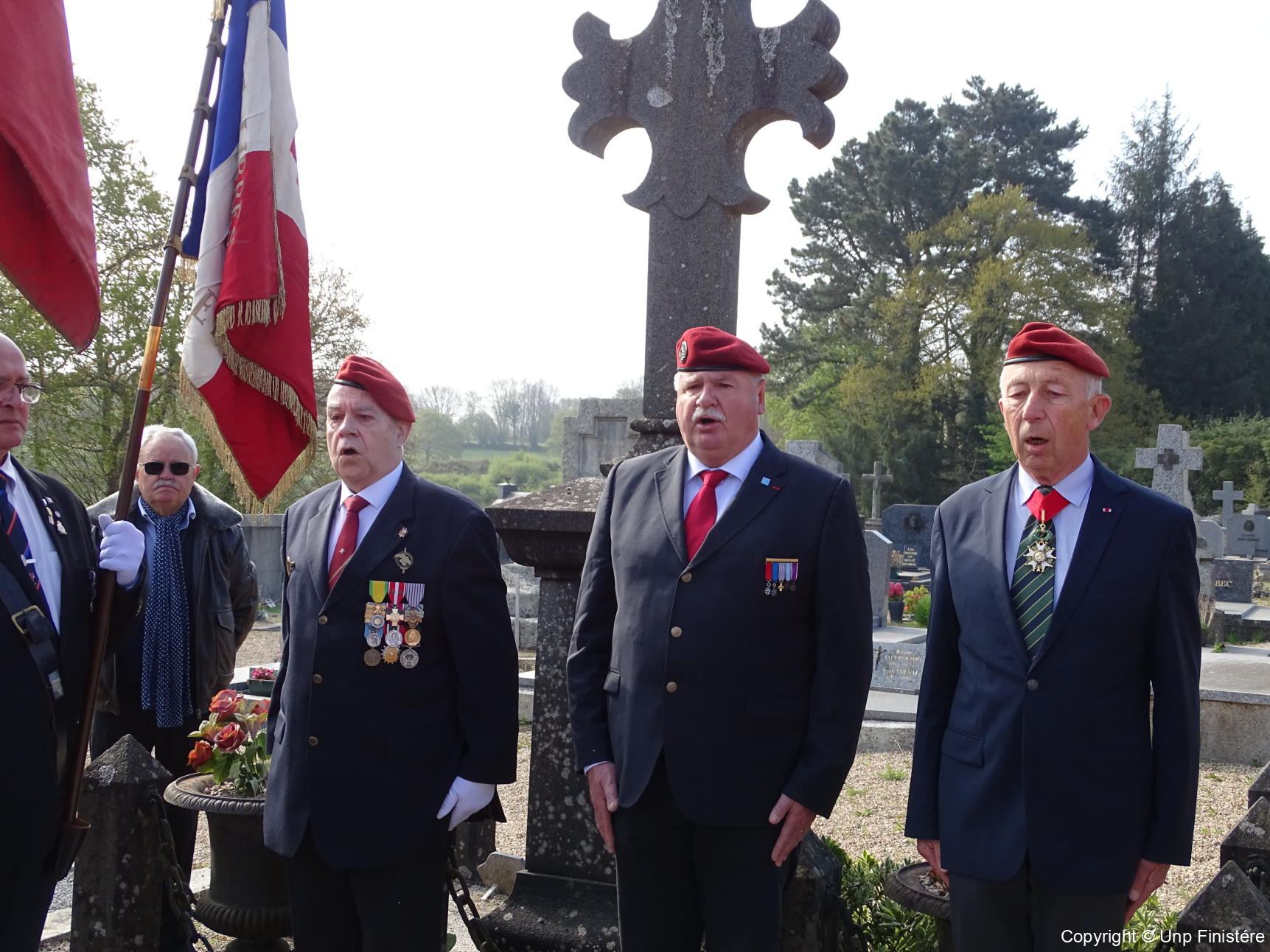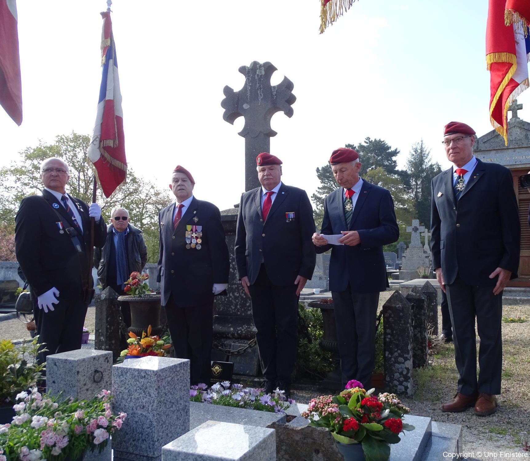 Rassemblés devant la tombe de notre ami Marcel, une vingtaine de participants ont assisté à cette cérémonie présidée par le général (er) Yves JACOPS. En présence du général (er) Jacques LECHEVALLIER, président de la FNAP, ancien Chef de Corps du 1er RCP, des membres de la famille, des représentants départementaux de l’Entraide Rémy FABRE et Jean-Marc DEBRUYNE, d’une délégation de la section UNP du Finistère et de sept porte-drapeaux. Une plaque et une gerbe ont été déposées sur la tombe par le président de l’Entraide. Les drapeaux se sont inclinés lors de la sonnerie aux « Morts » puis la Marseillaise a été entonnée par tous les participants. Pour la circonstance la Prière du Para a été chantée, cette cérémonie se termina par le chant » J’avais un camarade »