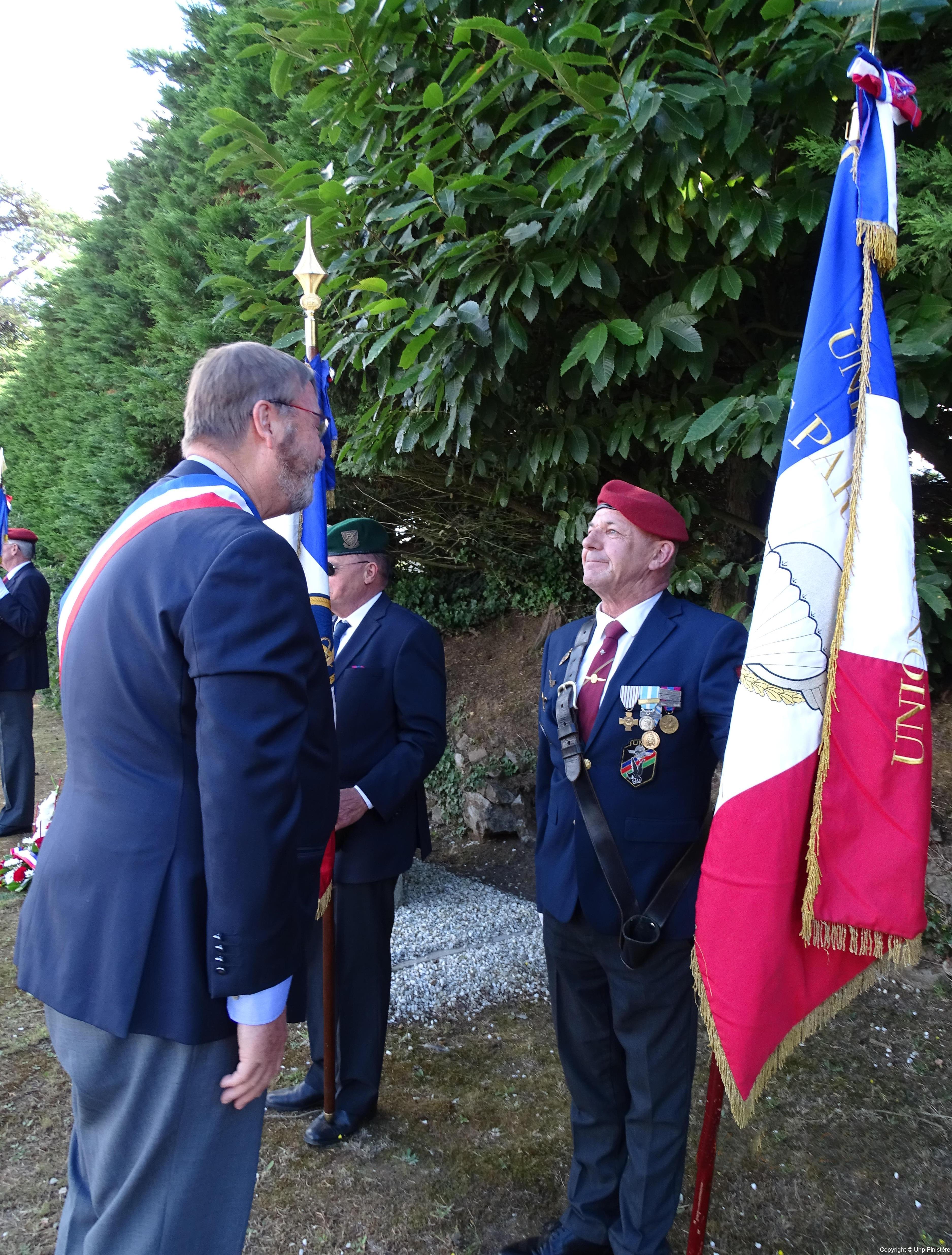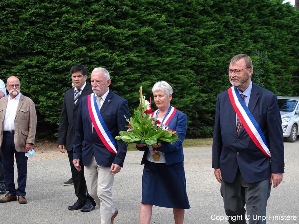 Cette cérémonie était présidée par monsieur Renaud de Clermont-Tonnerre, maire de Plouégat-Guérand, en présence de madame Maryse Tocquer, maire de Saint Jean du Doigt et de monsieur François Girotto maire de Plouégat-Moysan étaient également présents le chef d’escadron Erwann Laisney accompagné d’un officier de la compagnie de gendarmerie de Plourin les Morlaix d’un conseiller régional et le fils du résistant et parachutiste Hubert Pinaton.