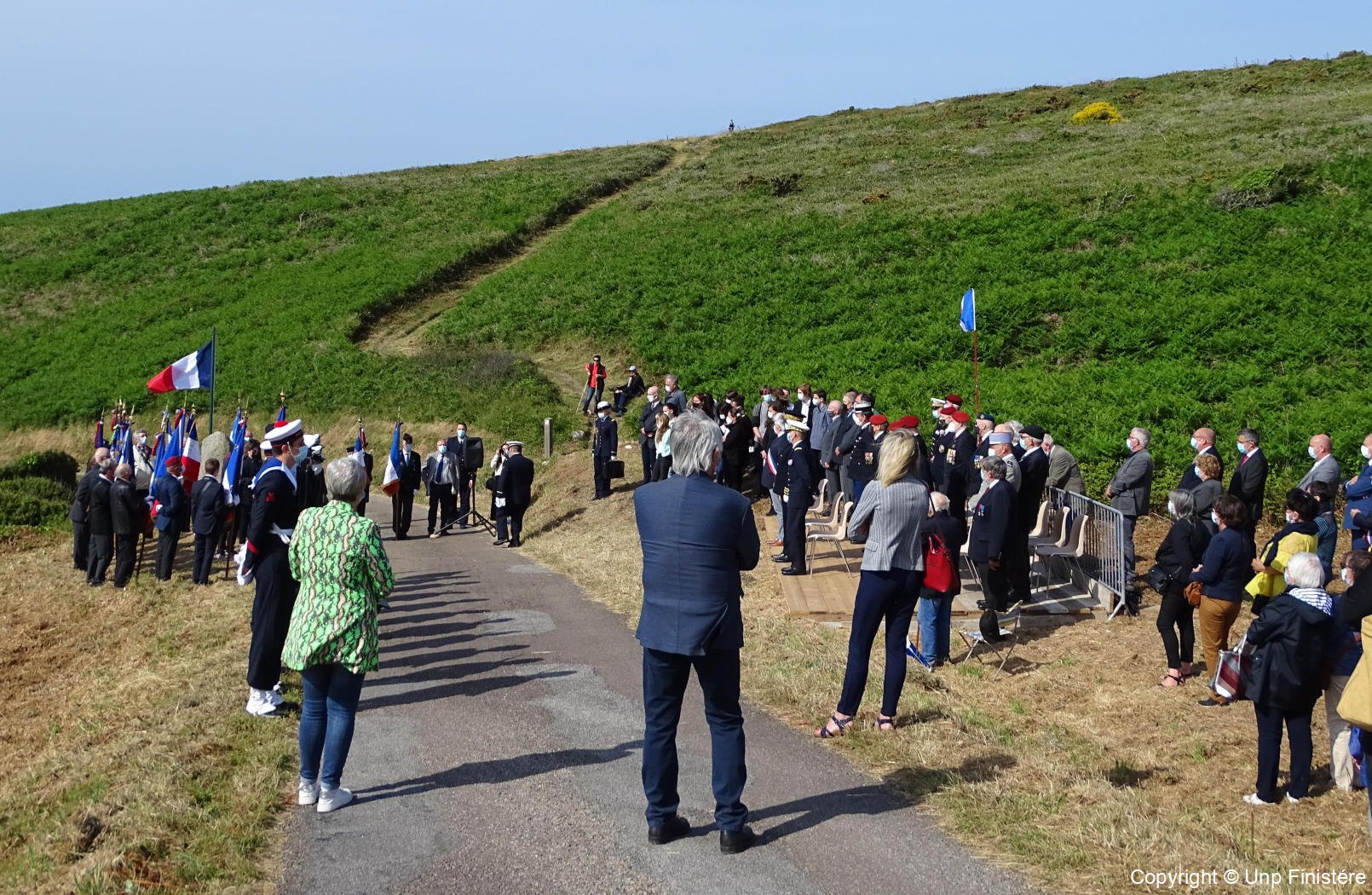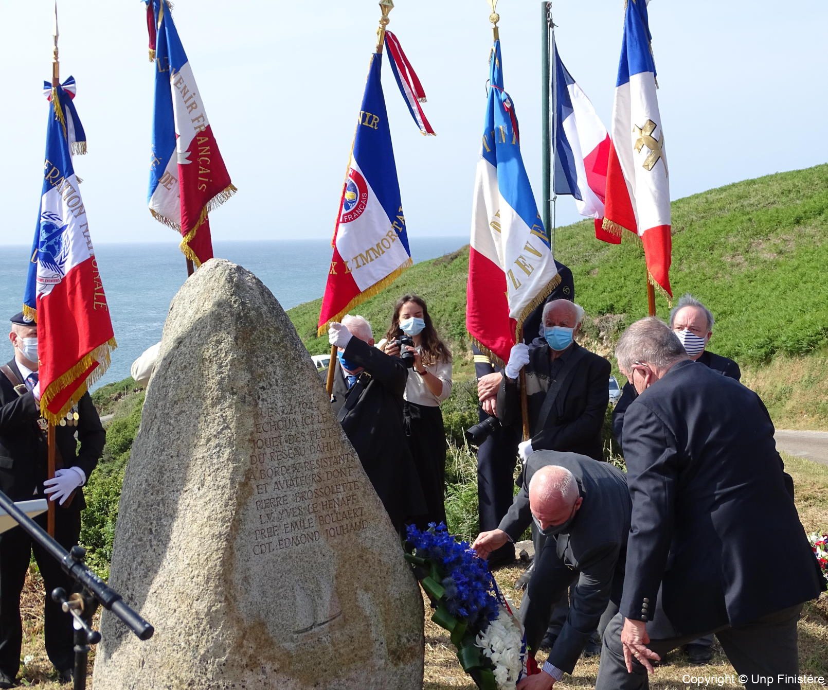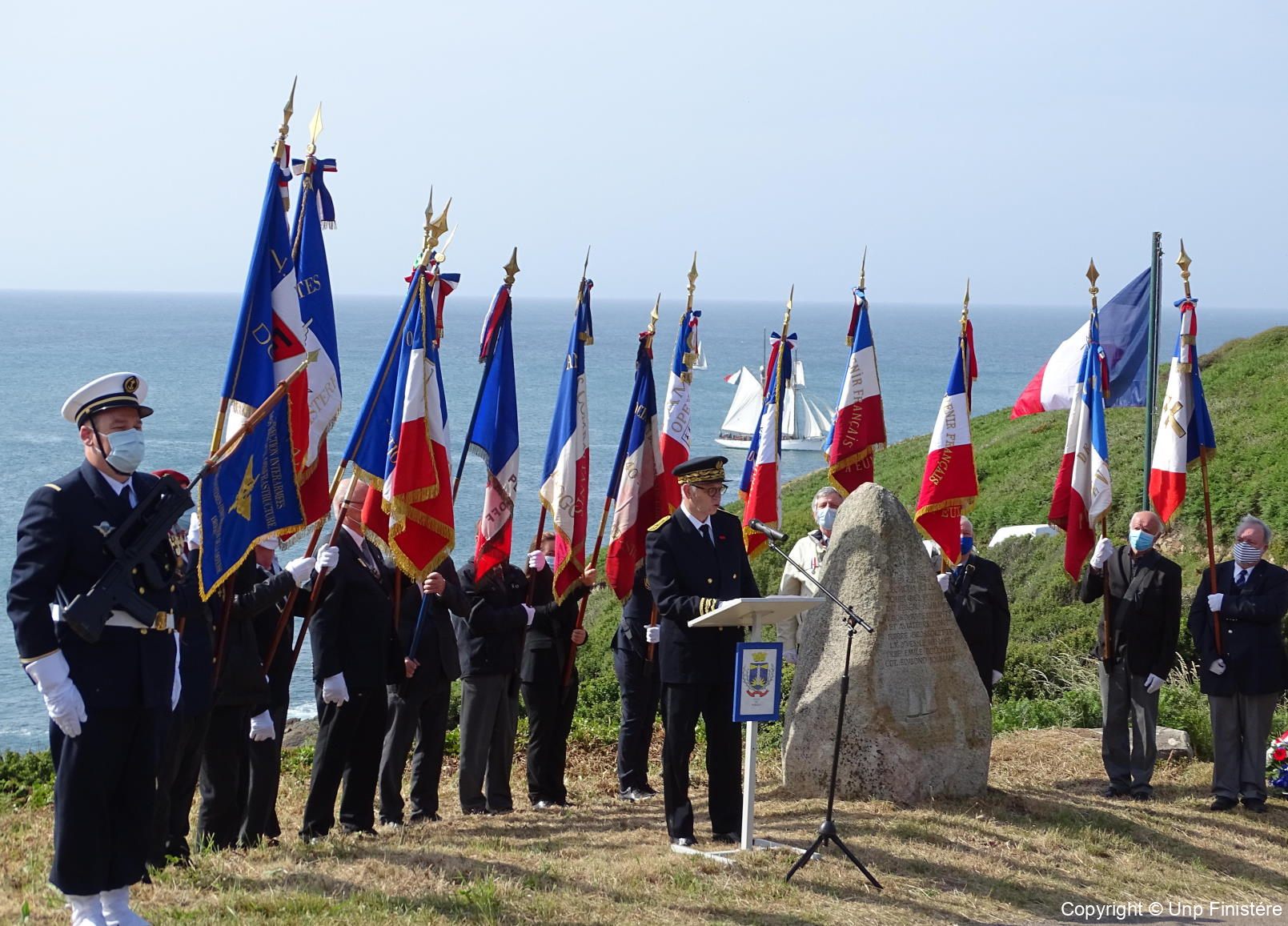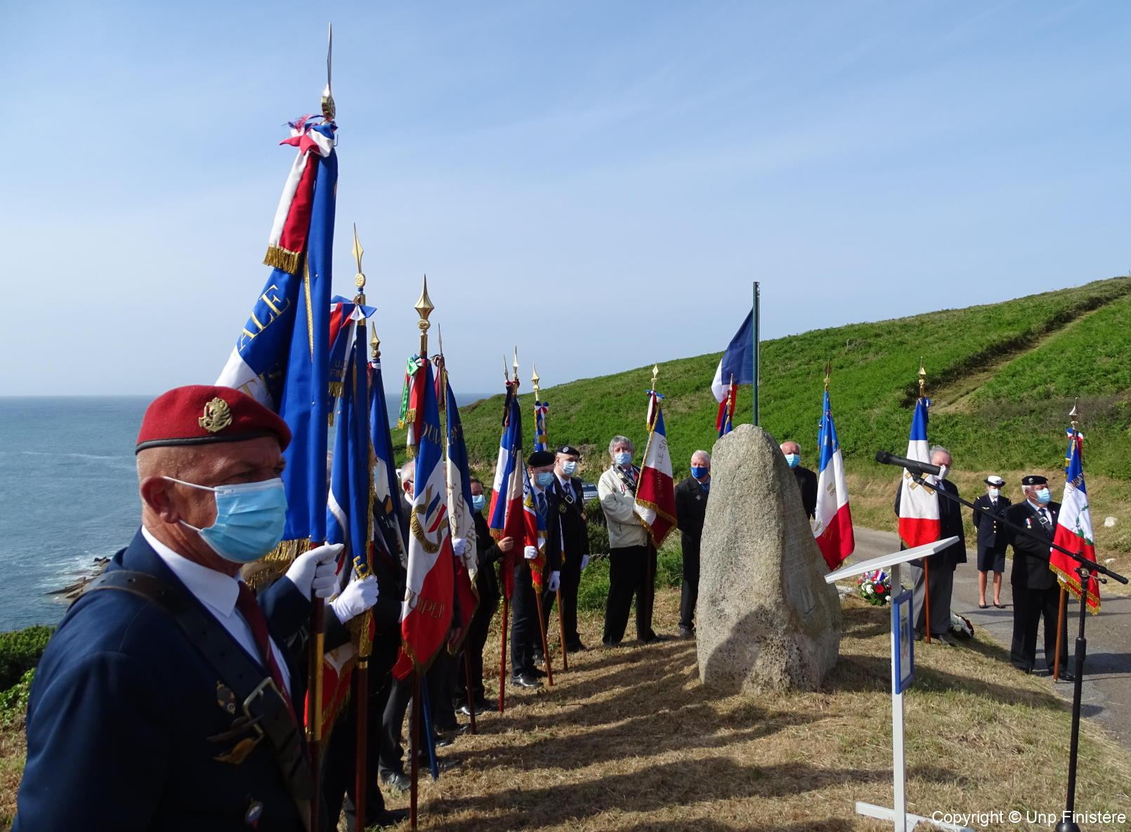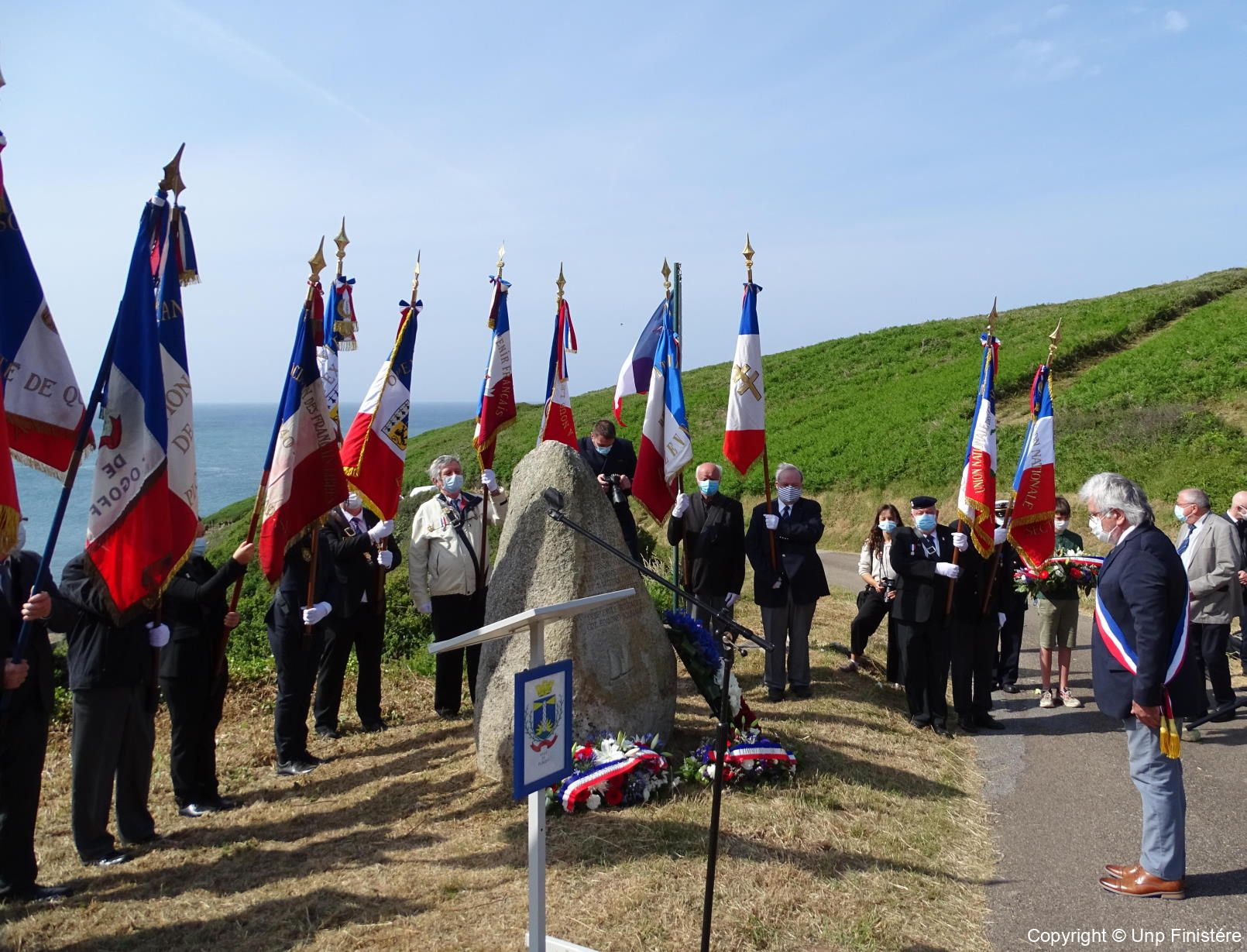 La cérémonie s’est déroulée sur la commune de Plogoff devant la stèle érigée au petit port de Feunten Aod en hommage aux passagers du bateau » Le Jouet des Flots » qui sombra à cet endroit en voulant rejoindre l’Angleterre. Sur la stèle un hommage est rendu à l’équipage, aux membres du réseau « Dahlia »les lieutenants de vaisseaux Yves Le Hénaff et André Cann et aux résistants et aviateurs dont Pierre Brossolette, Emile Bollaert et le commandant Edmond Jouhaud.