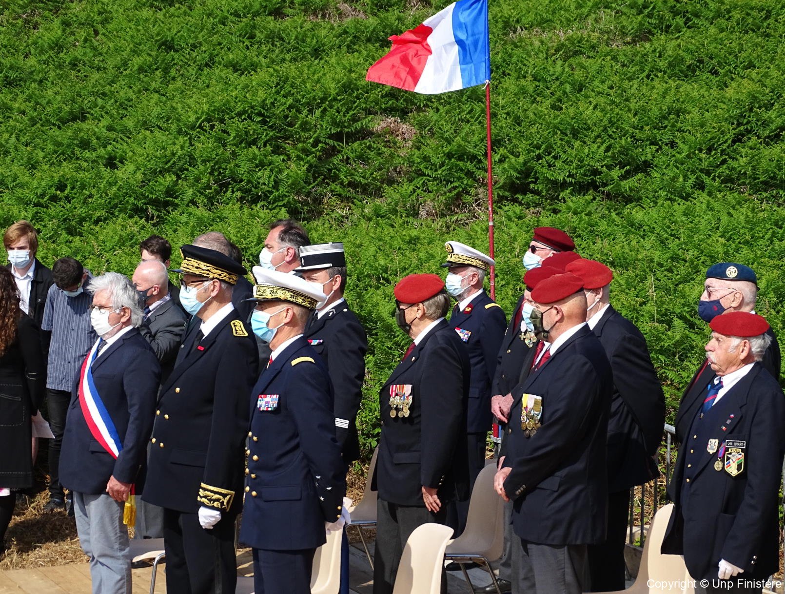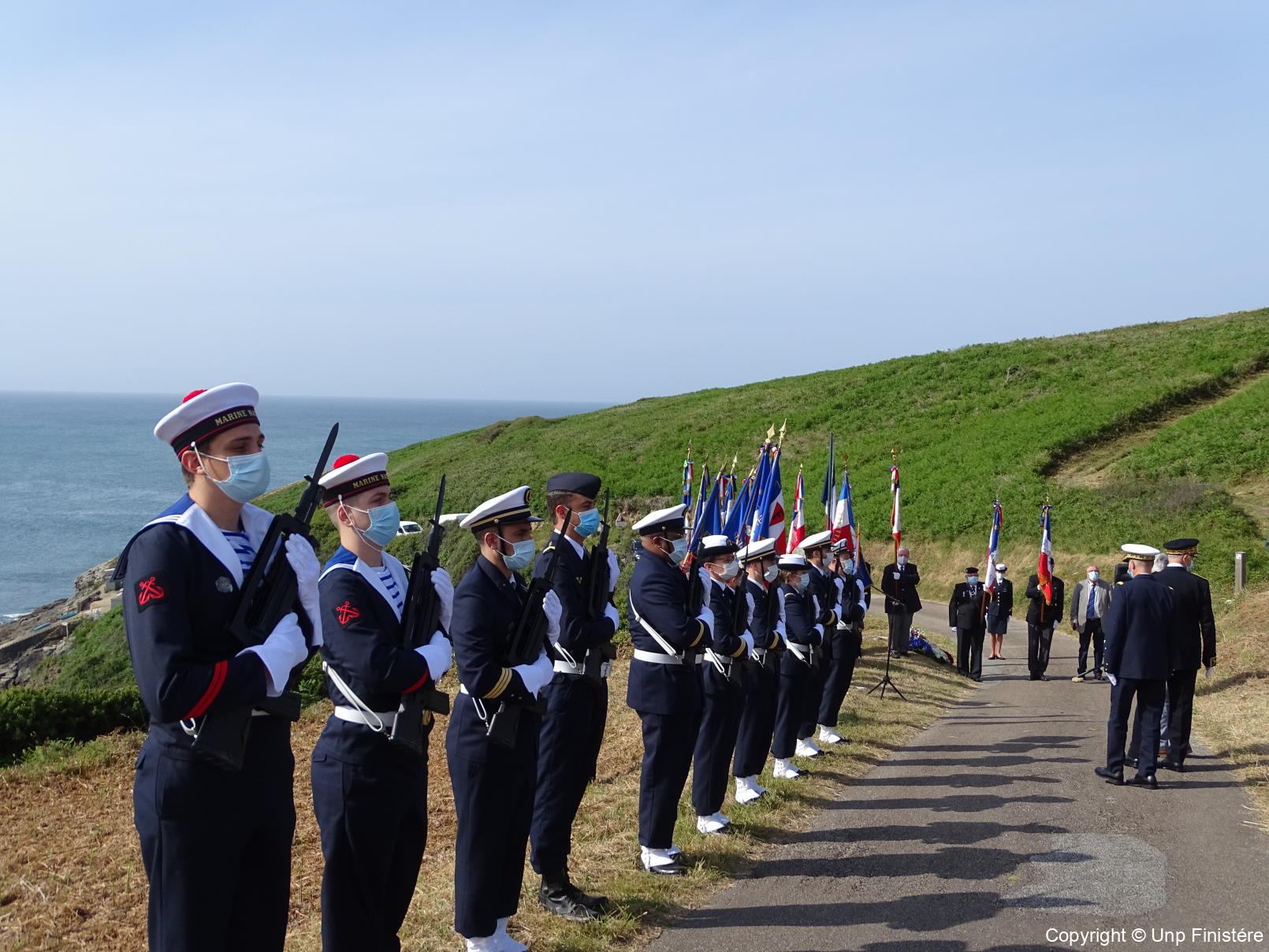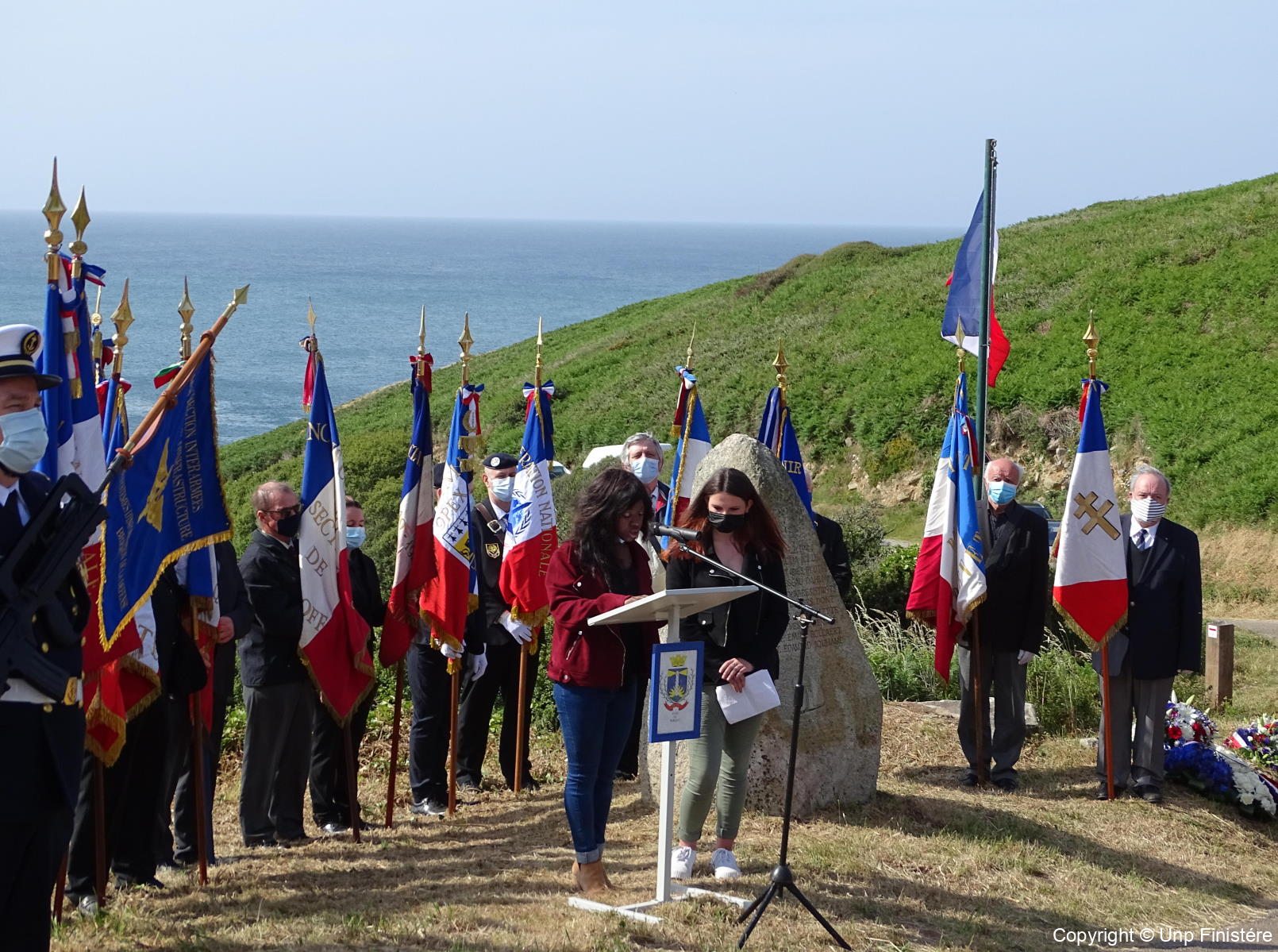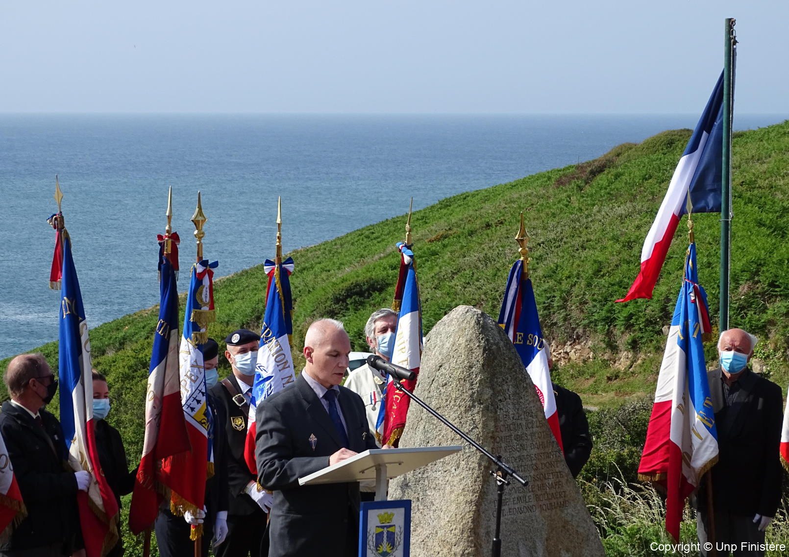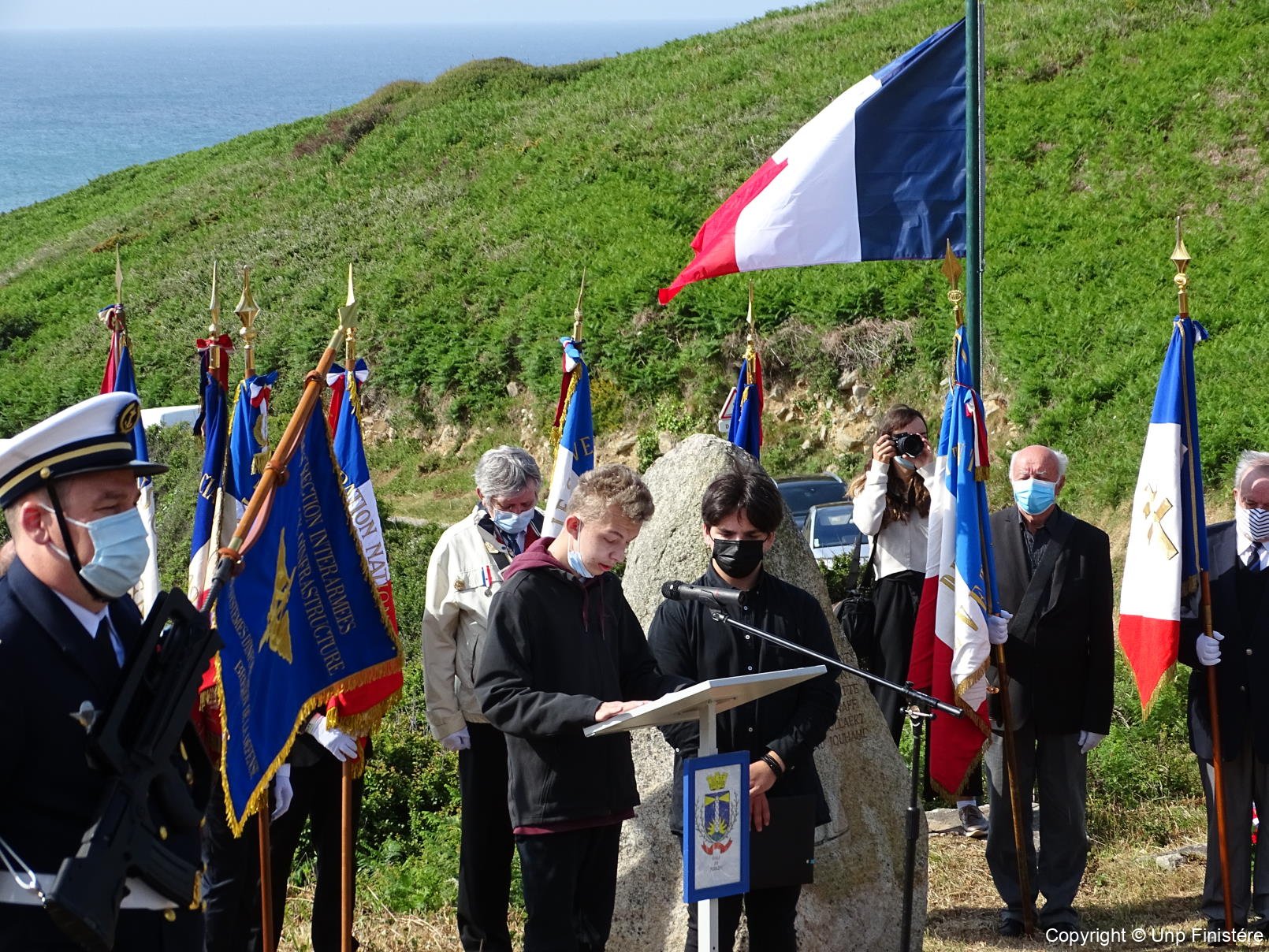 La cérémonie s’est déroulée sur la commune de Plogoff devant la stèle érigée au petit port de Feunten Aod en hommage aux passagers du bateau » Le Jouet des Flots » qui sombra à cet endroit en voulant rejoindre l’Angleterre. Sur la stèle un hommage est rendu à l’équipage, aux membres du réseau « Dahlia »les lieutenants de vaisseaux Yves Le Hénaff et André Cann et aux résistants et aviateurs dont Pierre Brossolette, Emile Bollaert et le commandant Edmond Jouhaud.