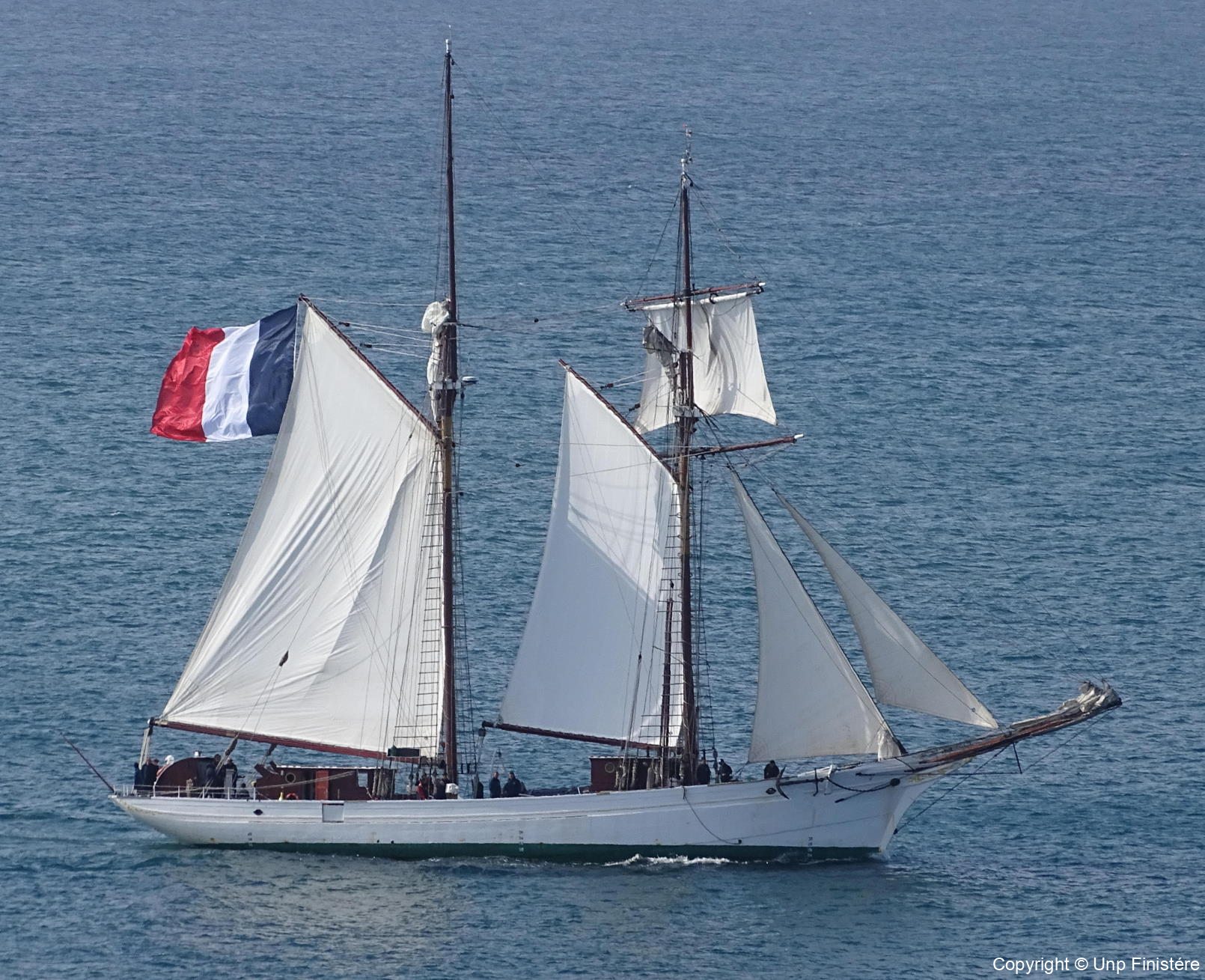 Durant toute la cérémonie la goélette » La belle Poule » fit des ronds dans l’eau à l’endroit exact où le » Le Jouet des Flots » sombra il y a 77 ans.