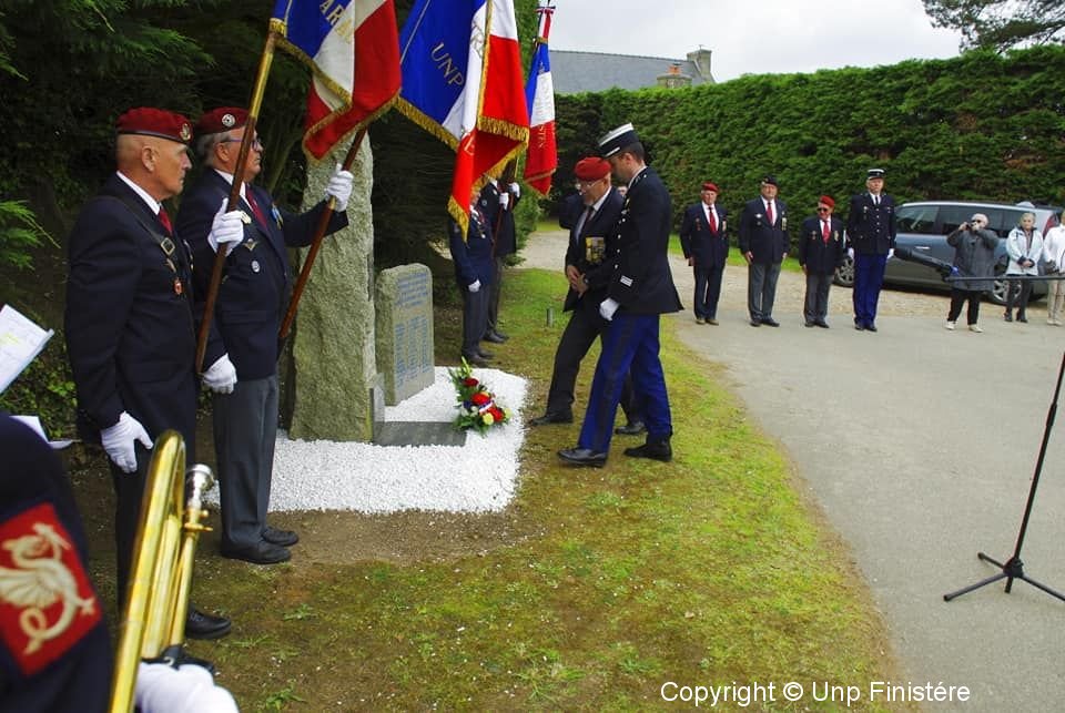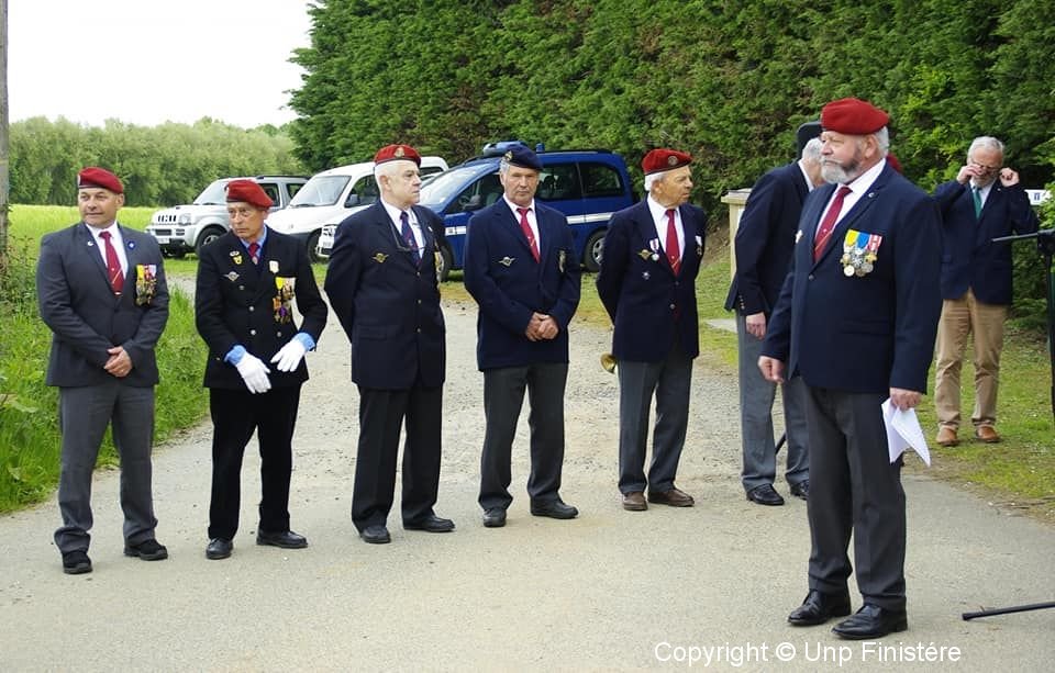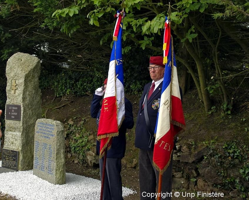 Une forte délégation de la section UNP du Finistère , c’est une nouvelle fois regroupée  à Kerabars devant la stèle  érigée sur l’emplacement de la ferme-PC du docteur Léon Le Janne, pour garder le souvenir du maquis de Saint-Laurent et pour honorer tous ceux et celles qui ont  tant oeuvré pour la Libération du pays de Morlaix et plus particulièrement pour les hommes et les femmes qui se sont battus et tombés au Champ d’Honneur au sein du maquis de Saint Laurent. ( extrait du discours prononcé devant la stèle)