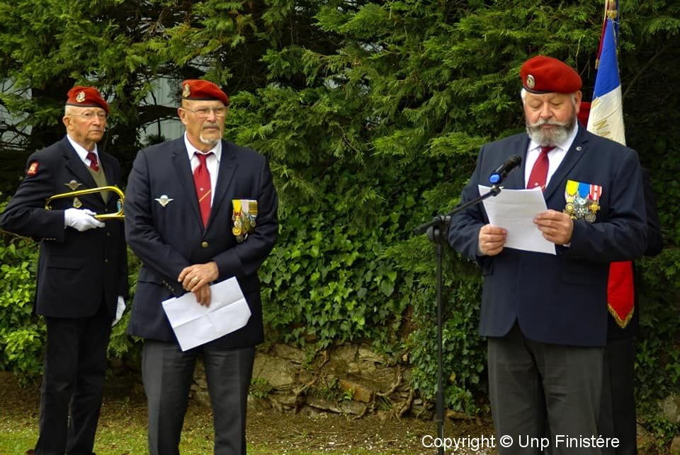 Cette cérémonie était présidée par madame Annie Loneux , maire-adjointe de Plouégat-Guérand,  et Alain Le Clech président départemental de l’UNP.