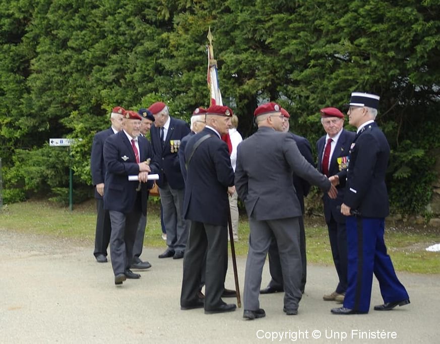A l’issue de la cérémonie , la municipalité de Plouégat-Guérand offrait un vin d’honneur dans les locaux de la mairie . Occasion pour le président Alain  de remercier tous ceux et celles qui avaient souhaiter effectuer ce devoir de mémoire. La section offrait aux deux communes ainsi qu’au Chef de Bataillon Laisney un cadre souvenir , sur lequel était représenté toutes les insignes parachutistes.