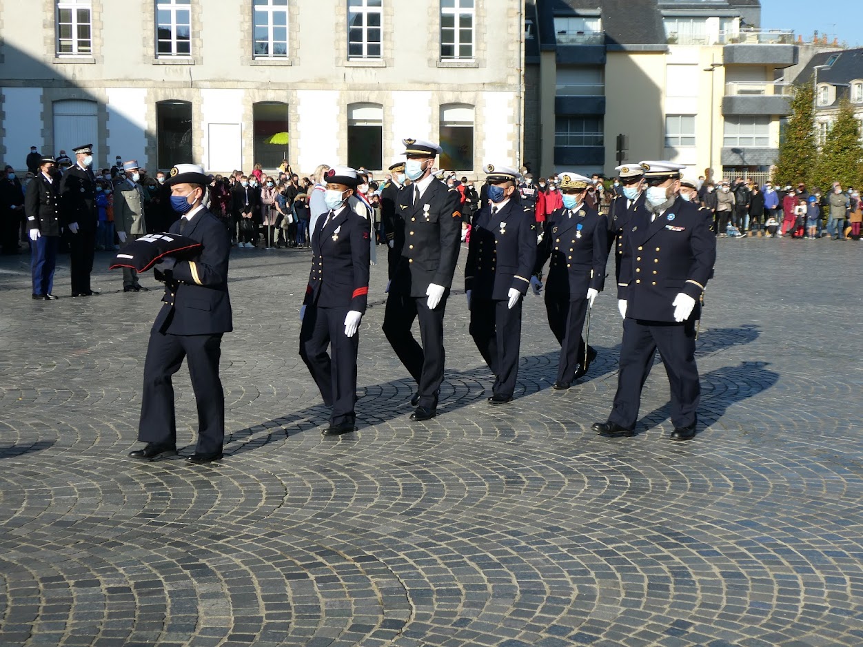 Cette cérémonie s’est déroulée à Quimper, présidée par Monsieur Philippe Mahé, préfet du Finistère en présence du vice-amiral d’escadre Olivier Le bas, commandant la zone maritime de l’Atlantique, commandant l’arrondissement maritime Atlantique et Préfet maritime de l’Atlantique, de madame Isabelle Assih, maire de Quimper