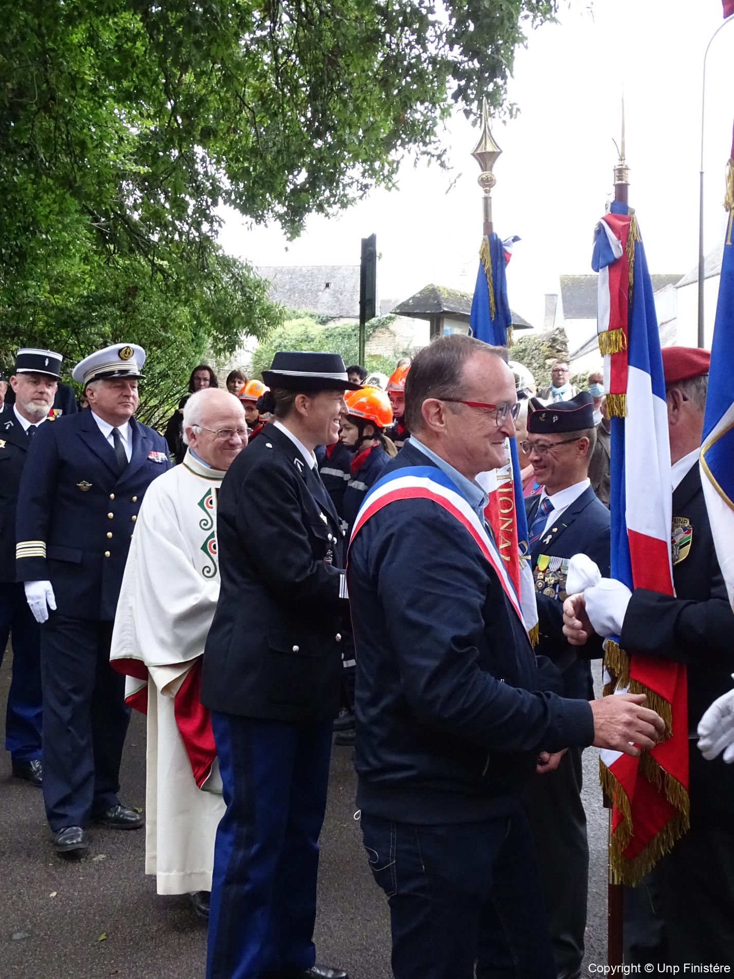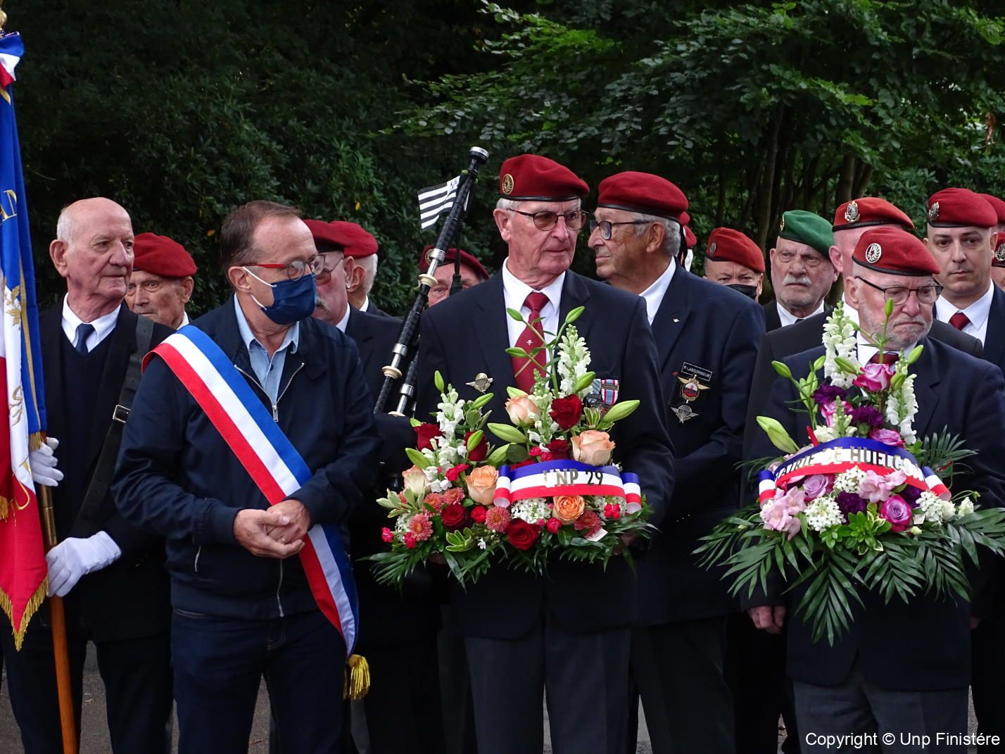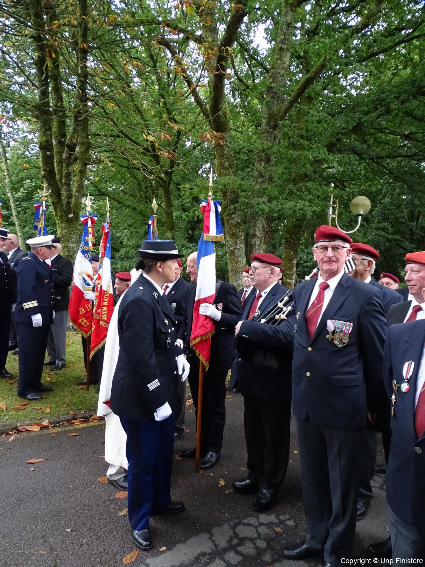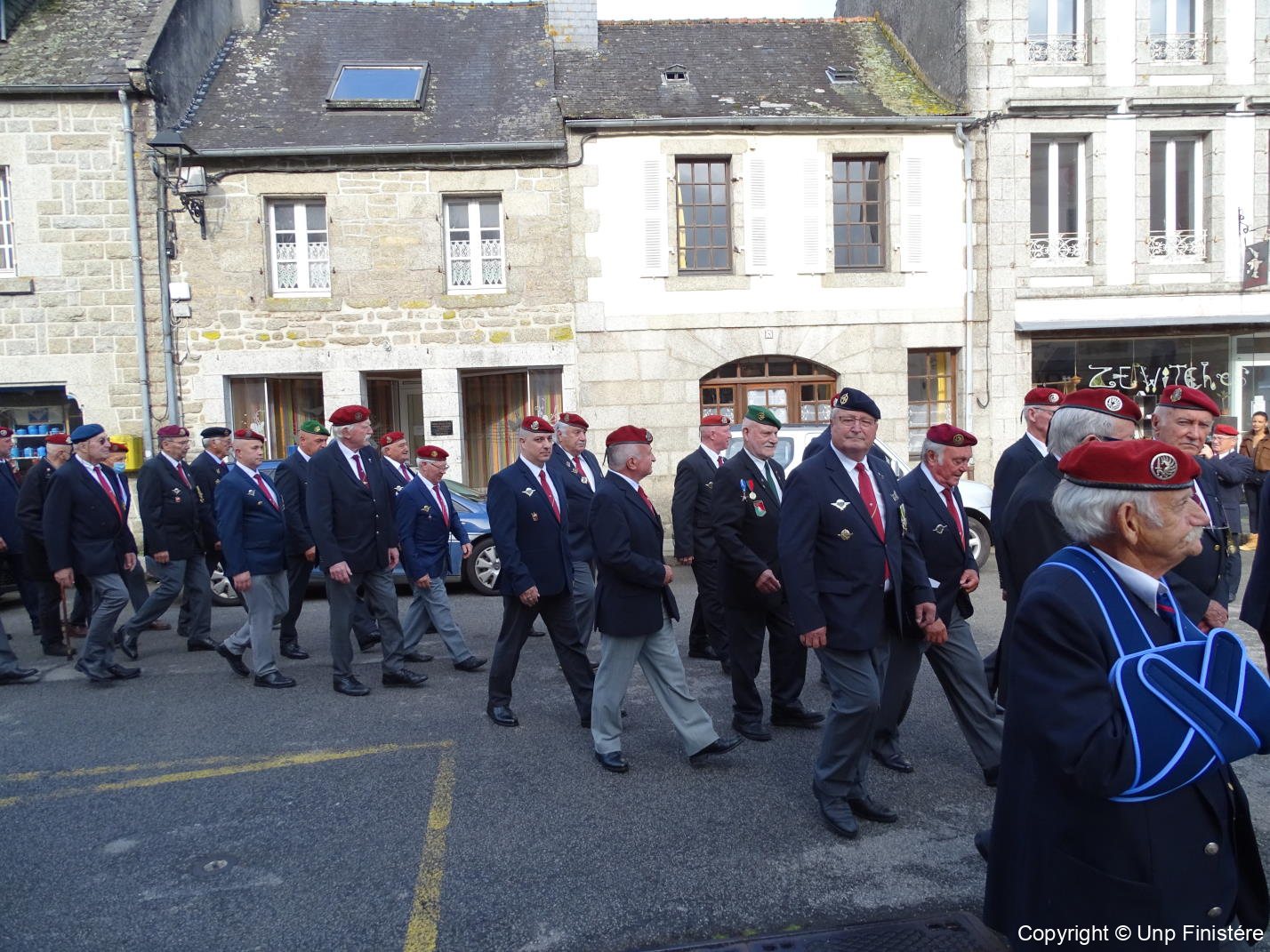 Plus de deux cents personnes se regroupent devant le monument aux Morts. Le président de la section UNP du Finistère lit le message du général Patrice Caille, président national de l’UNP. Deux gerbes sont déposées, l’une par monsieur Jacques Thépaut, maire de la commune et la colonelle Charlotte Tournant, la seconde par Alain Le Clech président de la section UNP290 et le Capitaine de Frégate Stanislas Assiz. Sonnerie aux Morts puis une Marseillaise chantée à capella par l’ensemble des participants clôturent cette belle cérémonie.