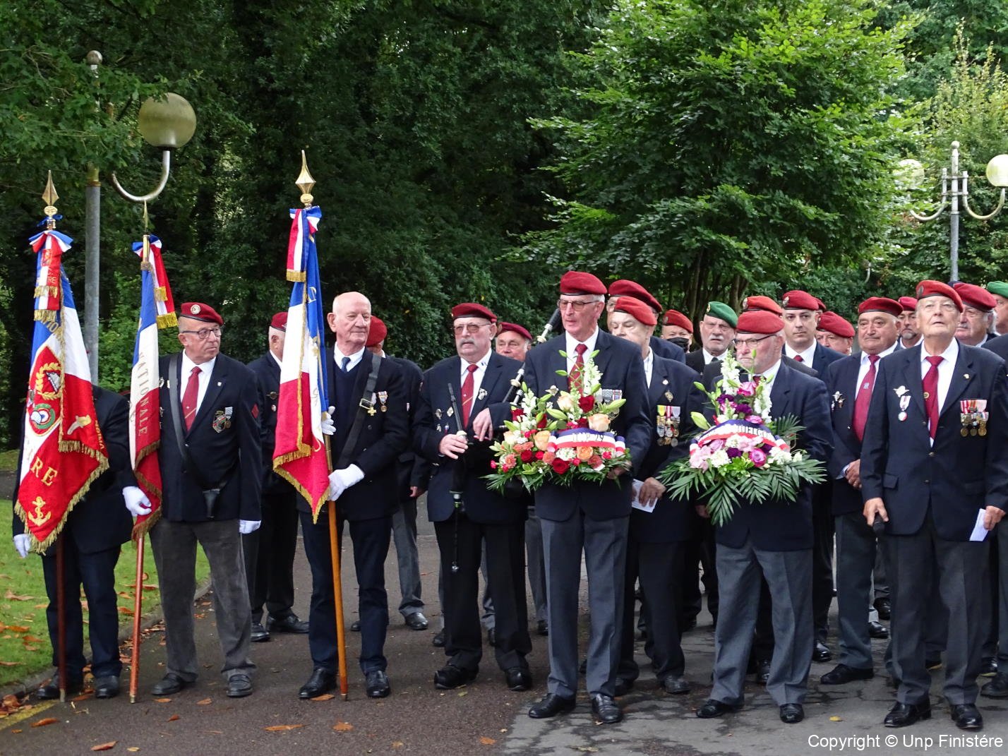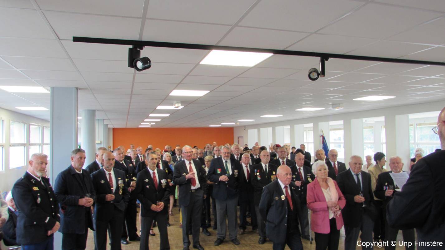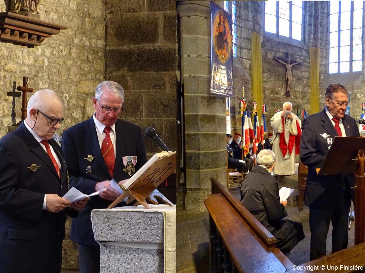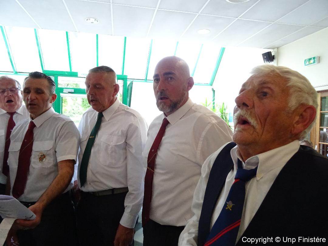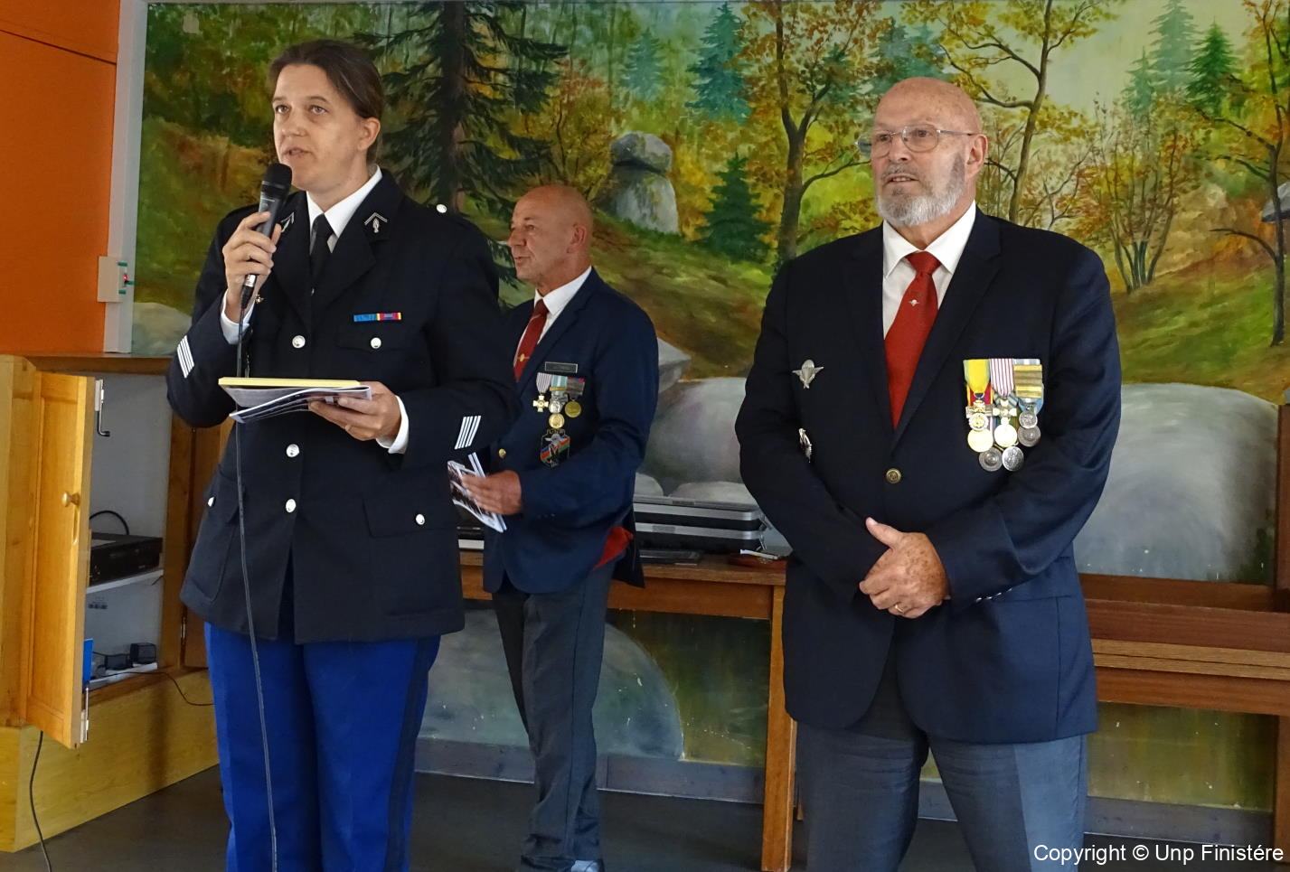 Plus de deux cents personnes se regroupent devant le monument aux Morts. Le président de la section UNP du Finistère lit le message du général Patrice Caille, président national de l’UNP. Deux gerbes sont déposées, l’une par monsieur Jacques Thépaut, maire de la commune et la colonelle Charlotte Tournant, la seconde par Alain Le Clech président de la section UNP290 et le Capitaine de Frégate Stanislas Assiz. Sonnerie aux Morts puis une Marseillaise chantée à capella par l’ensemble des participants clôturent cette belle cérémonie.