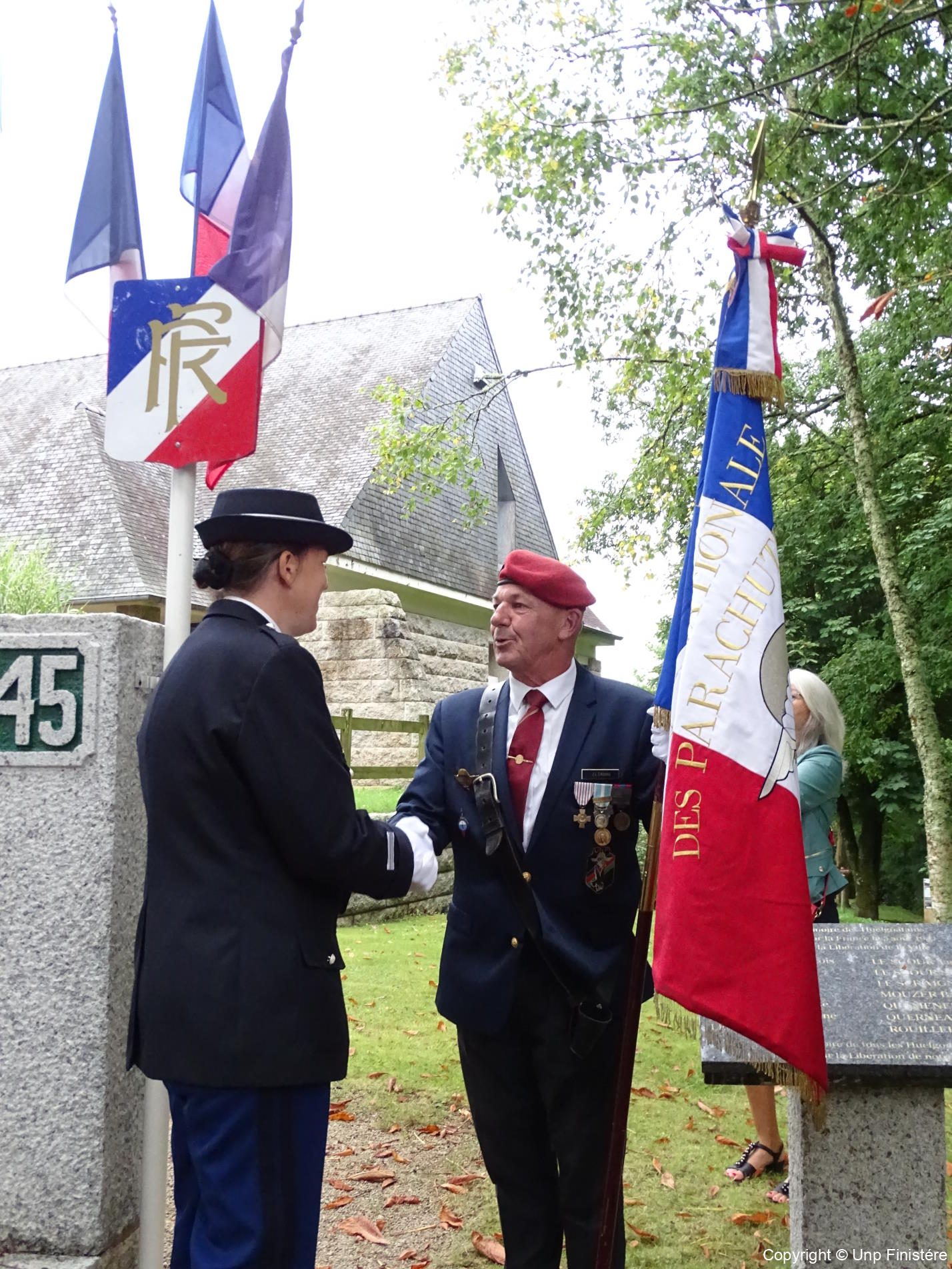 C’est dans cette forêt que bon nombre de résistants ont décidé de tenir tête à l’occupant en harcelant en permanence l’envahisseur. Parmi ces combattants un de nos Frères d’Armes, le jeune Marcel Clédic. C’est dans ce terrain boisé et chaotique que notre jeune camarade a fait ses premières armes et a fait preuve d’excellentes qualités de chef. Nous connaissons tous l’extraordinaire parcours de ce jeune combattant téméraire, il deviendra quelques années plus tard un chef parachutiste reconnu et admiré par ses pairs. Cette reconnaissance que nous souhaitions lui rendre ne pouvait que se faire sur ses propres terres ici à Huelgoat.
