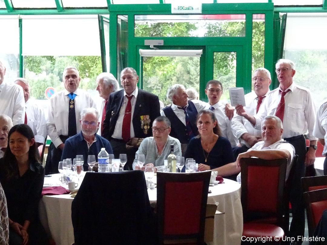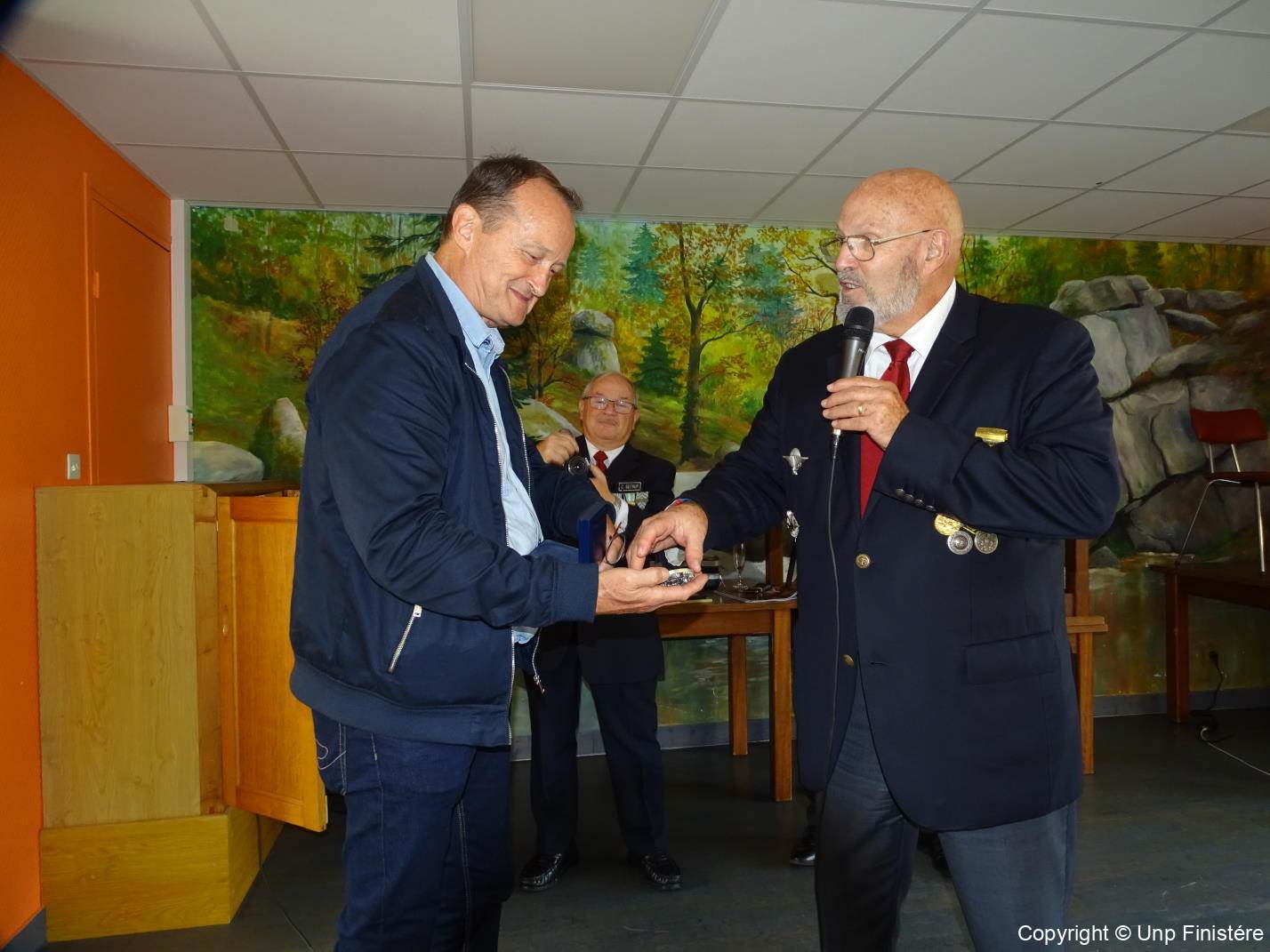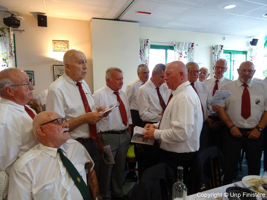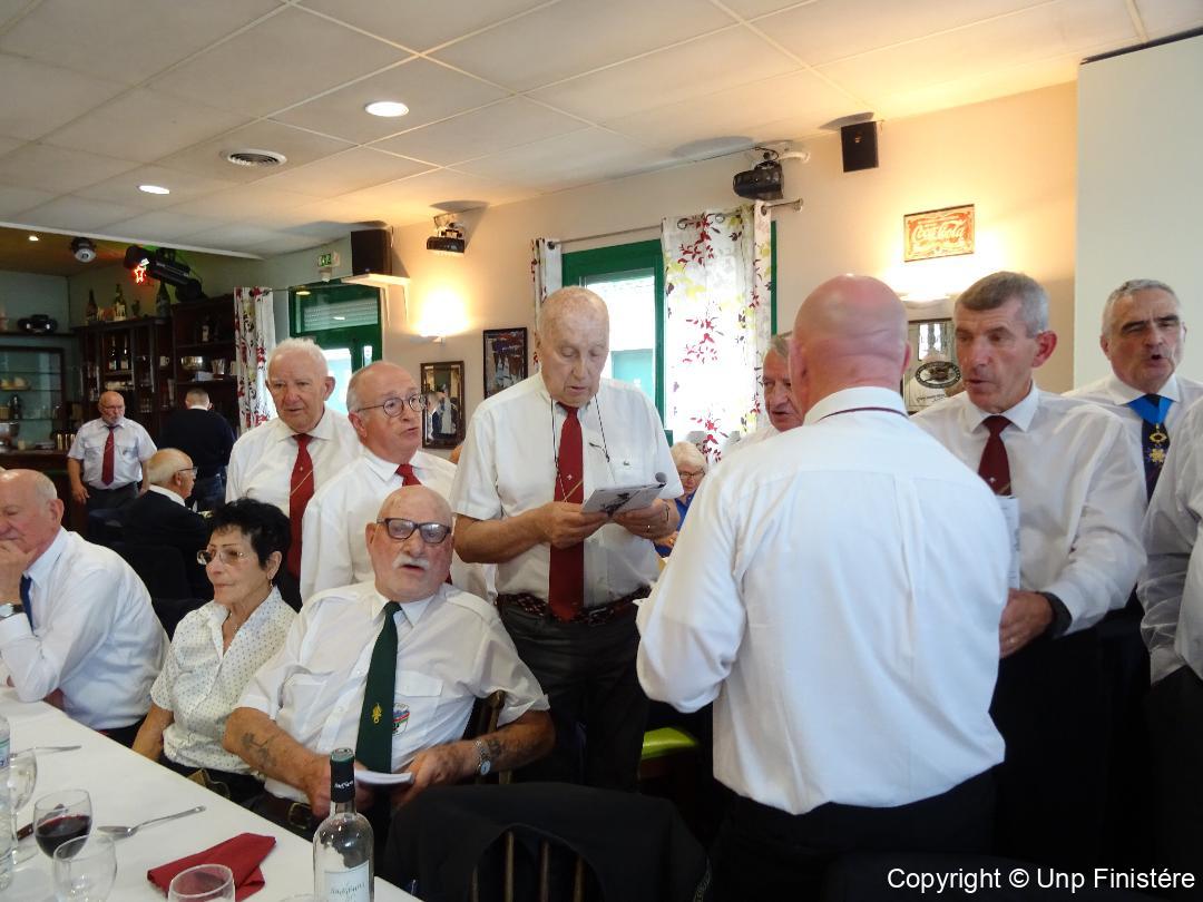 Avant que ne débute le repas, le mérite UNP est remis à Jean-Noël, pour les nombreux services rendus à la section, en rehaussant notamment nos prestations au son de son biniou. Enfin notre ami Jean-Luc reçoit le diplôme et l’insigne de porte-drapeau départemental.