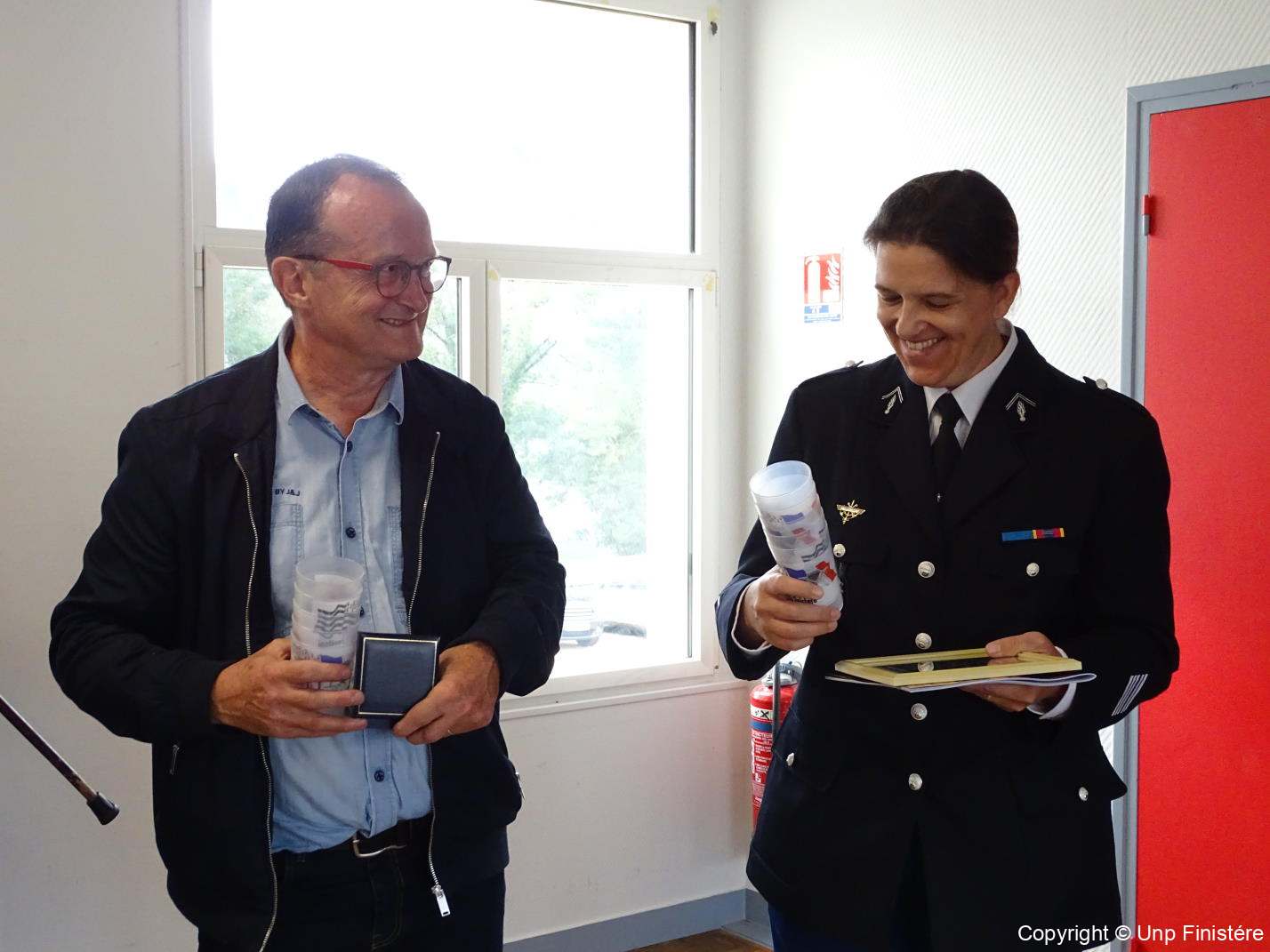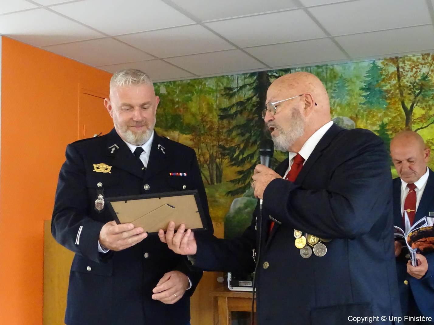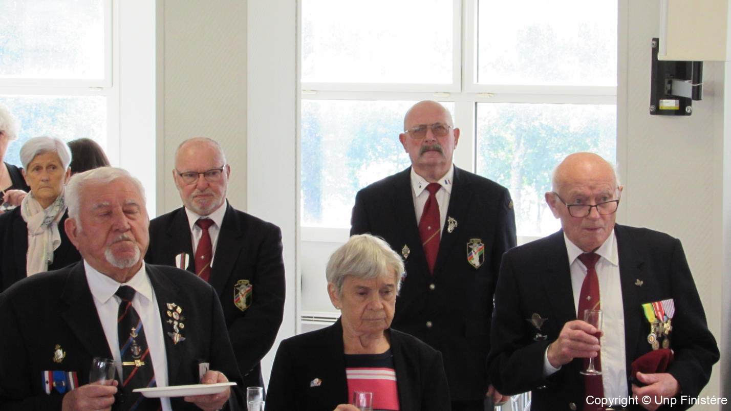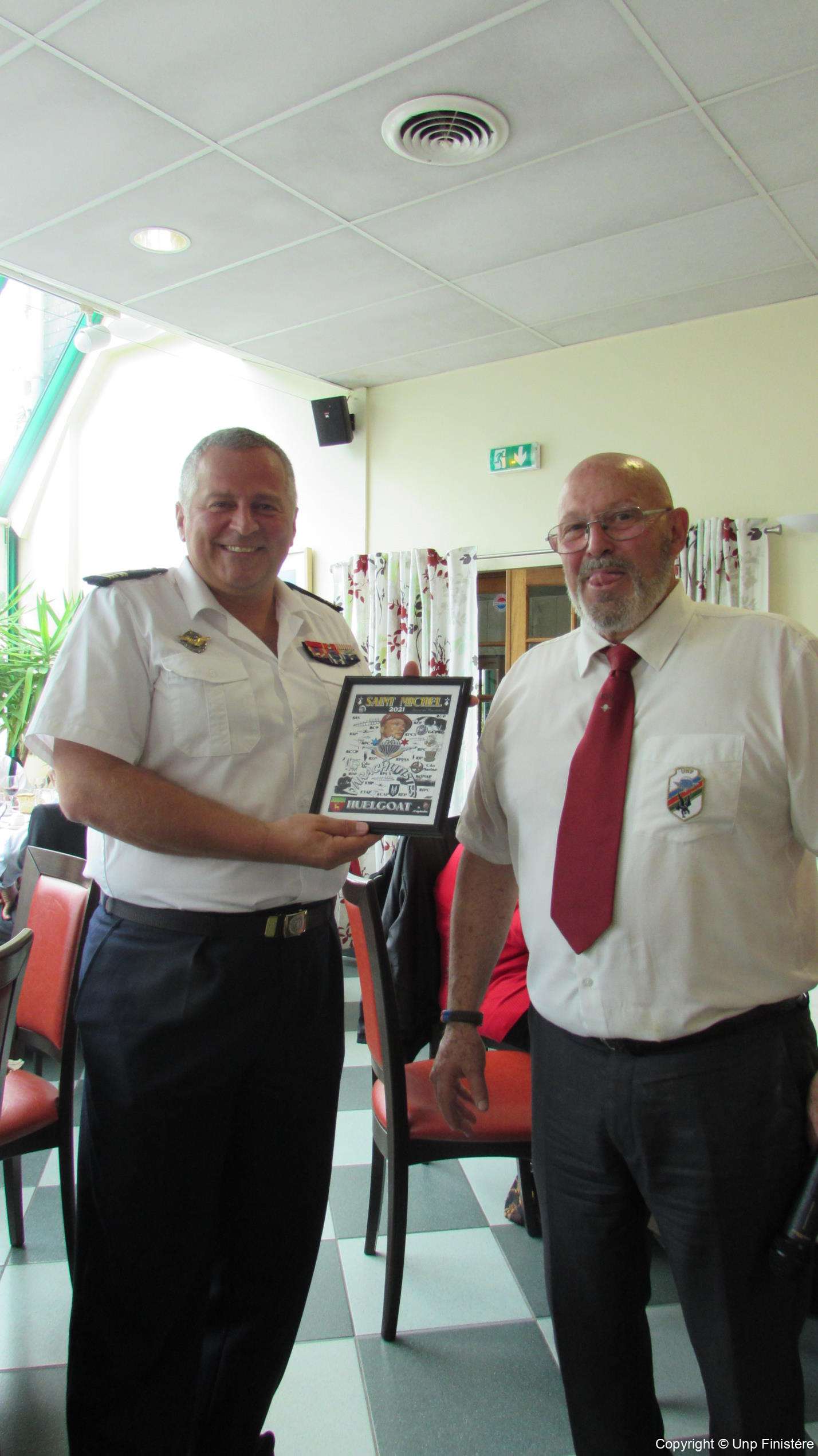 Avant que ne débute le repas, le mérite UNP est remis à Jean-Noël, pour les nombreux services rendus à la section, en rehaussant notamment nos prestations au son de son biniou. Enfin notre ami Jean-Luc reçoit le diplôme et l’insigne de porte-drapeau départemental.