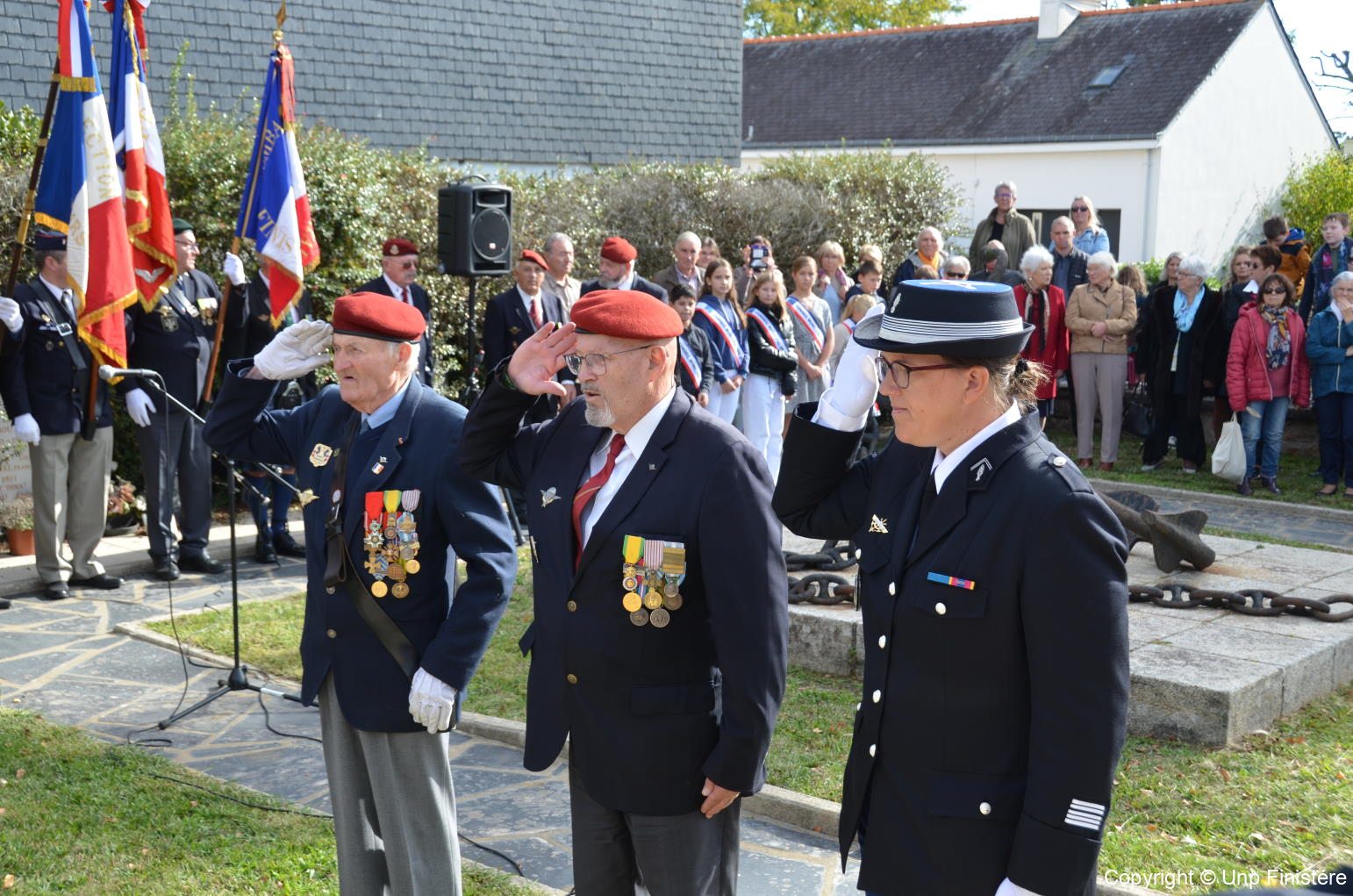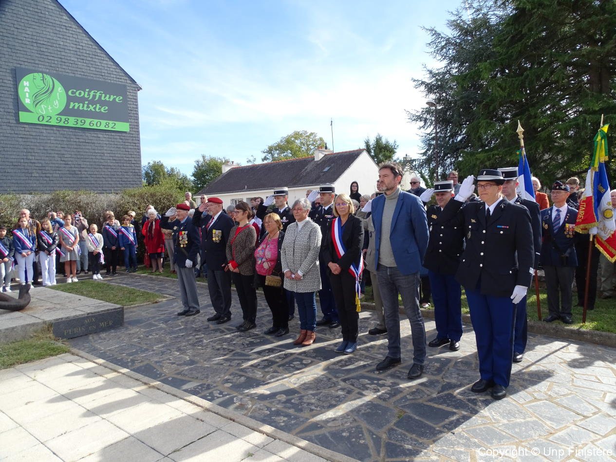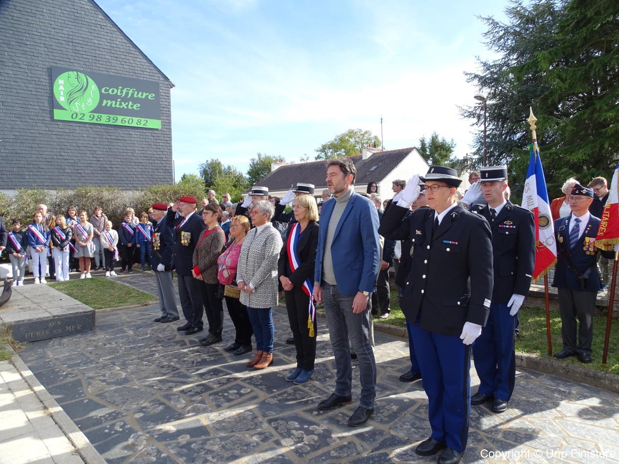 Cette cérémonie est présidée par madame Marie-Louise GRISEL, maire de Moëlan-sur-Mer et par le président de l’UNP du Finistère , monsieur Alain LE CLECH, en présence de monsieur Erwan BALANANT, député de la 8ème circonscription, de madame Christine CIPOLLINA, maire-adjointe et responsable défense de la commune, de la colonelle Charlotte TOURNANT, commandant le Groupement de Gendarmerie du Finistère, du lieutenant-colonel Rémy GESTERMANN, commandant la compagnie de gendarmerie de Quimperlé, du capitaine Thierry MALLEGOL,représentant le colonel Bernard POUPON, délégué militaire départemental. (Le Directeur de l’ONAVVG s’étant excusé de même que le Directeur de Sécurité publique du Finistère). A noter la présence de quelques membres du Conseil Municipal des Jeunes, porteurs de leurs écharpes.