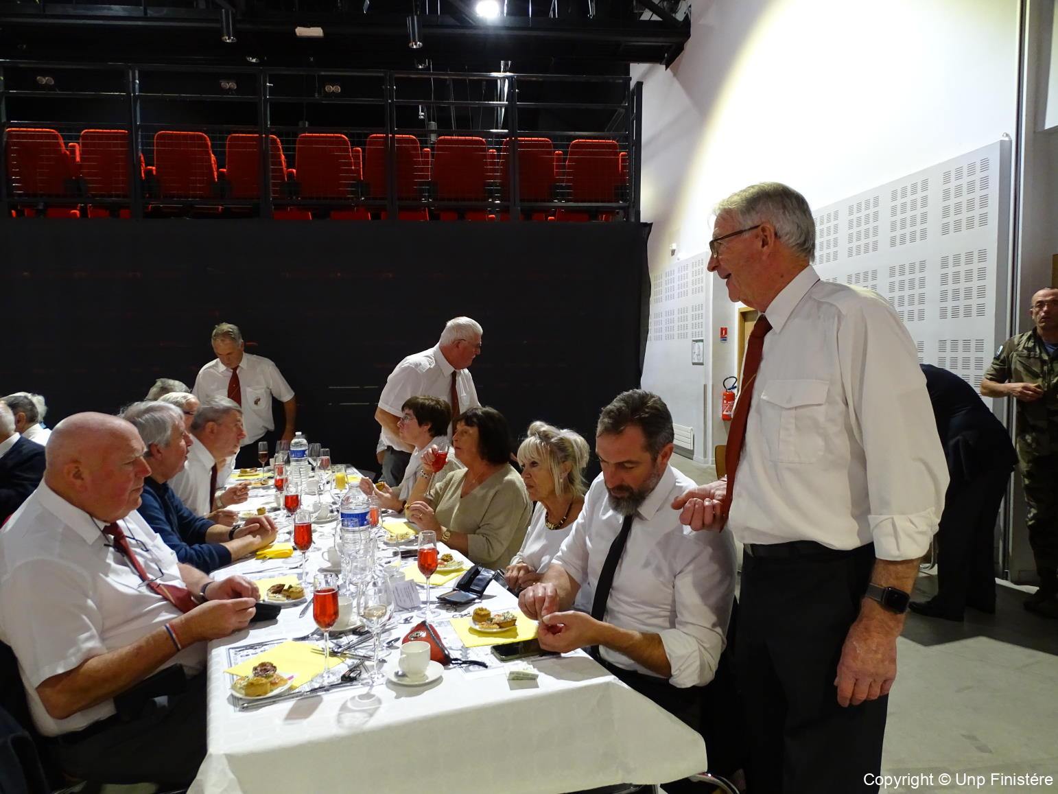 Parfaite organisation, le dispositif pour le vin d’honneur est parfaitement en place. Grâce aux consignes respectées, le président de la section UNP29, peut effectuer les remises de cadeau dans un silence absolu , permettant ainsi de s’adresser aux autorités et de les remercier. A l’issue les boissons fraîches et variées font le bonheur de nombreuses gorges asséchées.