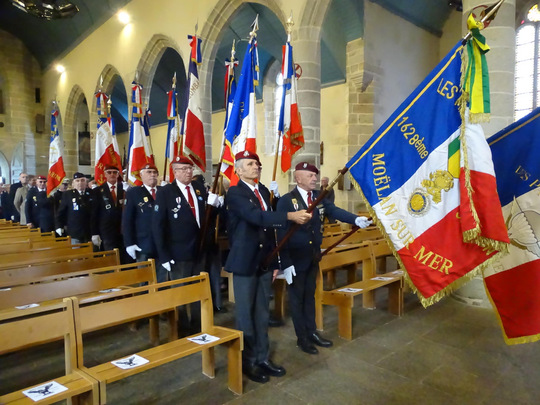 Point d’orgue de cette célébration : l’entrée de la bannière Saint-Michel et la Prière du Para chantée à capella par l’ensemble. Solennité et émotion assurées, beaucoup de nos invités découvraient avec étonnement cette magnifique Prière, et reconnaissaient avoir été très touchés par ce chant. Quelques paires d’yeux se sont mêmes humidifiées. Vifs remerciements au Père Jean-Paul Larvol, ainsi qu’à l’équipe paroissiale Henri Gaonac’h- Jacques Campion et à l’organiste.