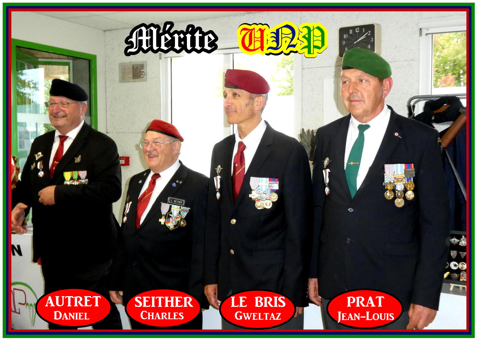 Dernier petit cérémonial, la remise du Mérite UNP, échelon bronze à quatre de nos adhérents, Daniel AUTRET-Charles SEITHER-Jean.Louis LE PRAT- Gweltaz LE BRIS.