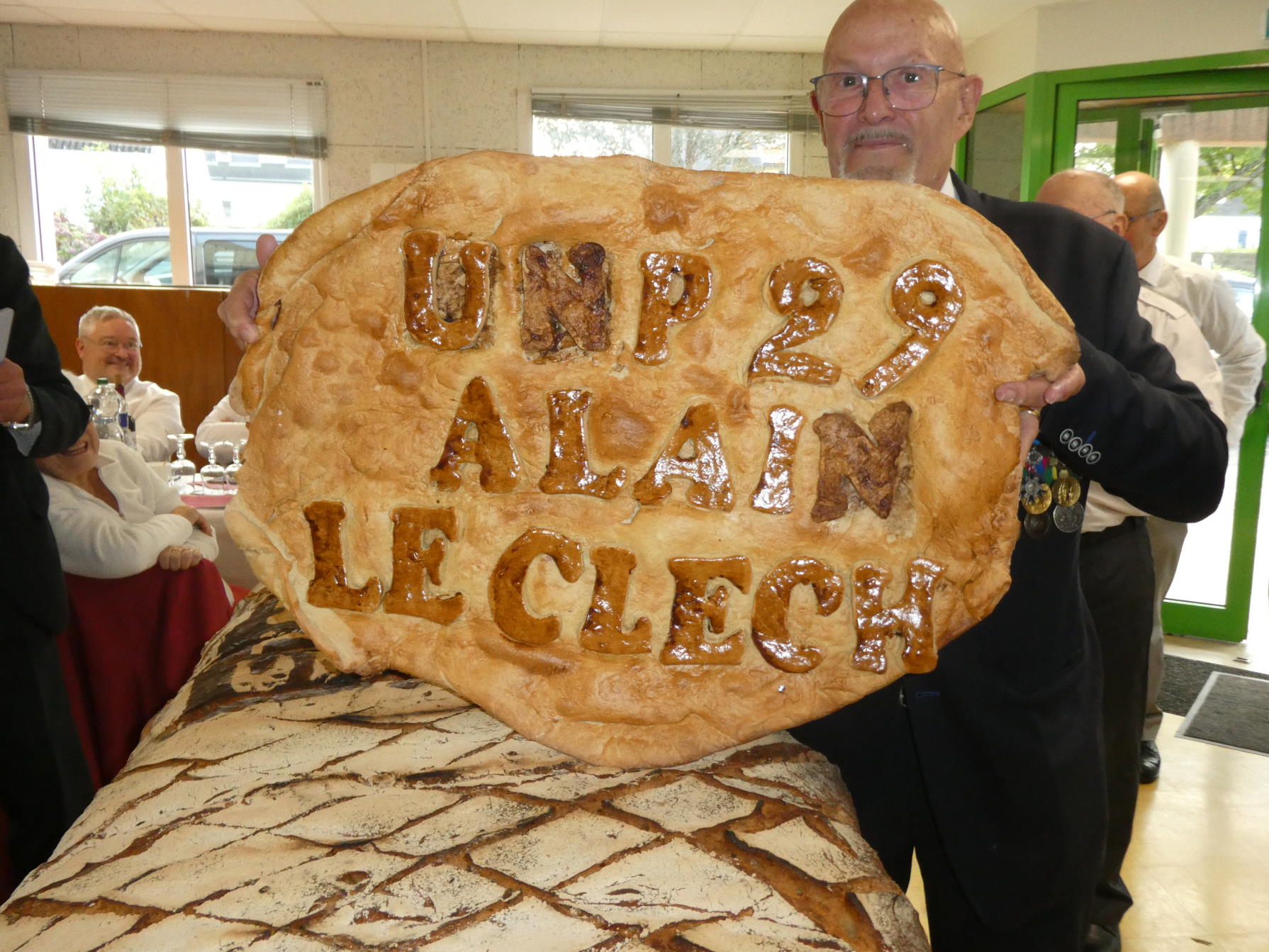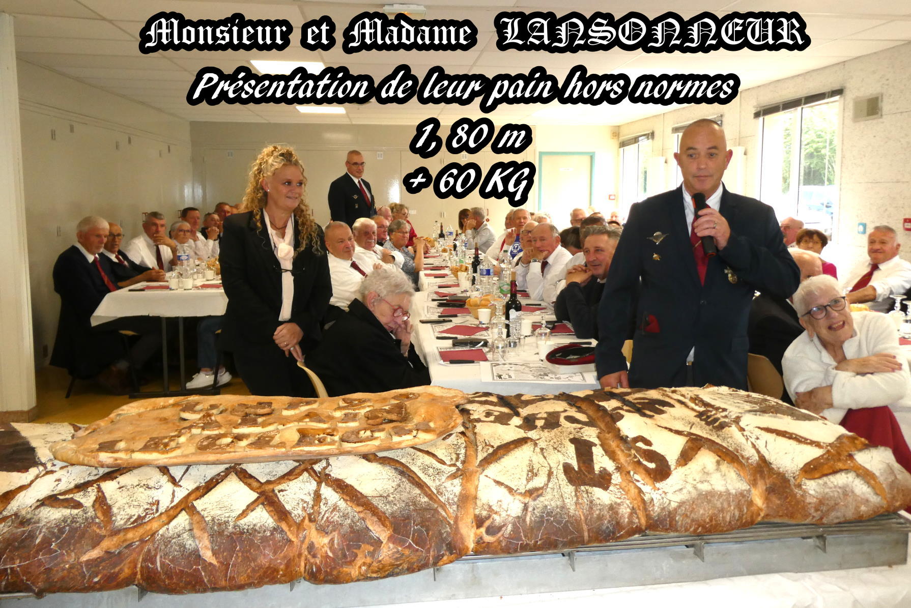 Depuis maintenant quelques années, notre para et adhérent Patrice LANSONNEUR, boulanger de métier offre à la section un pain hors norme et d’excellente qualité. Cette année il a fait fort, son pain pesant plus de 50kg et mesurant plus d’un mètre quatre vingt, petite particularité cette année il a offert au président une réalisation très personnelle (voir photos)