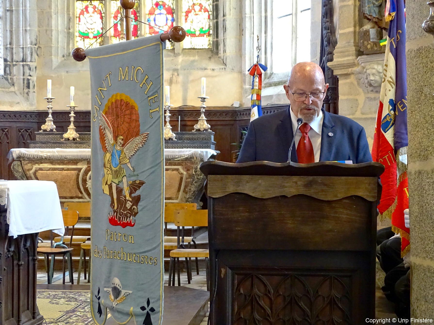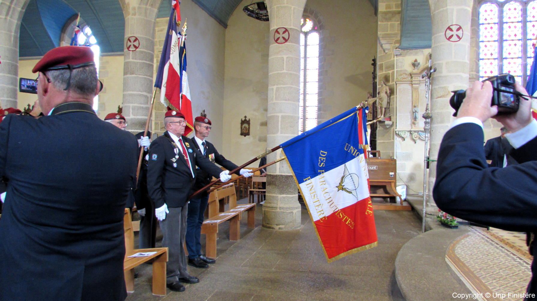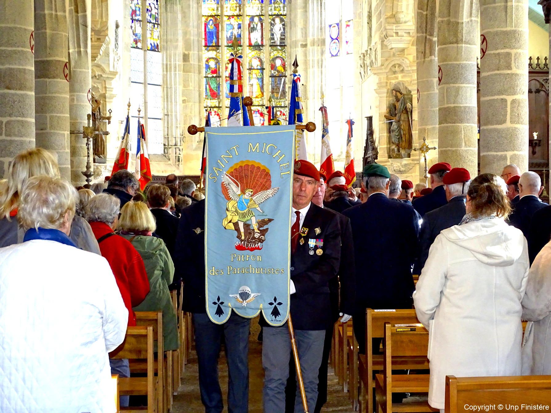 Point d’orgue de cette célébration : l’entrée de la bannière Saint-Michel et la Prière du Para chantée à capella par l’ensemble. Solennité et émotion assurées, beaucoup de nos invités découvraient avec étonnement cette magnifique Prière, et reconnaissaient avoir été très touchés par ce chant. Quelques paires d’yeux se sont mêmes humidifiées. Vifs remerciements au Père Jean-Paul Larvol, ainsi qu’à l’équipe paroissiale Henri Gaonac’h- Jacques Campion et à l’organiste.