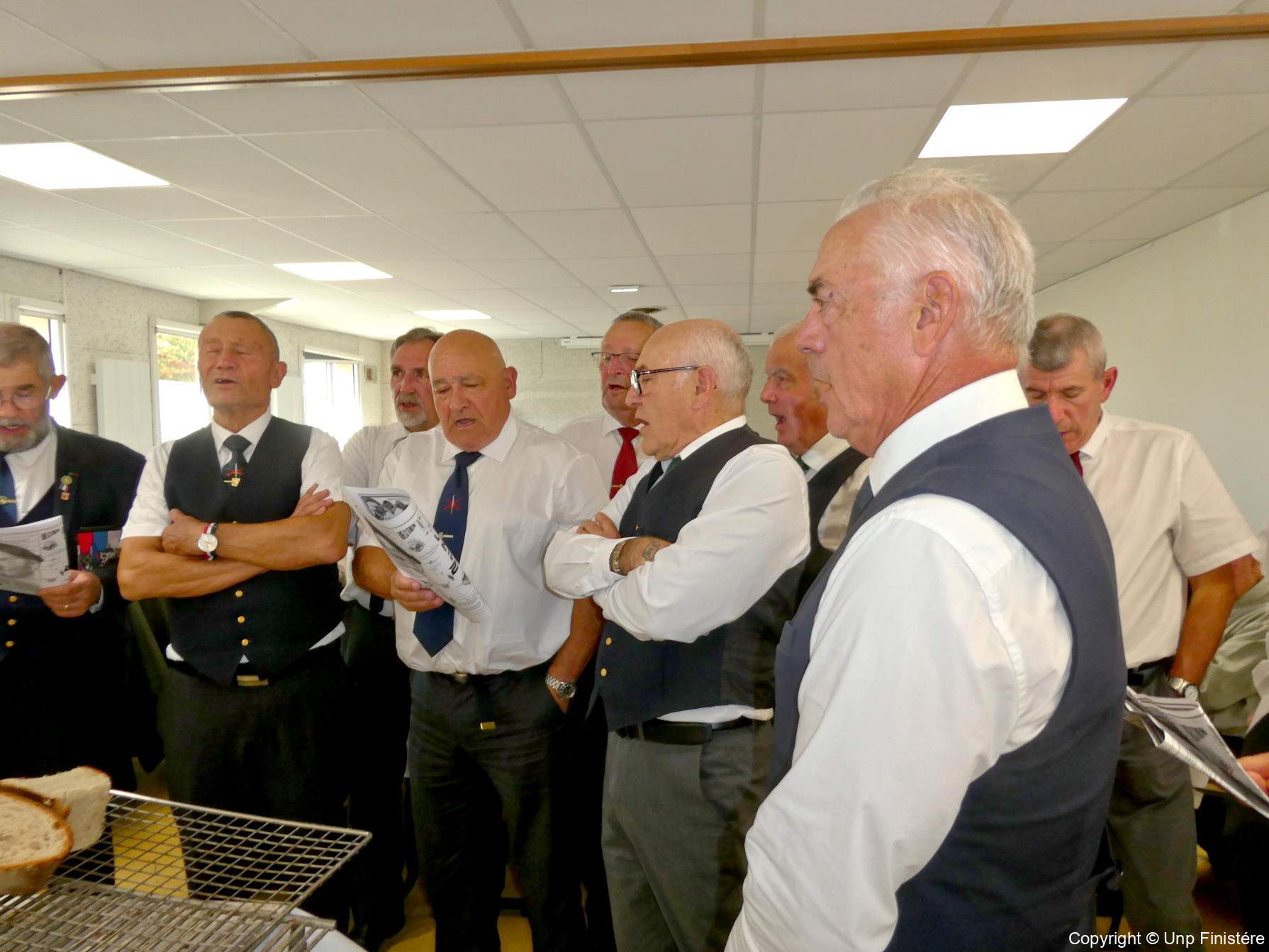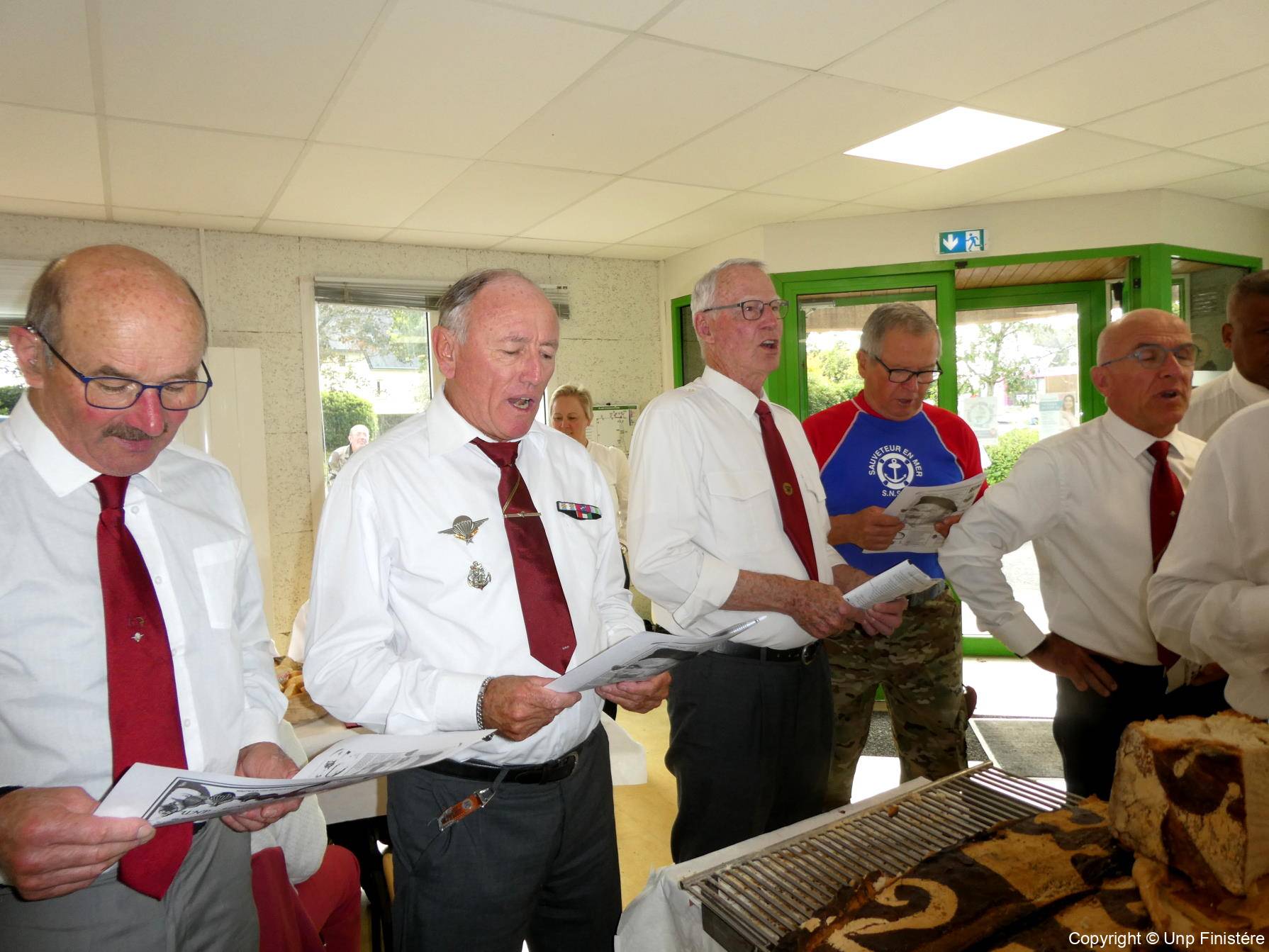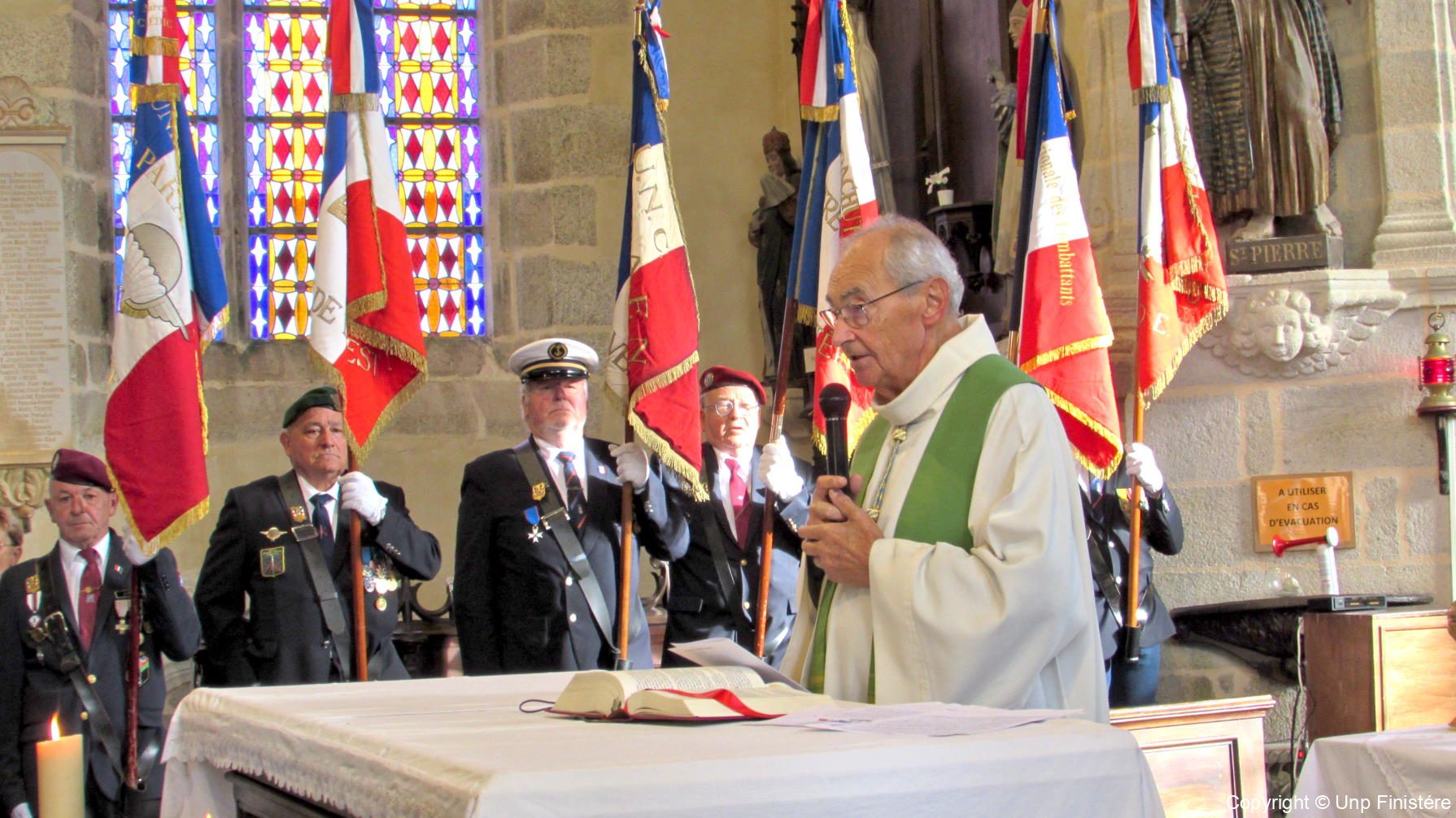 Point d’orgue de cette célébration : l’entrée de la bannière Saint-Michel et la Prière du Para chantée à capella par l’ensemble. Solennité et émotion assurées, beaucoup de nos invités découvraient avec étonnement cette magnifique Prière, et reconnaissaient avoir été très touchés par ce chant. Quelques paires d’yeux se sont mêmes humidifiées. Vifs remerciements au Père Jean-Paul Larvol, ainsi qu’à l’équipe paroissiale Henri Gaonac’h- Jacques Campion et à l’organiste.