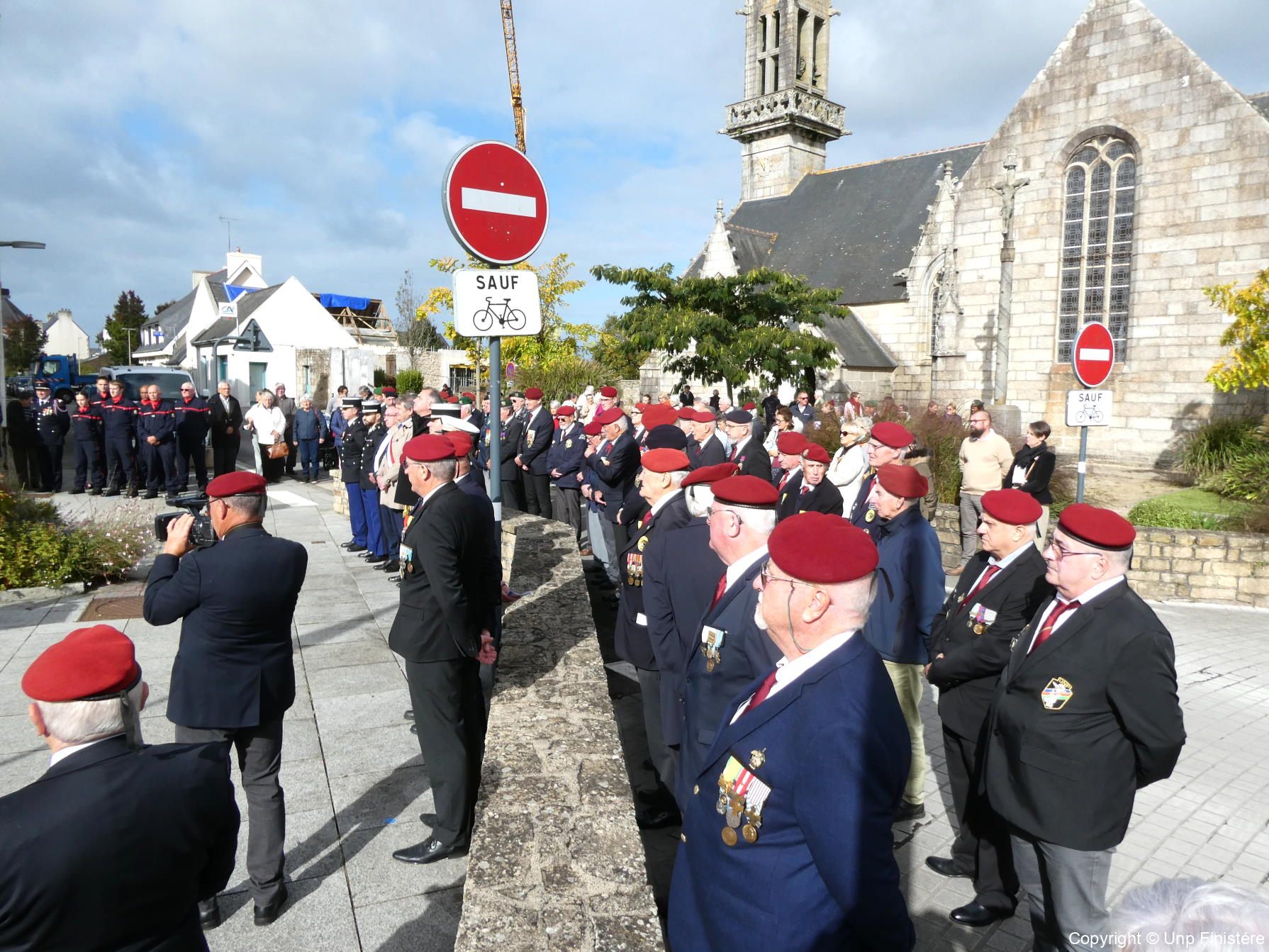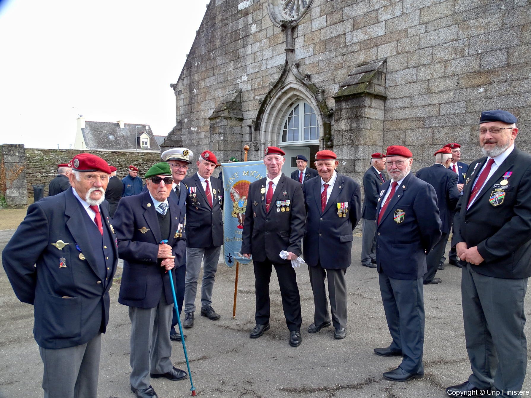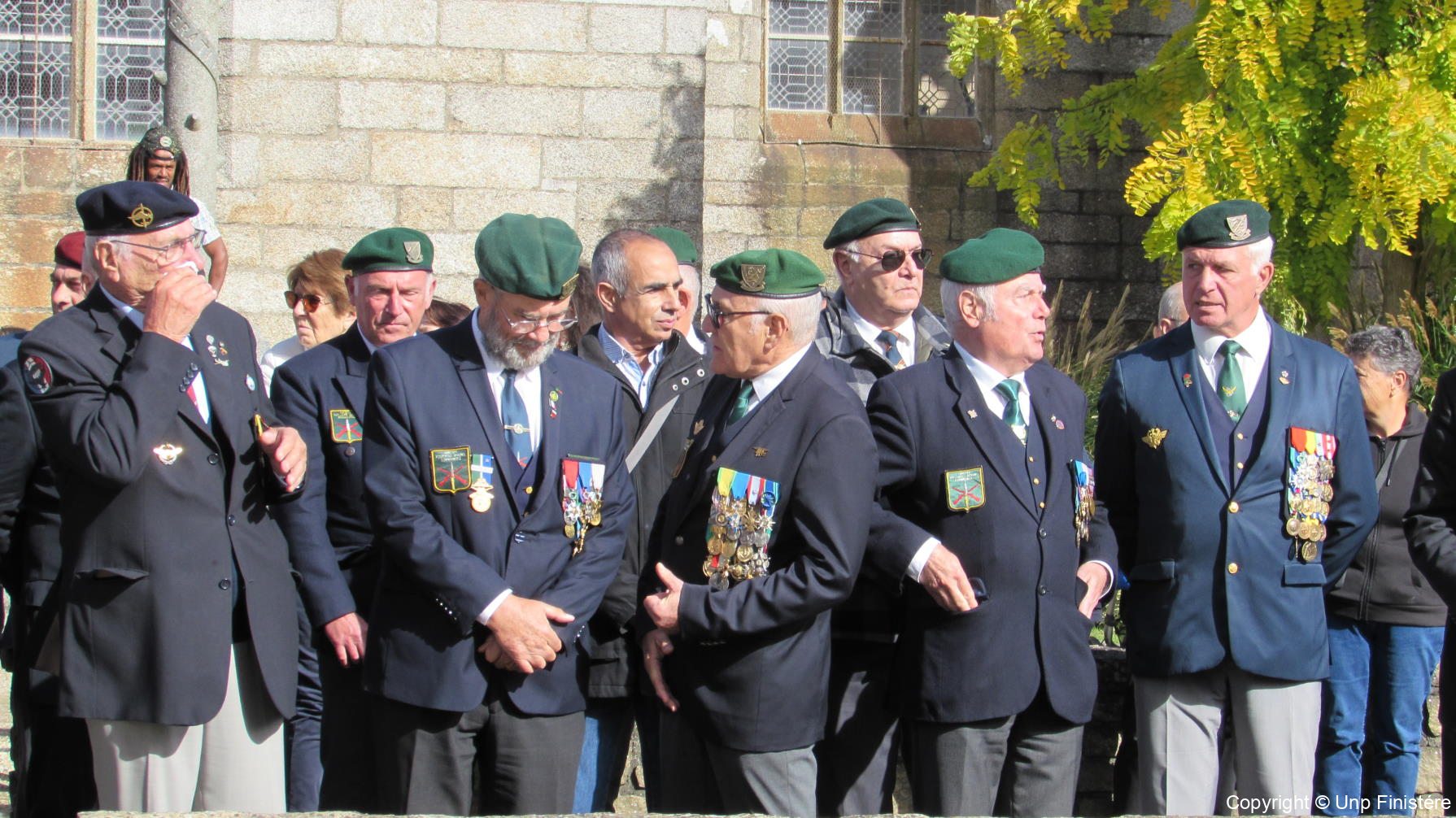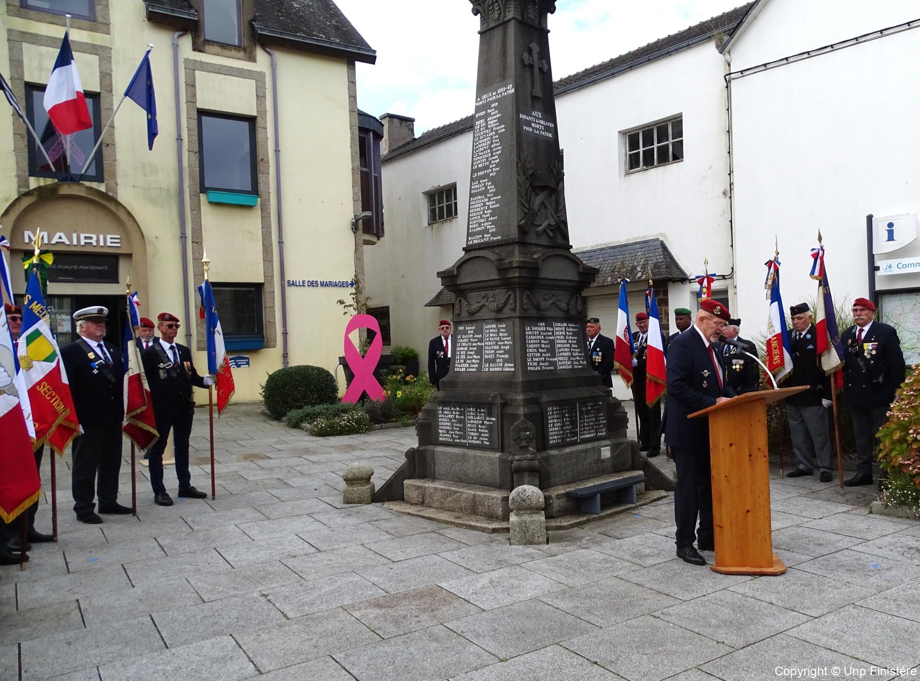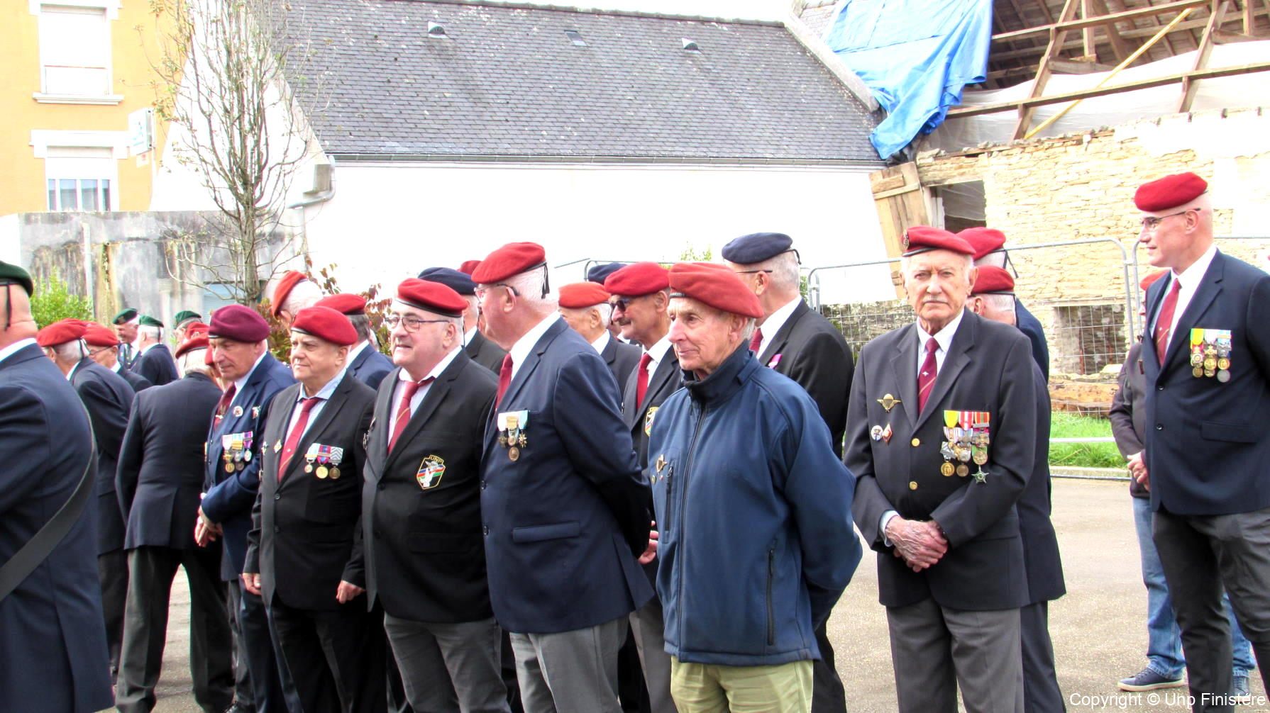 Une première gerbe est déposée par le président de l’UNP29, accompagné du général SALAÜN, de notre grand ancien Roger OUADEC ayant participé à l’opération Castor à Dien Bien Phu, et de Jean-Luc DOREAU président des Anciens Combattants de la commune.