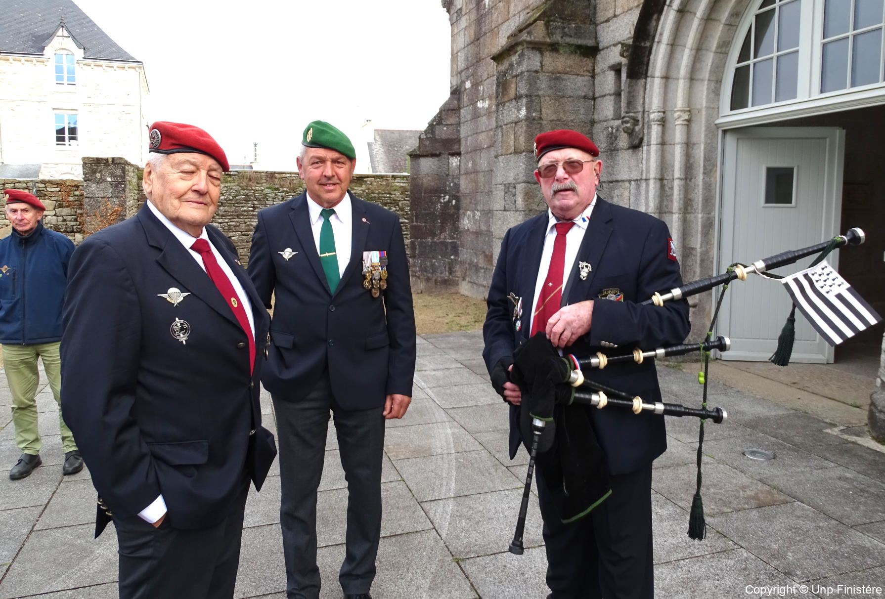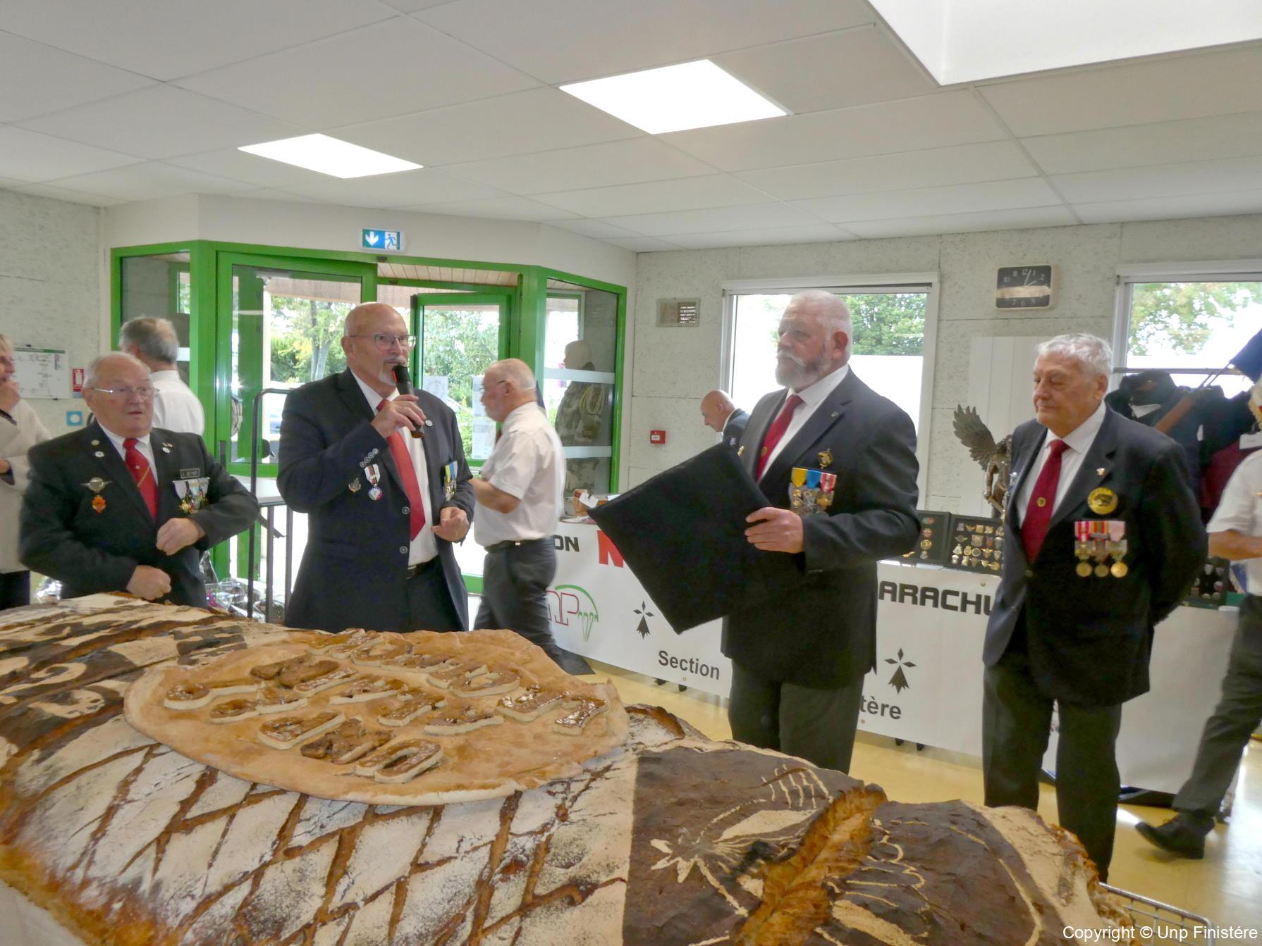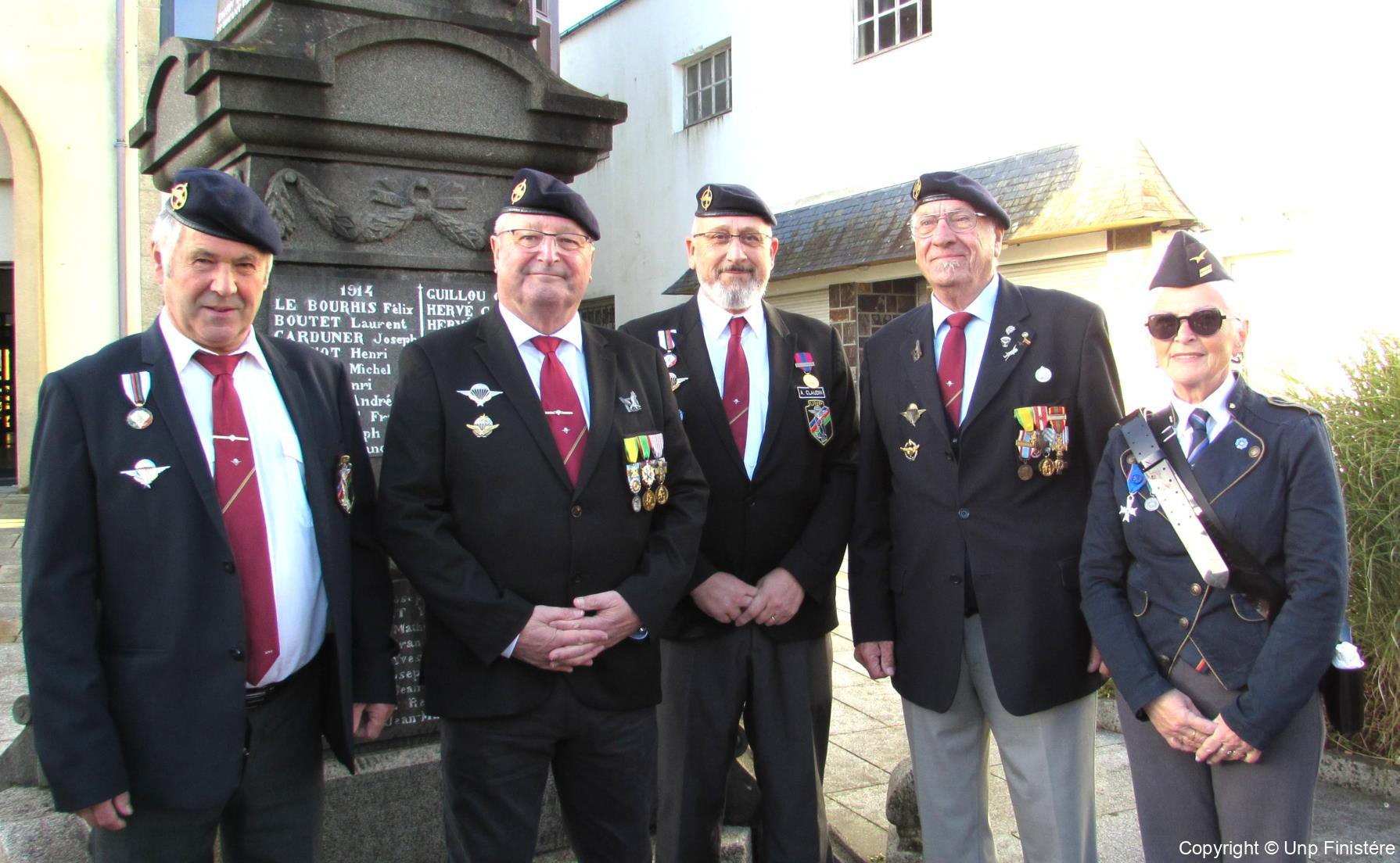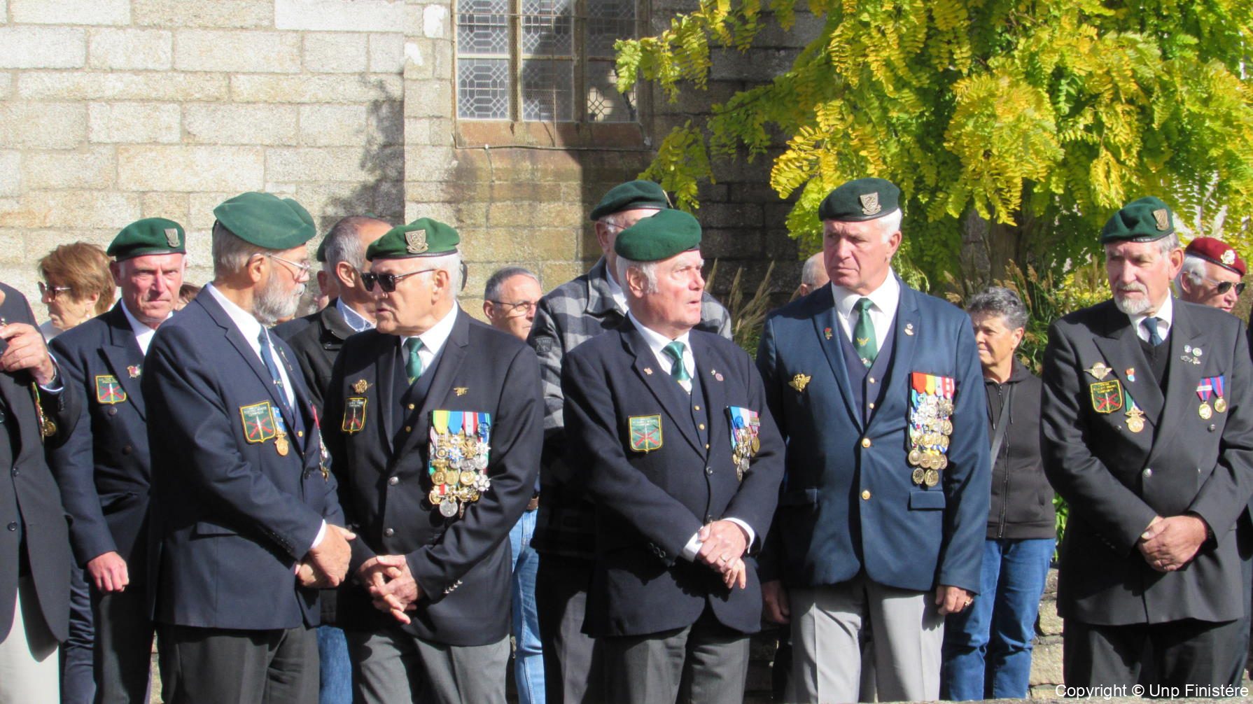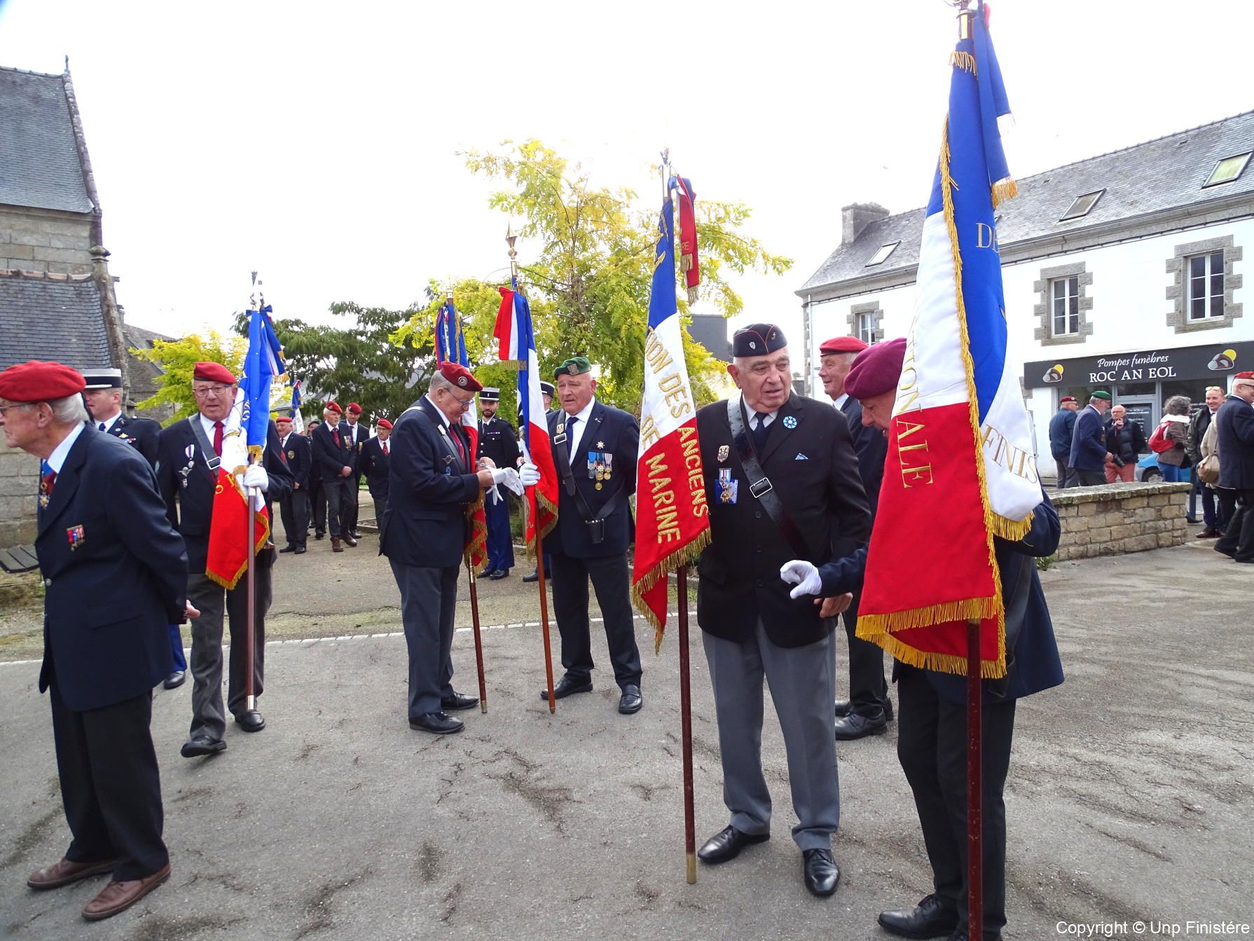 Une première gerbe est déposée par le président de l’UNP29, accompagné du général SALAÜN, de notre grand ancien Roger OUADEC ayant participé à l’opération Castor à Dien Bien Phu, et de Jean-Luc DOREAU président des Anciens Combattants de la commune.