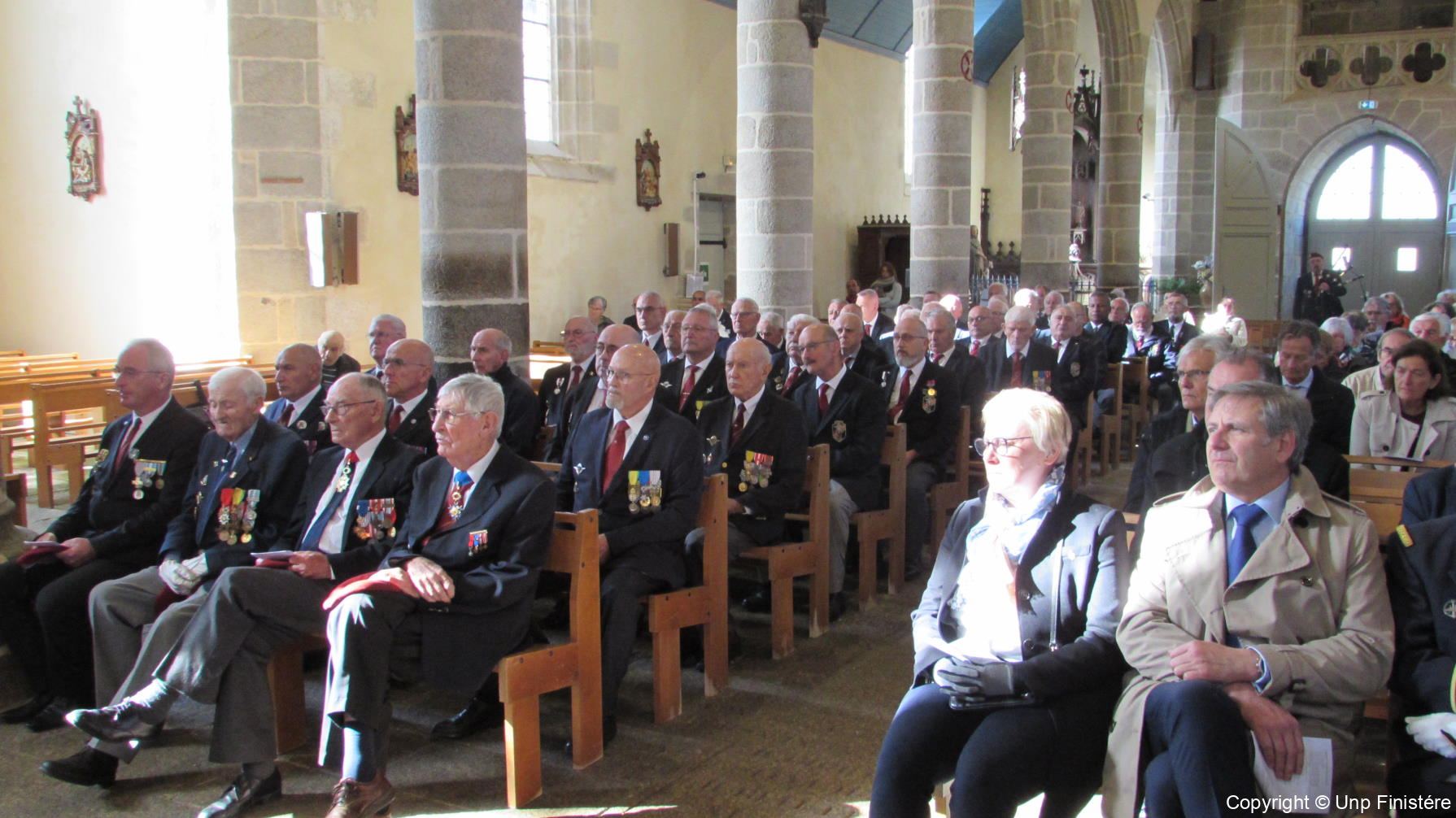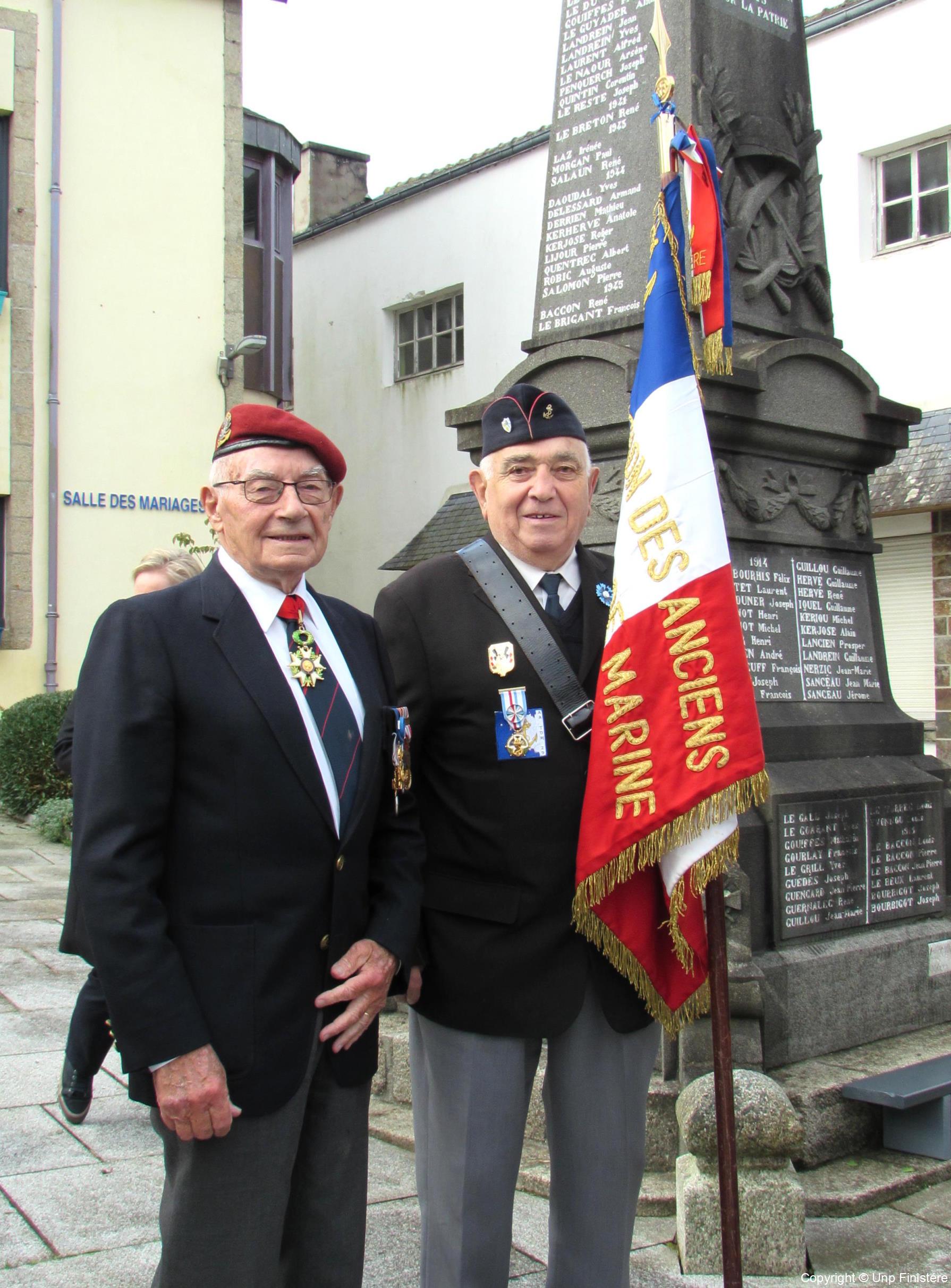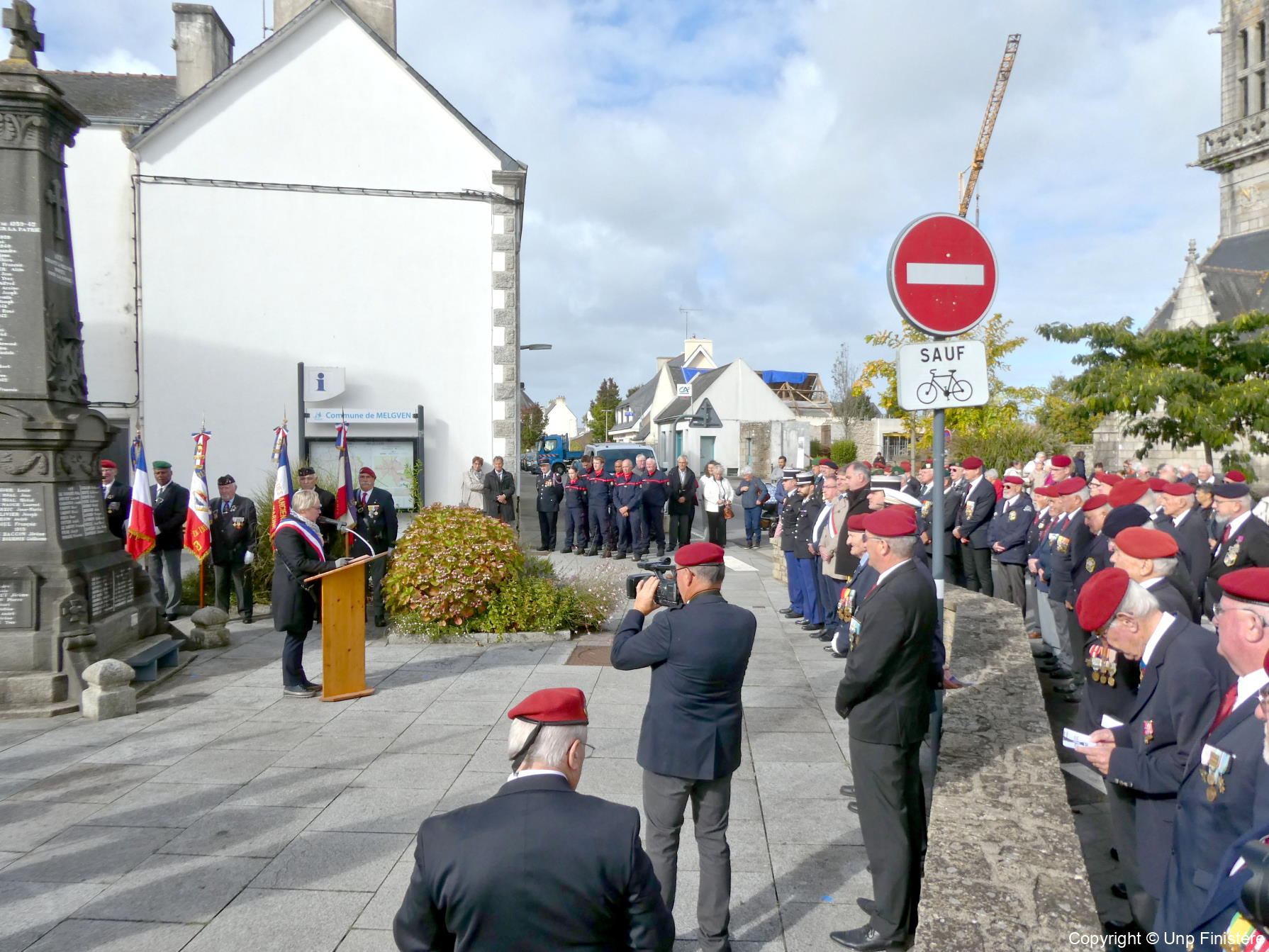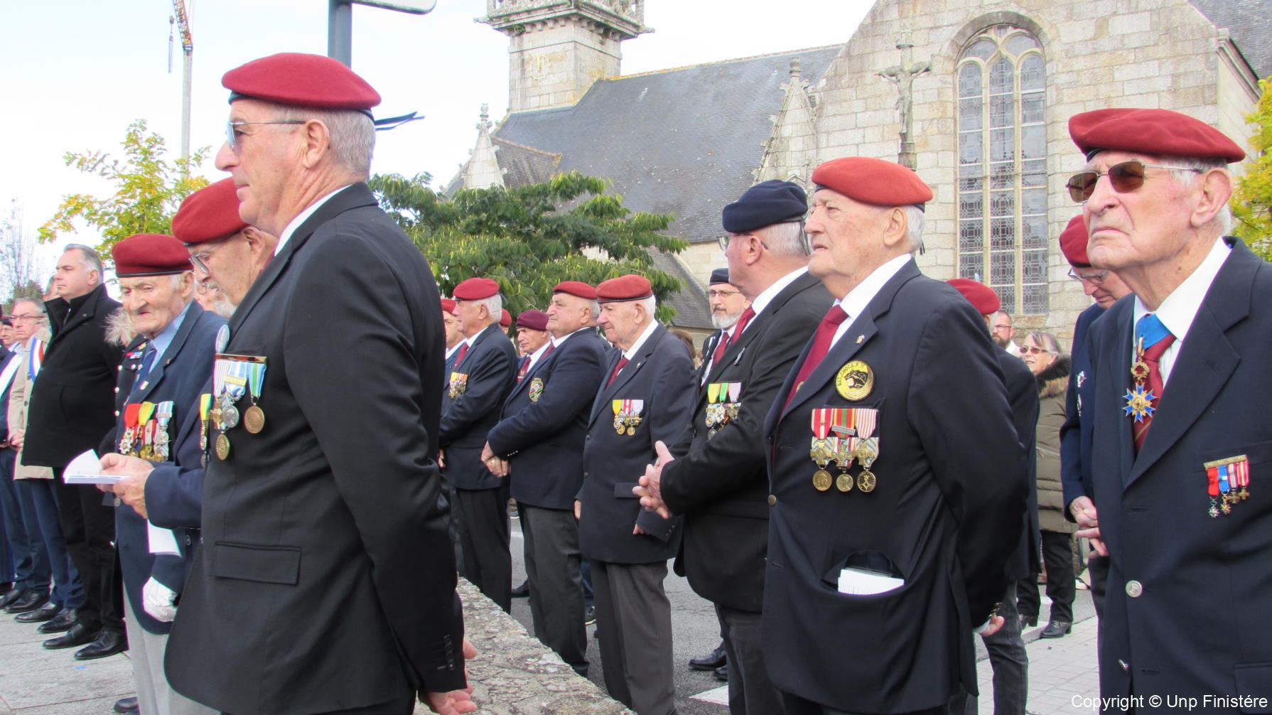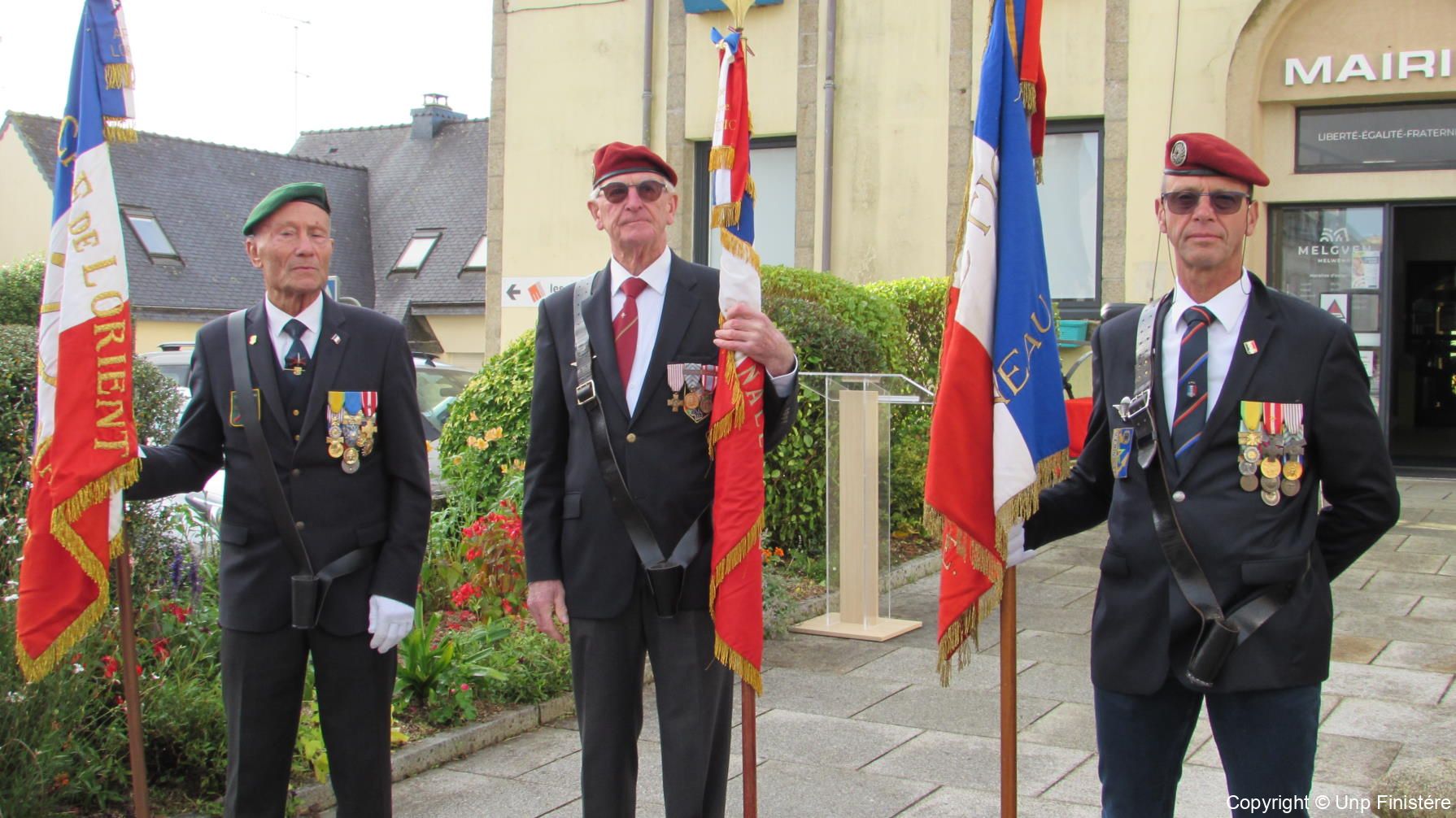 Une première gerbe est déposée par le président de l’UNP29, accompagné du général SALAÜN, de notre grand ancien Roger OUADEC ayant participé à l’opération Castor à Dien Bien Phu, et de Jean-Luc DOREAU président des Anciens Combattants de la commune.