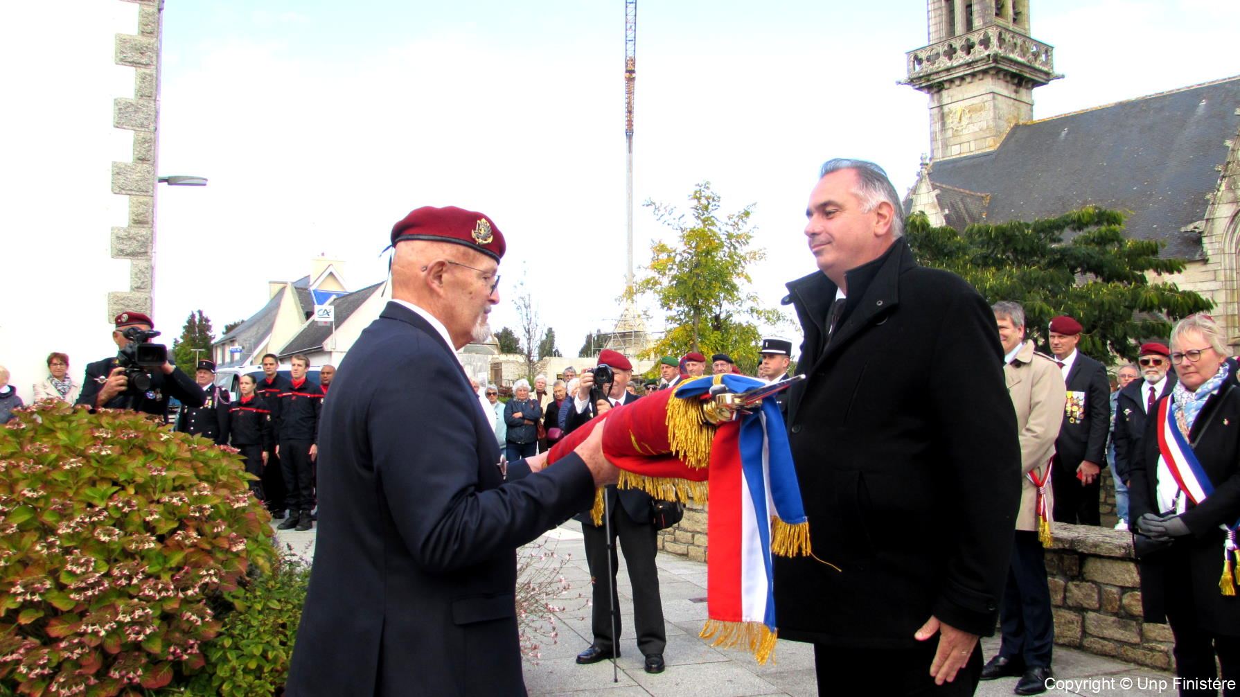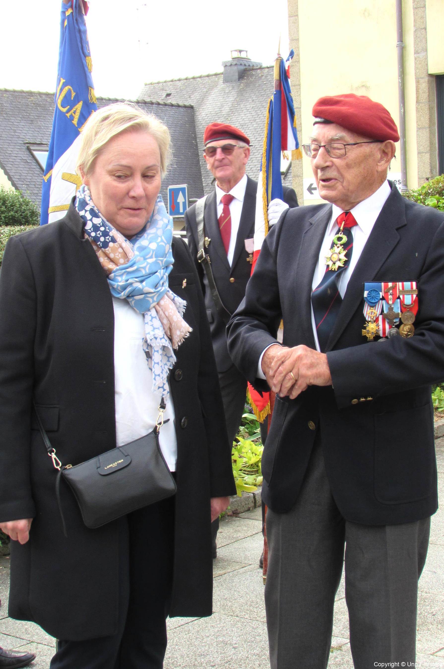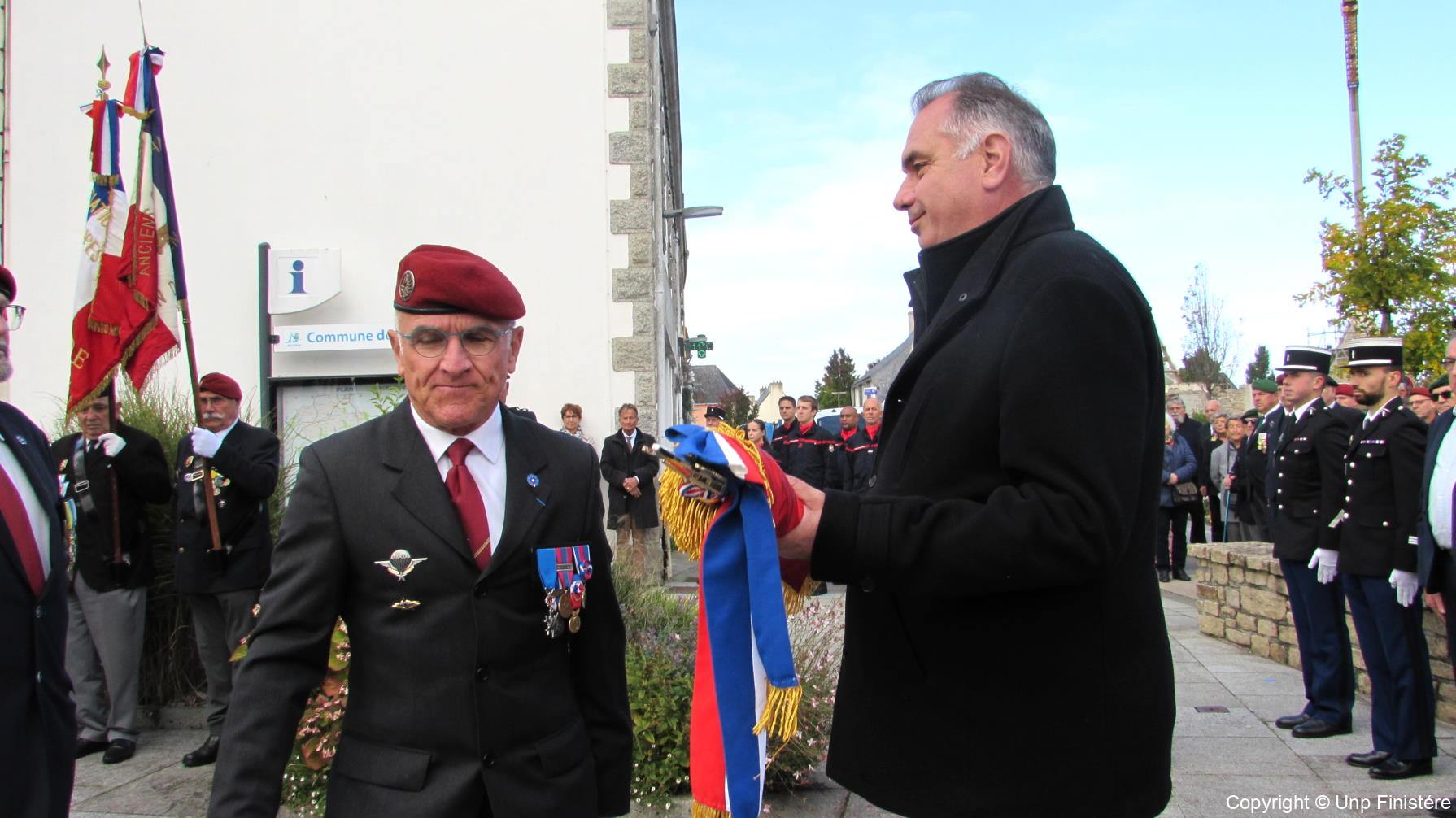 Cette cérémonie est présidée conjointement par madame Catherine ESVANT, maire de la commune et par Alain LE CLECH, président départemental de l’Union Nationale des Parachutistes en présence de monsieur le sénateur Philippe PAUL, du Directeur de l’ONaCVG du Finistère, monsieur Sylvain LE BERRE, du colonel Pierre-Yves CANIOTTI, commandant le Groupement de Gendarmerie du Finistère, de monsieur Abel DAMBREVILLE 1er adjoint au maire, du capitaine DESGRANGES , commandant la Brigade de Gendarmerie de Rosporden- Bannalec-Scaër et de monsieur Marc BIGOT, maire de Concarneau. La sonorisation de cette cérémonie est assurée par nos amis René et Gérard.