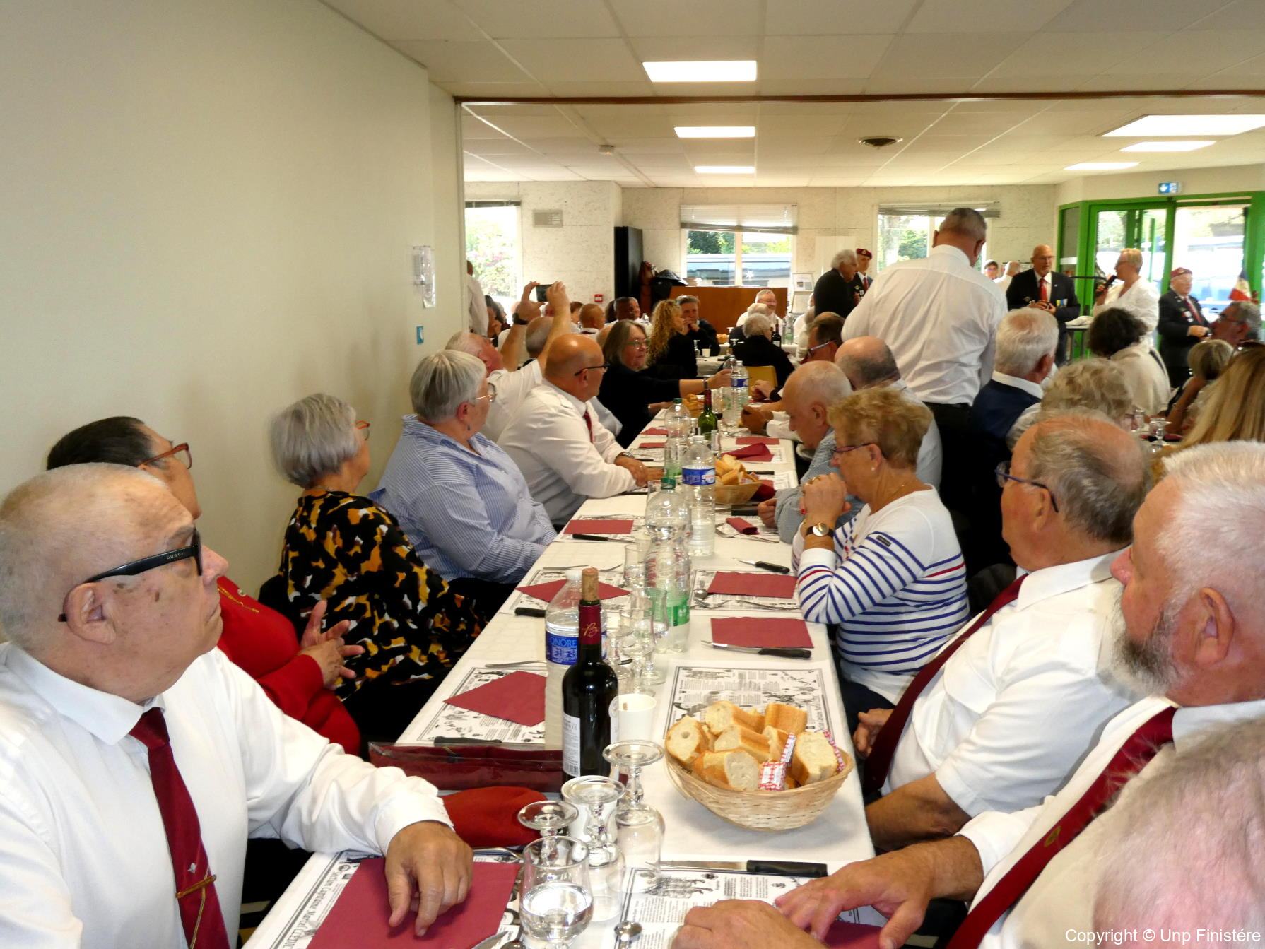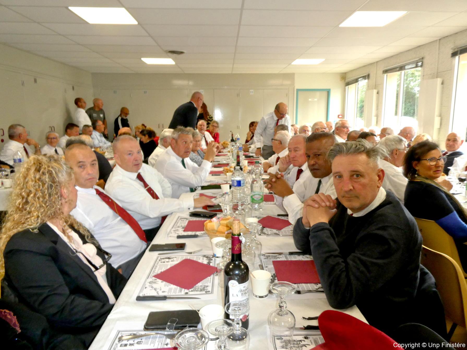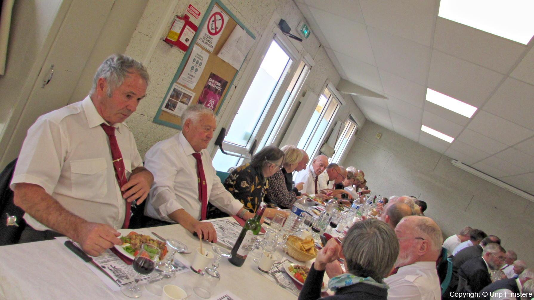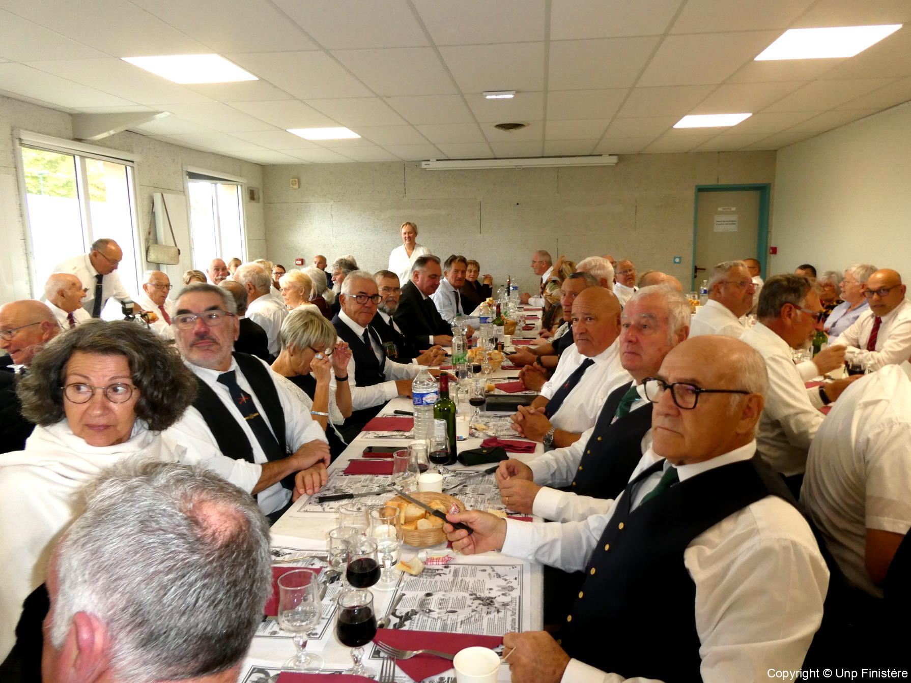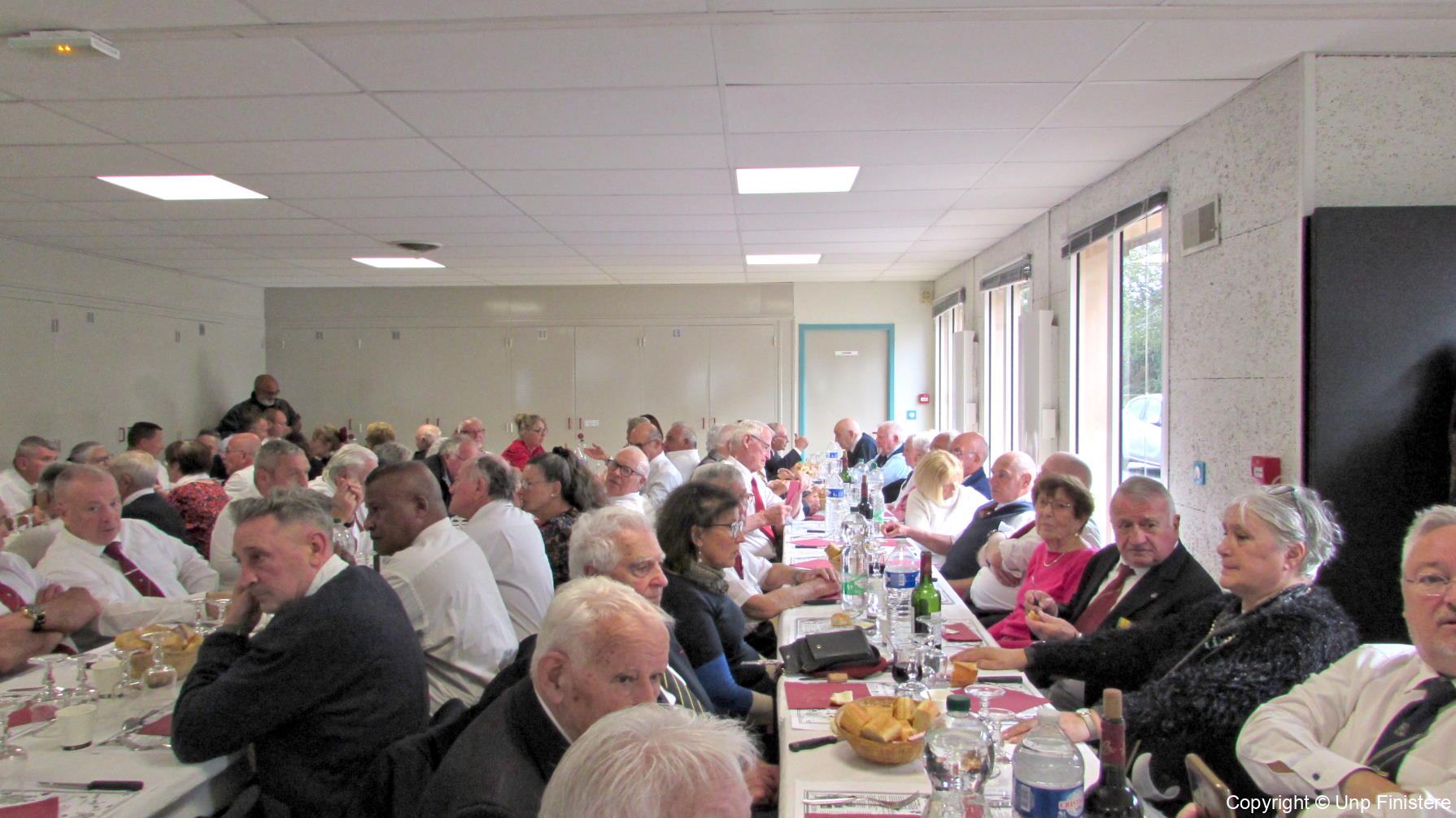 13h15 le stade se vide, les personnes inscrites au repas de cohésion sont invitées à rejoindre la salle Louise Ebrel. Salle comble, cent quarante personnes s’installent dans cette salle mise à notre disposition.