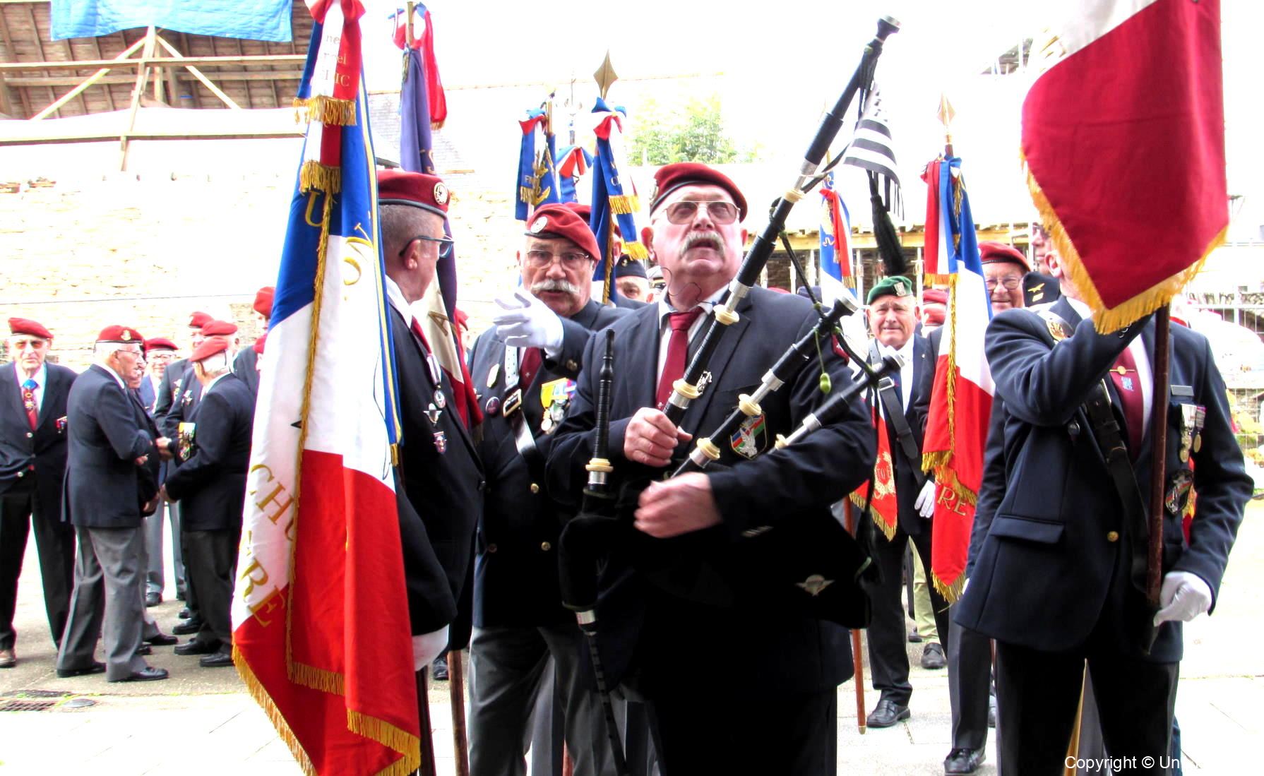 Le cérémonial de la remise du nouveau drapeau est parfaitement respecté. Drapeau roulé le Directeur de l’ONaCVG transmet l’étendard à notre président. Effectuant un demi-tour il se retrouve face à Yvon BODILIS, porte-drapeau, et lui adresse ce message » Nous vous confions ce drapeau, il est le symbole de la Patrie, vous le porterez et conserverez dans l’honneur et la dignité » A l’issue chacun rejoint son emplacement.