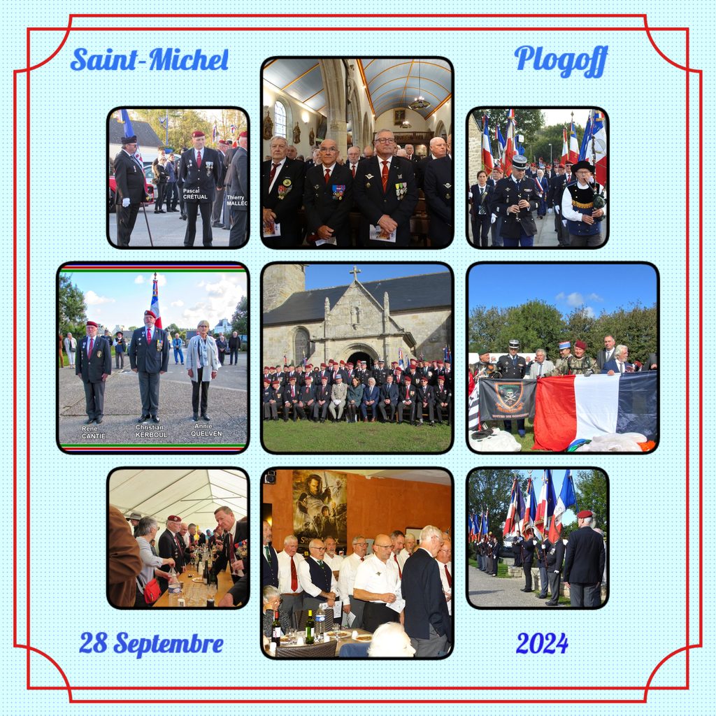 Le samedi 28 septembre 2024, dès le début de la matinée de nombreux véhicules venant de tout le département prennent place sur les principaux parkings de la petite cité. Bérets rouge, vert et bleu commencent à sillonner les petites rues de la ville. En attendant de rejoindre l’église de Saint-Collodan, chacun se fait un plaisir d’aller saluer un camarade .